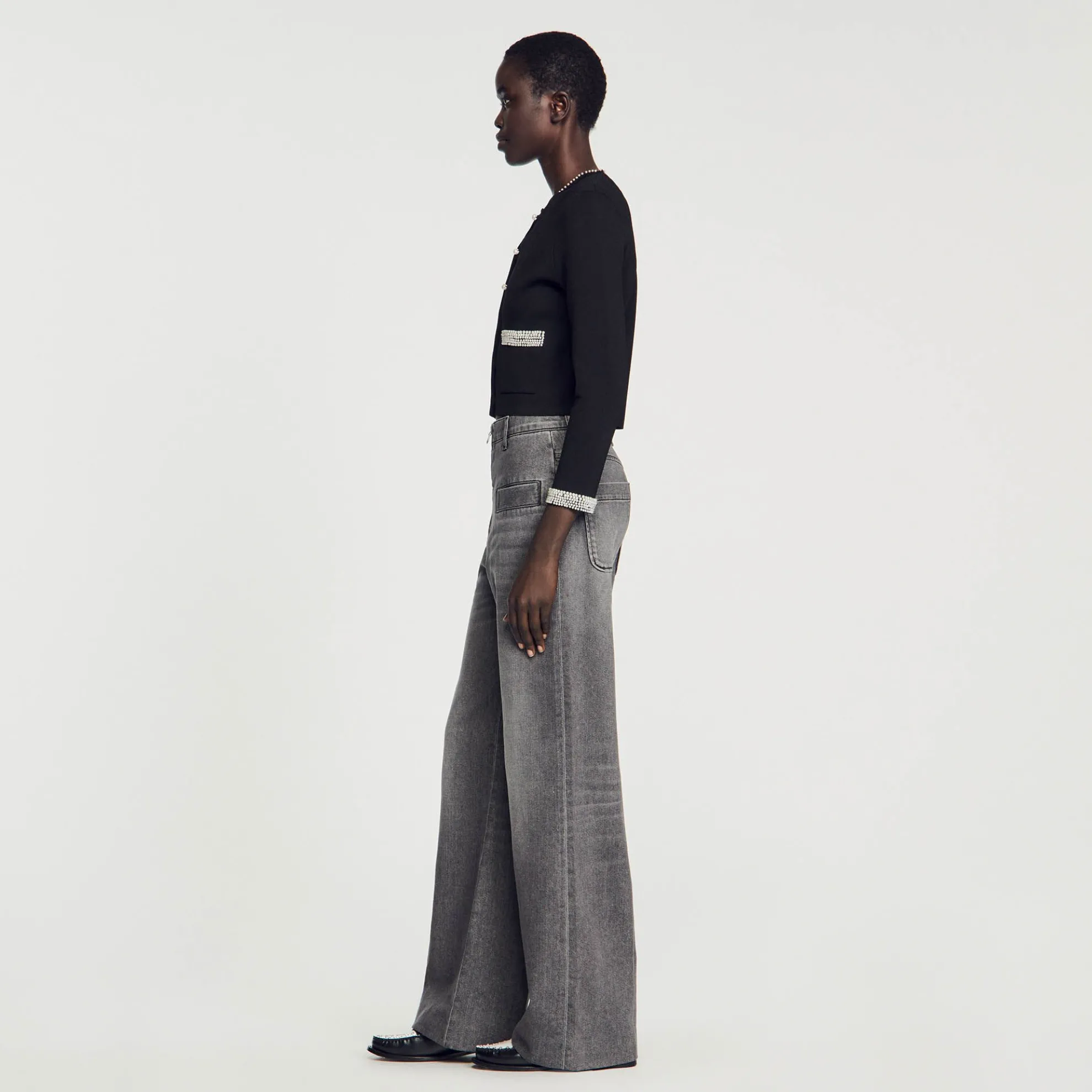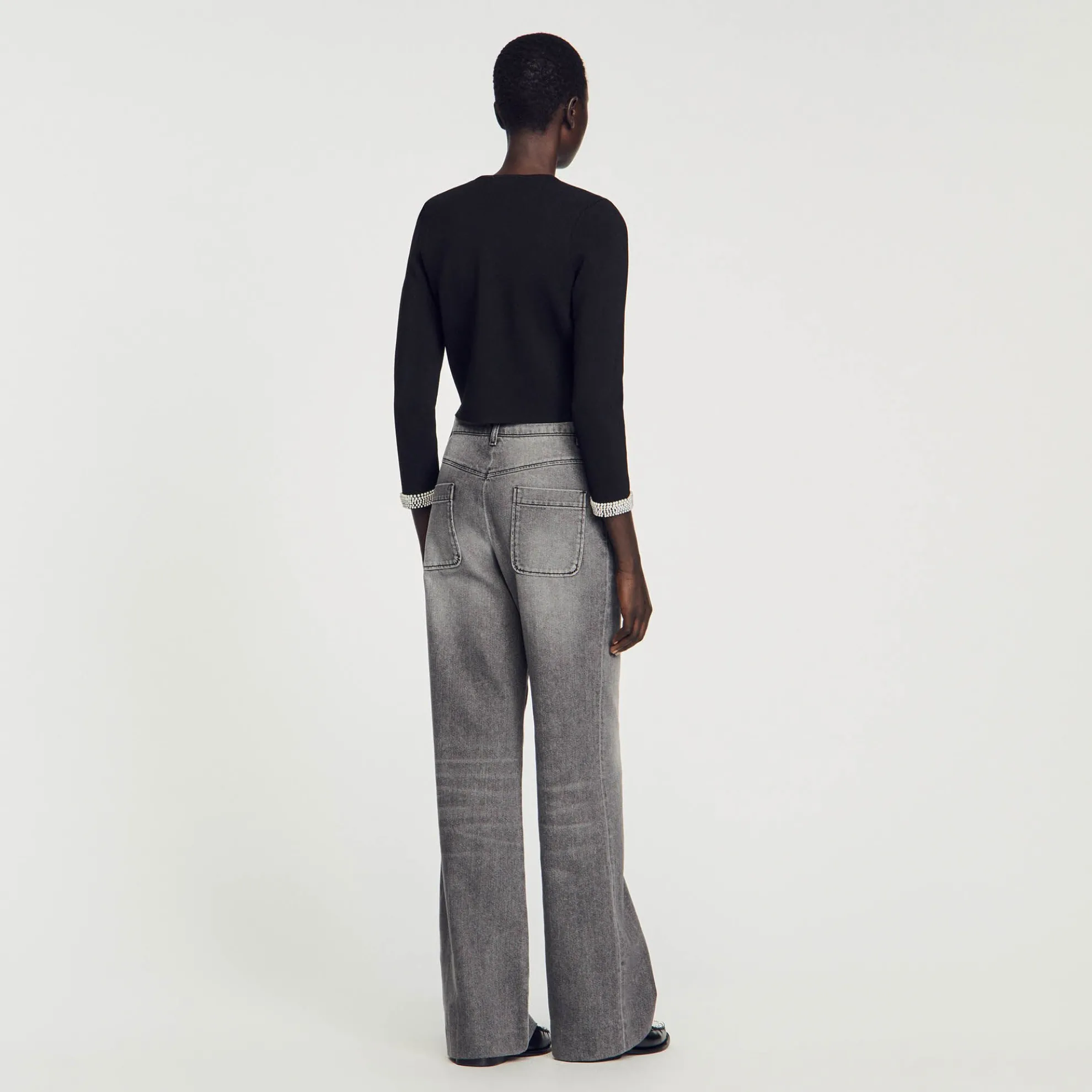 Gebreid cardigan vest met lange mouwen, ronde hals met knoopsluiting met parels en parelmoeren details op de manchetten en in de taille.