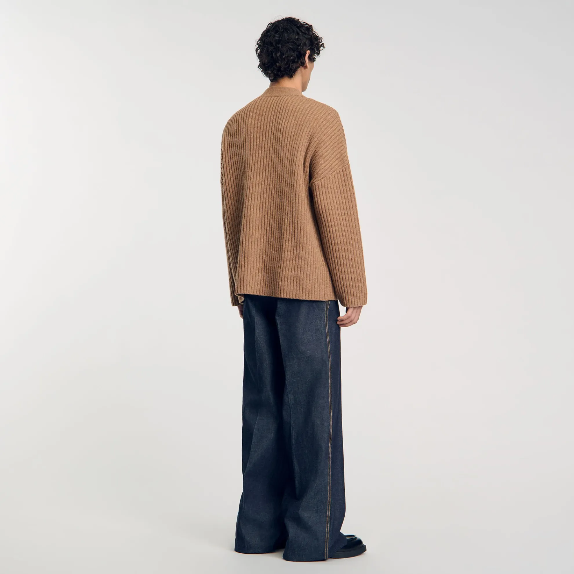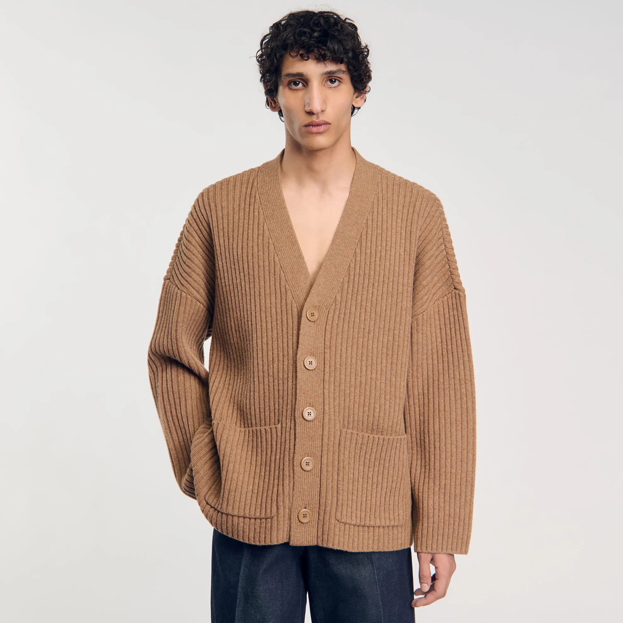 Oversized cardigan vest van grofgebreide stof met volumineuze lange mouwen, V-hals, ton-sur-ton knoopsluiting en opgestikte zakken.