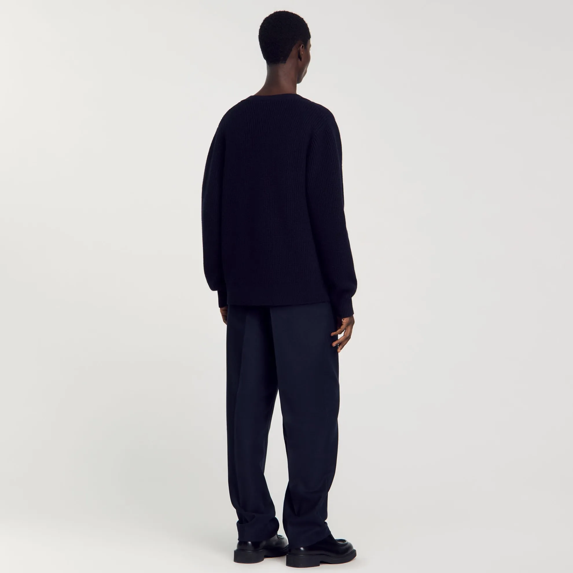Recht cardigan vest van ribbreisel met V-hals, lange mouwen, knoopsluiting en opgestikte zakken.