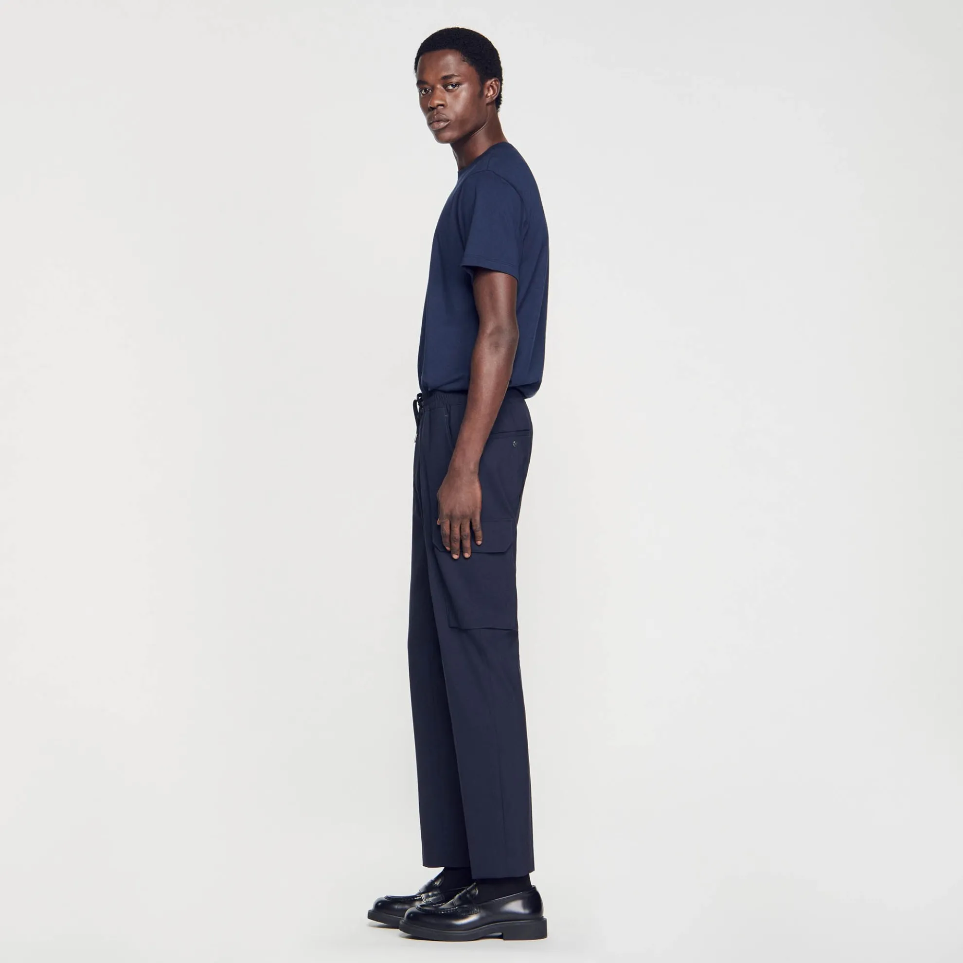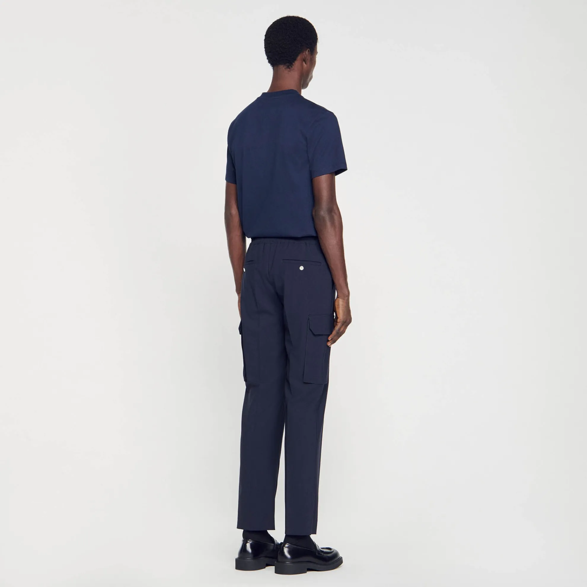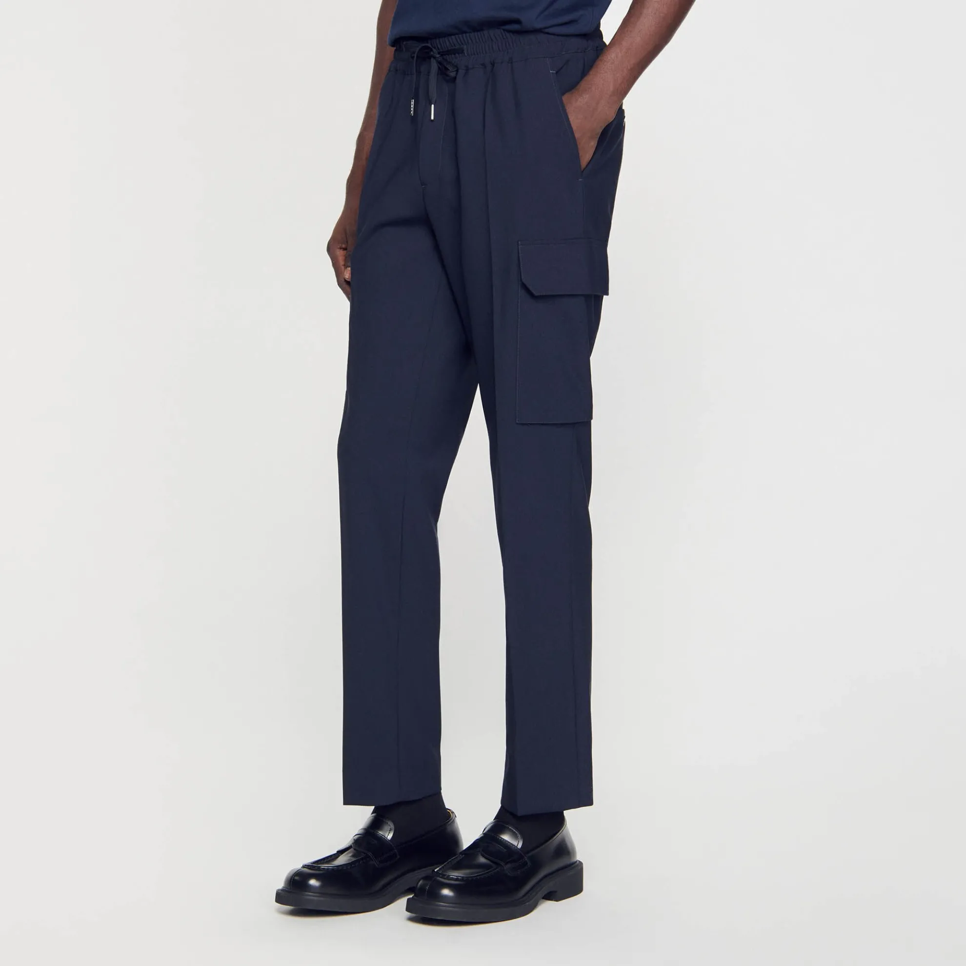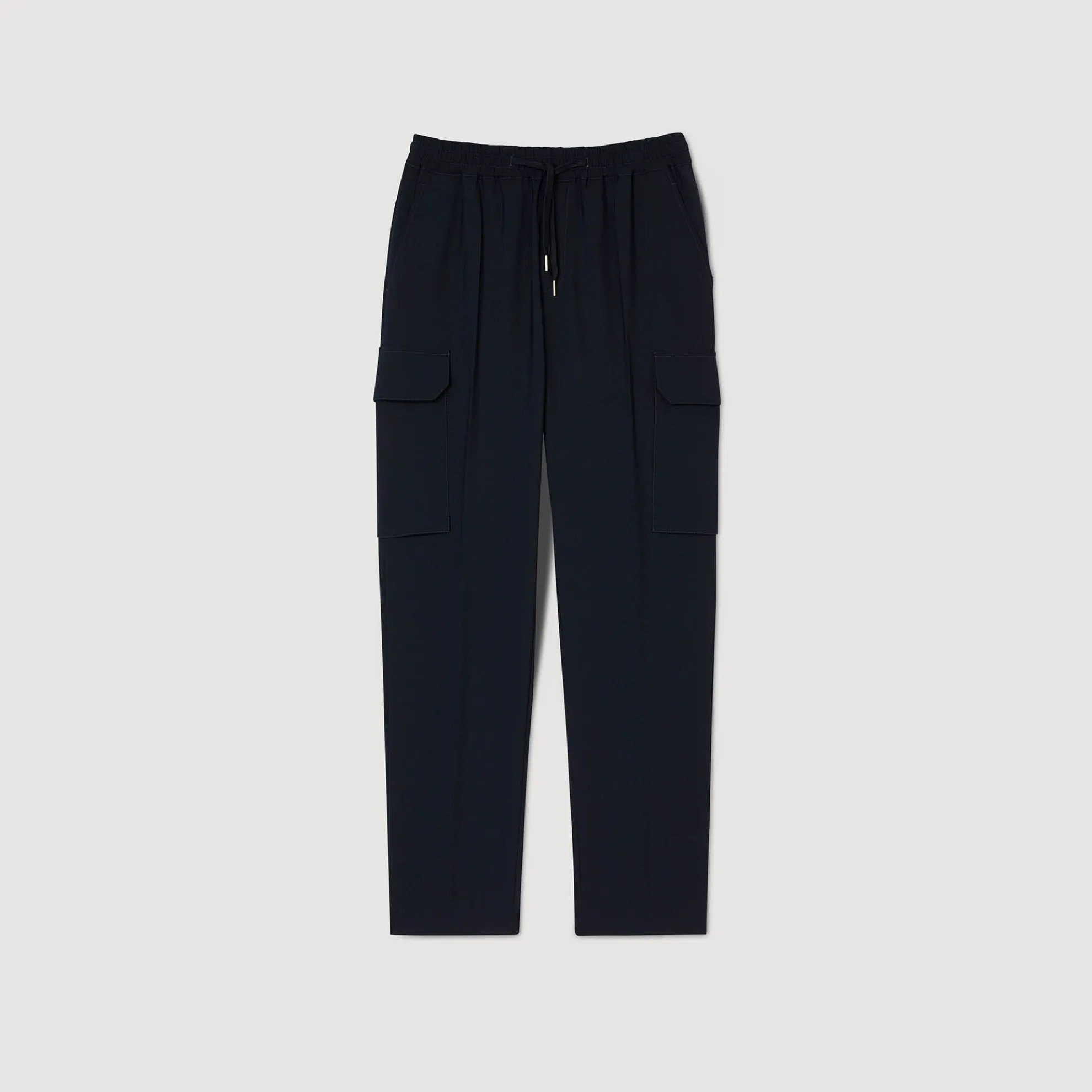 Cargobroek met elastische taille met trekkoord, en zij- en achterzakken.