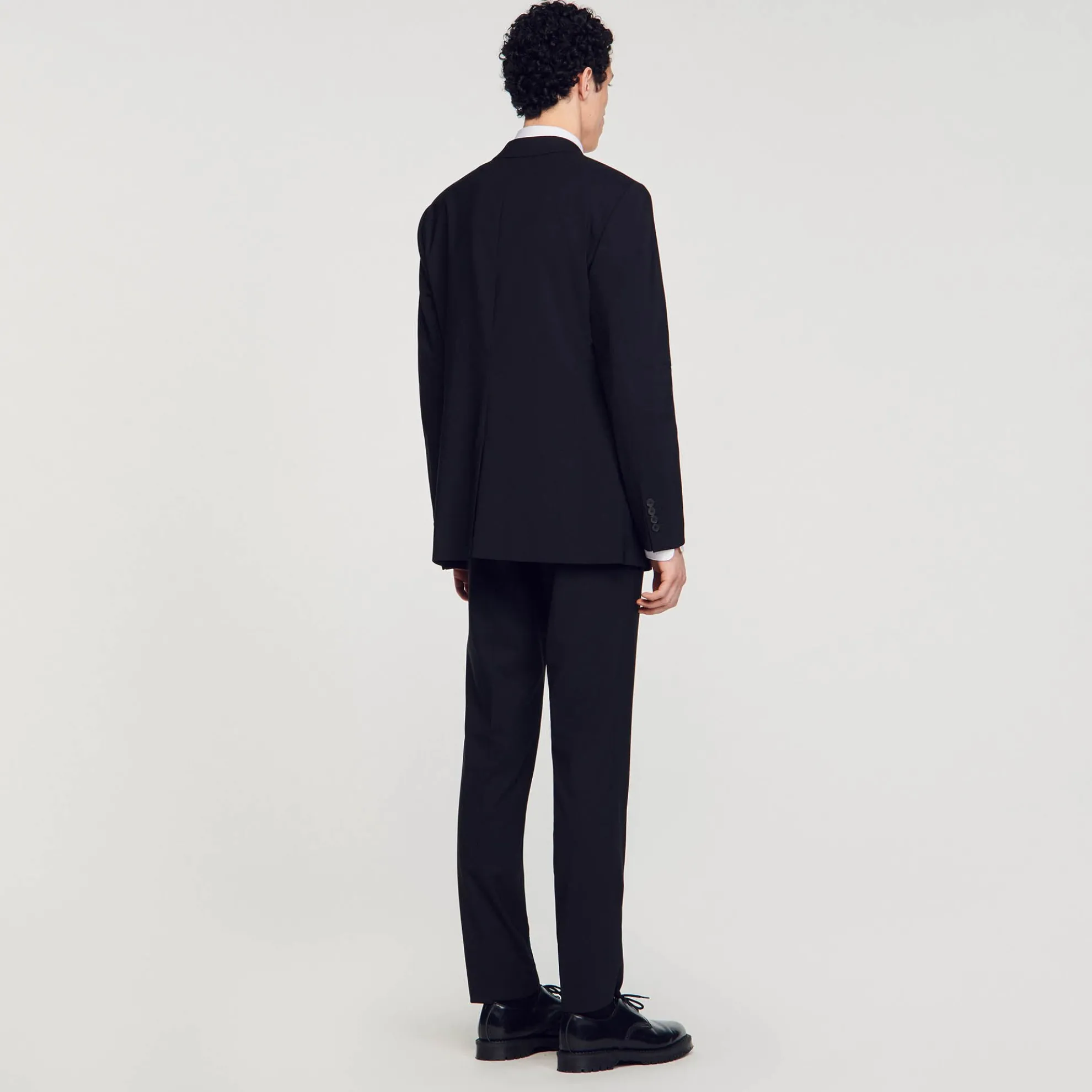 Colbert van scheerwol met klassieke snit en een sluiting met twee knopen.