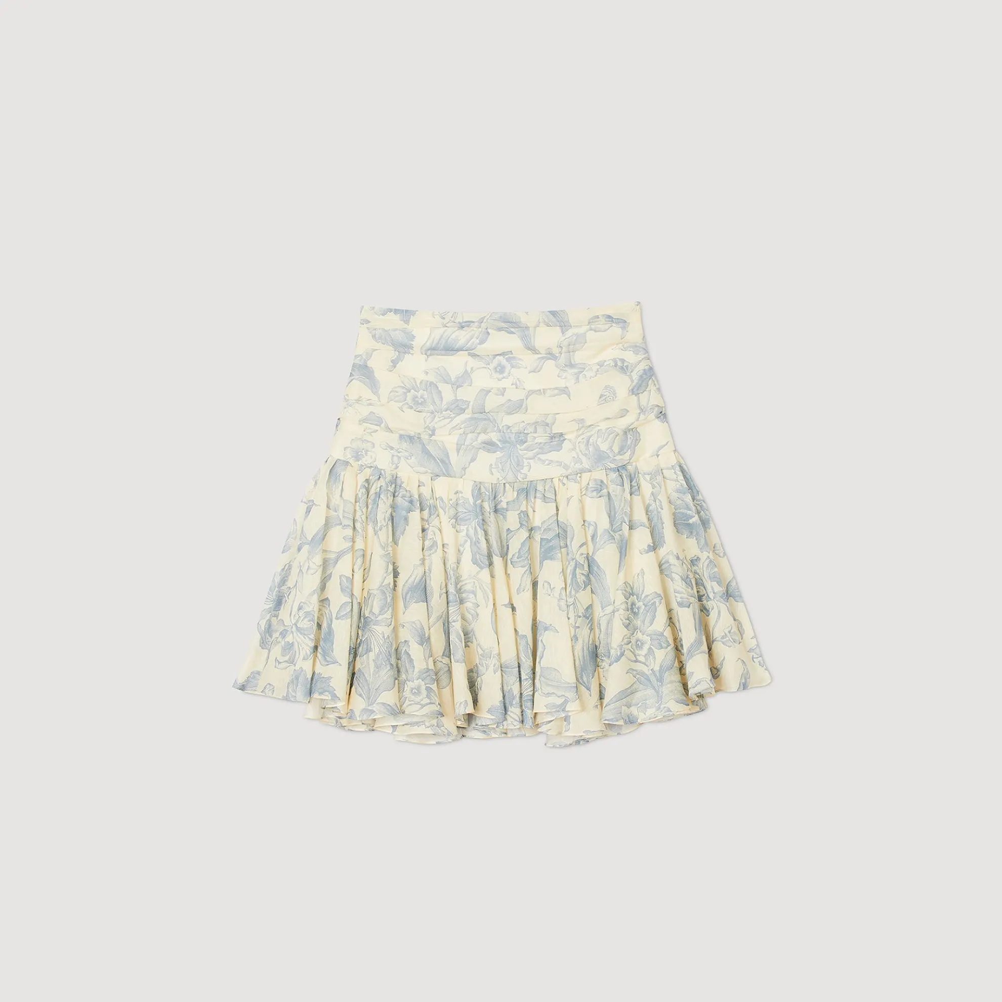 Korte gedrapeerde, geplooide rok met een all-over bloemenprint.