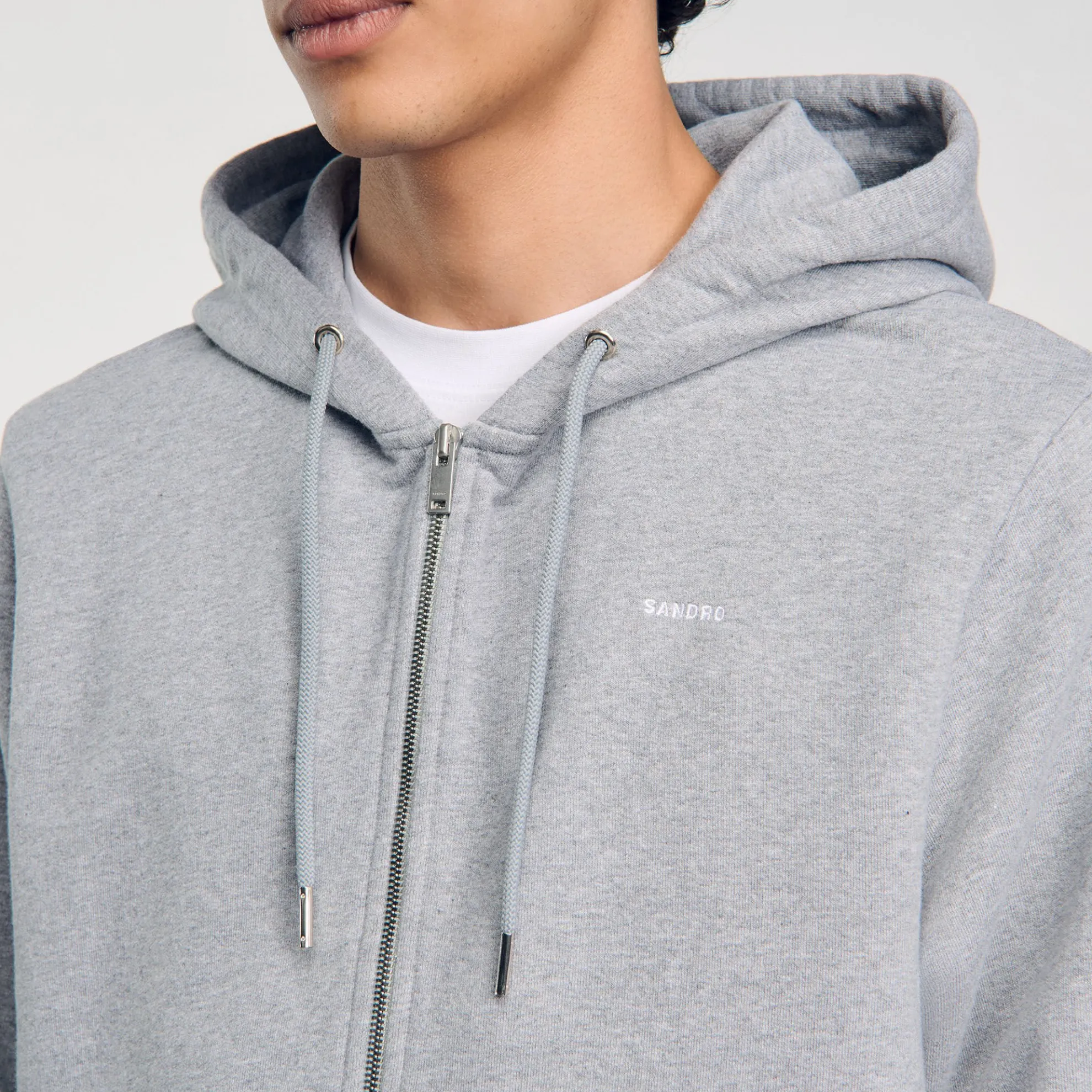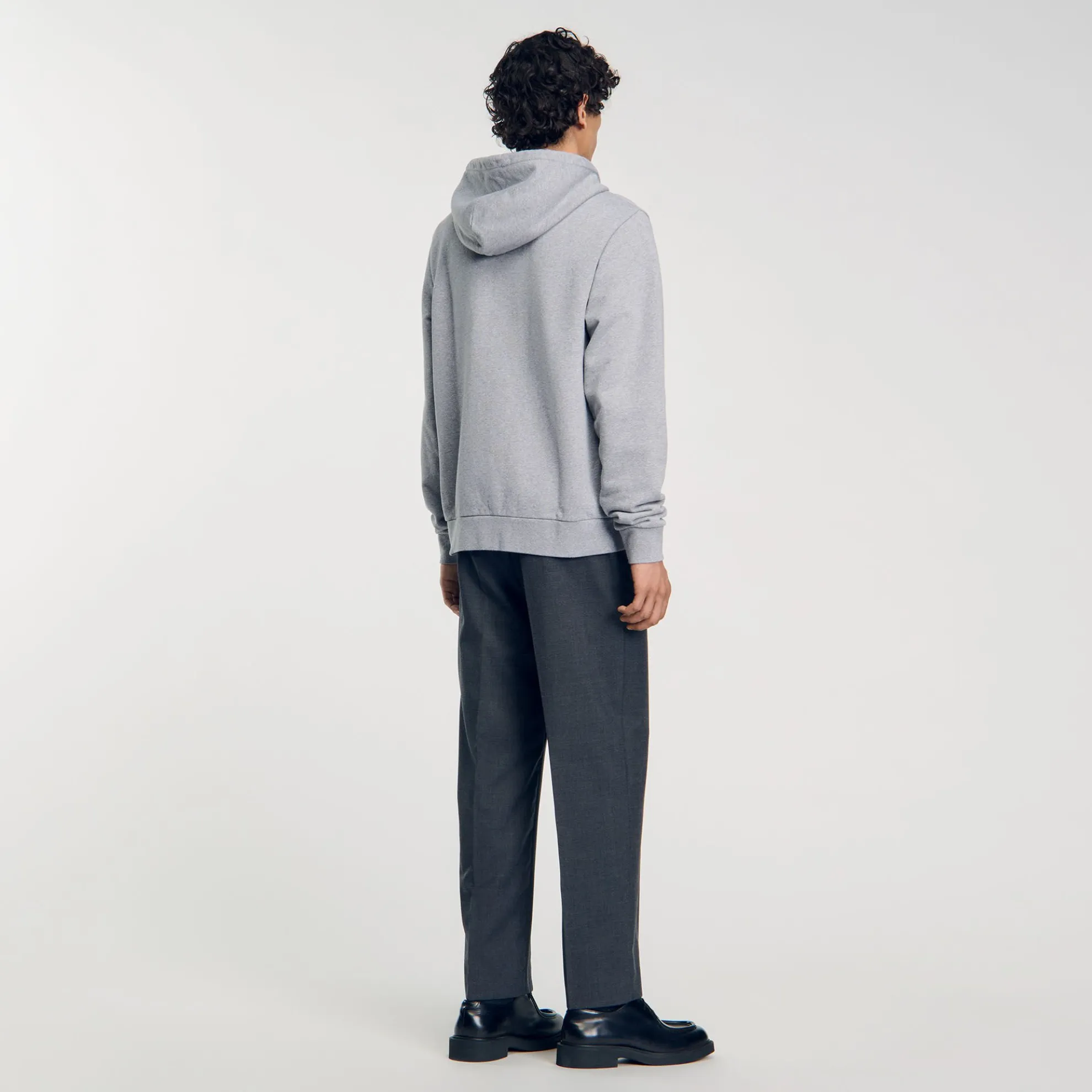 Hoodie met een capuchon met trekkoord en lange mouwen en een Sandro-borduursel op de voorkant. De nu al iconische Sandro hoodie is een unisex item dat de vrouw leent uit de kledingkast van de man.