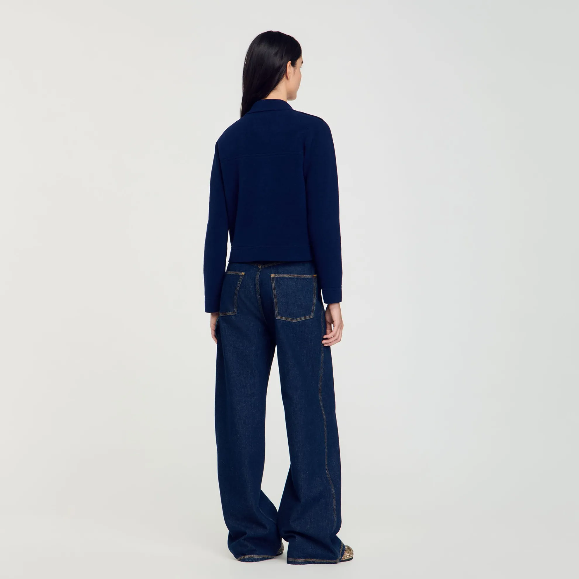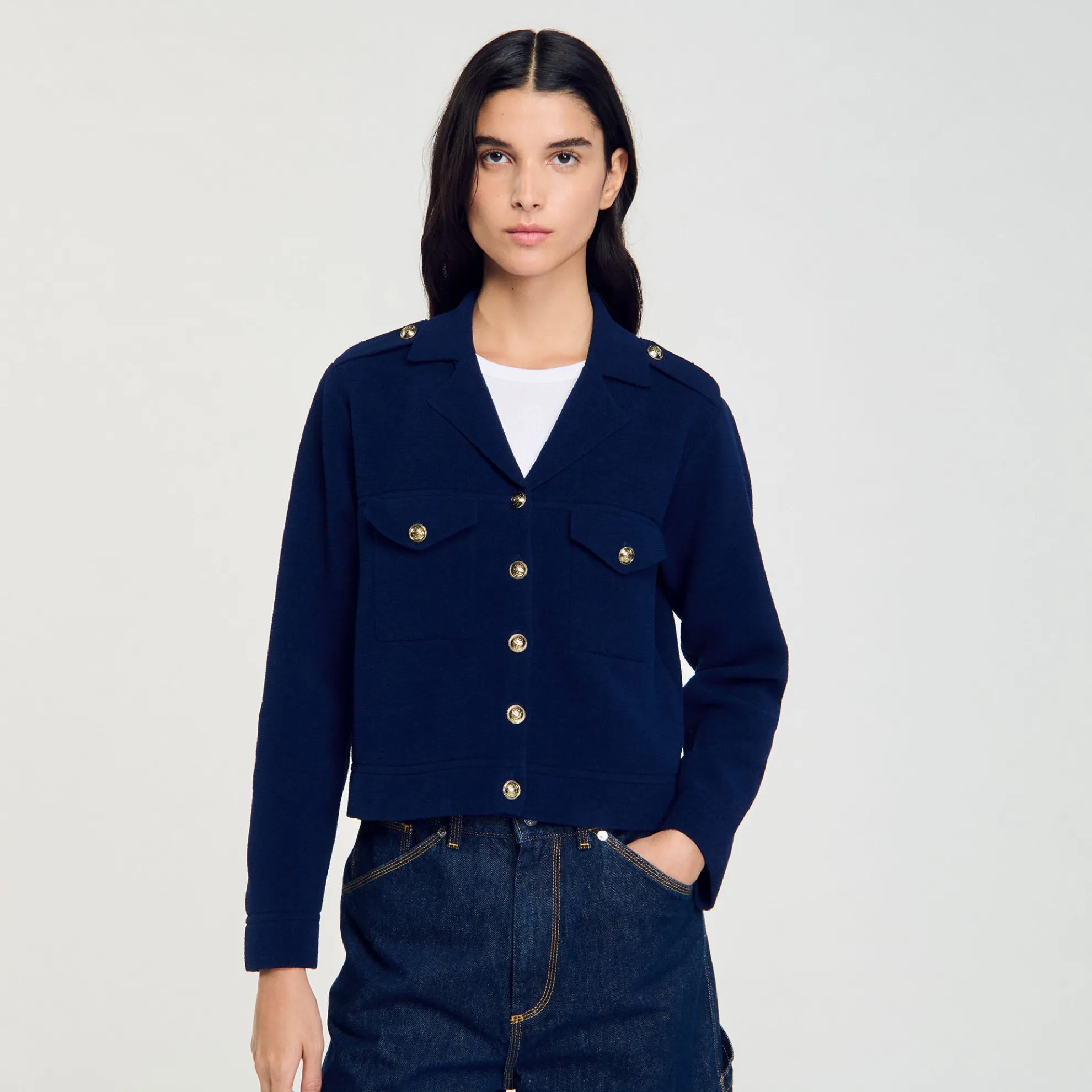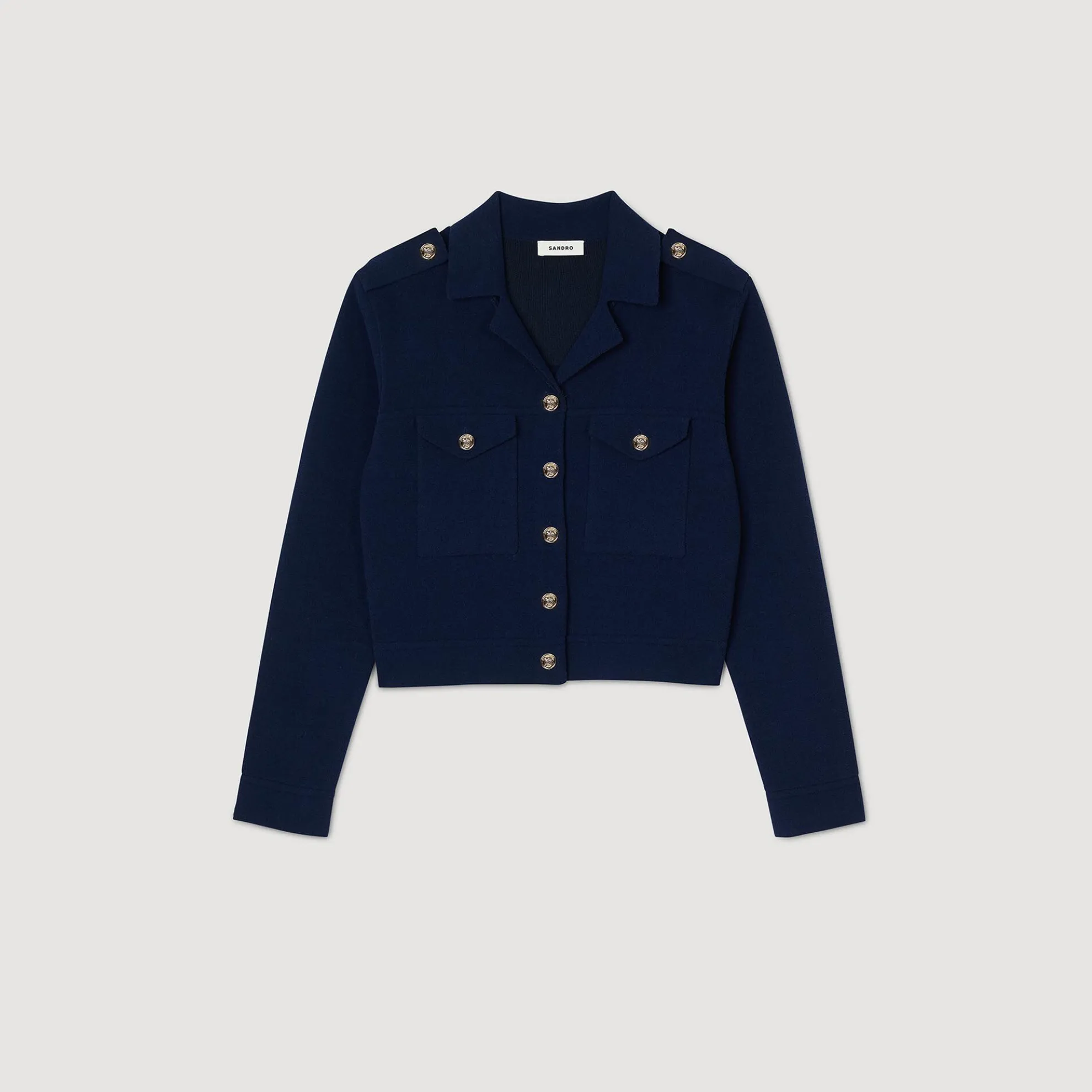 Cardicoat met een overhemdkraag, lange mouwen, knoopsluiting en opgestikte borstzakken met kleppen.