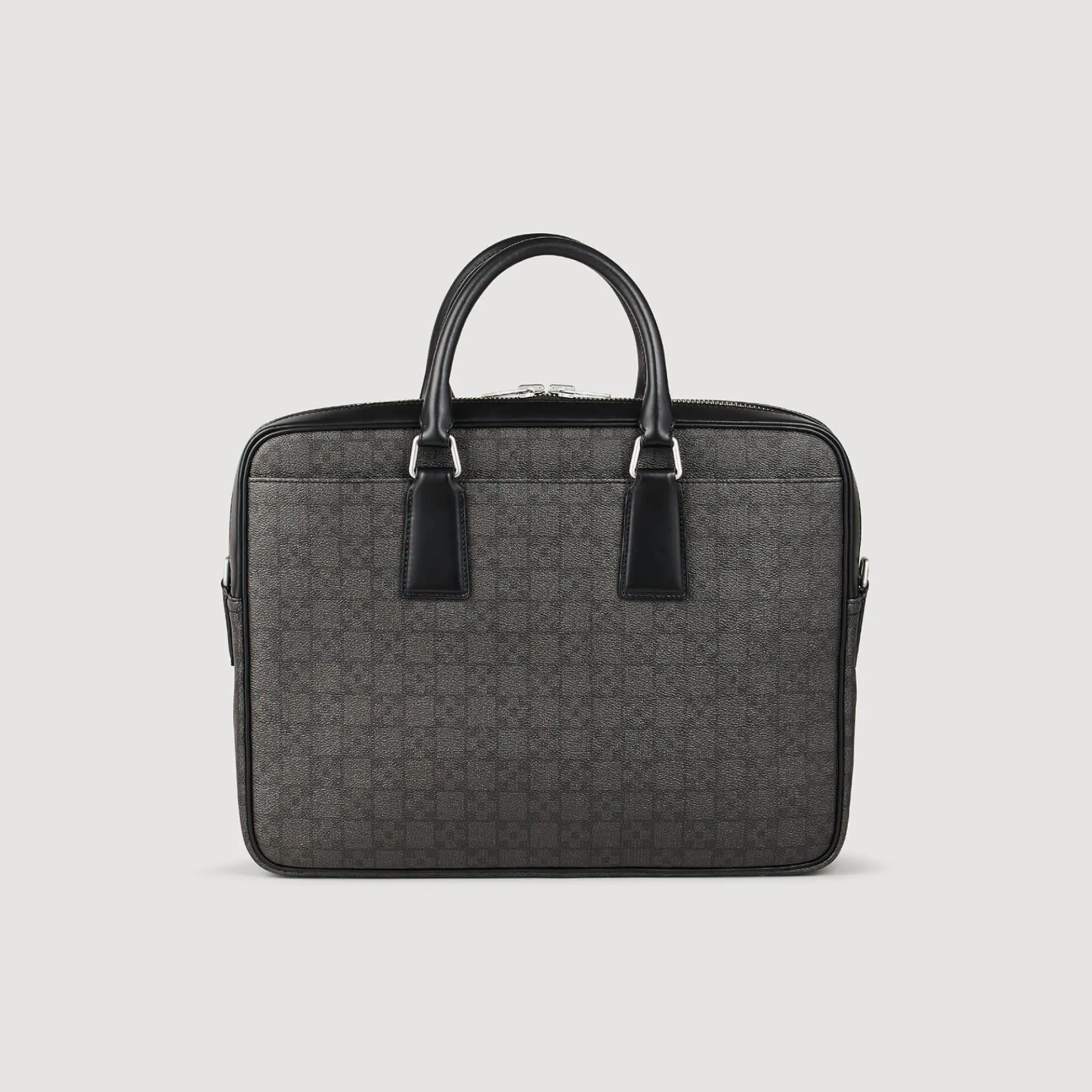 Grote aktetas met ritssluiting gemaakt van canvas Square Cross, met verstelbare, afneembare schouderriem, korte handgrepen en afneembare labelhouder.