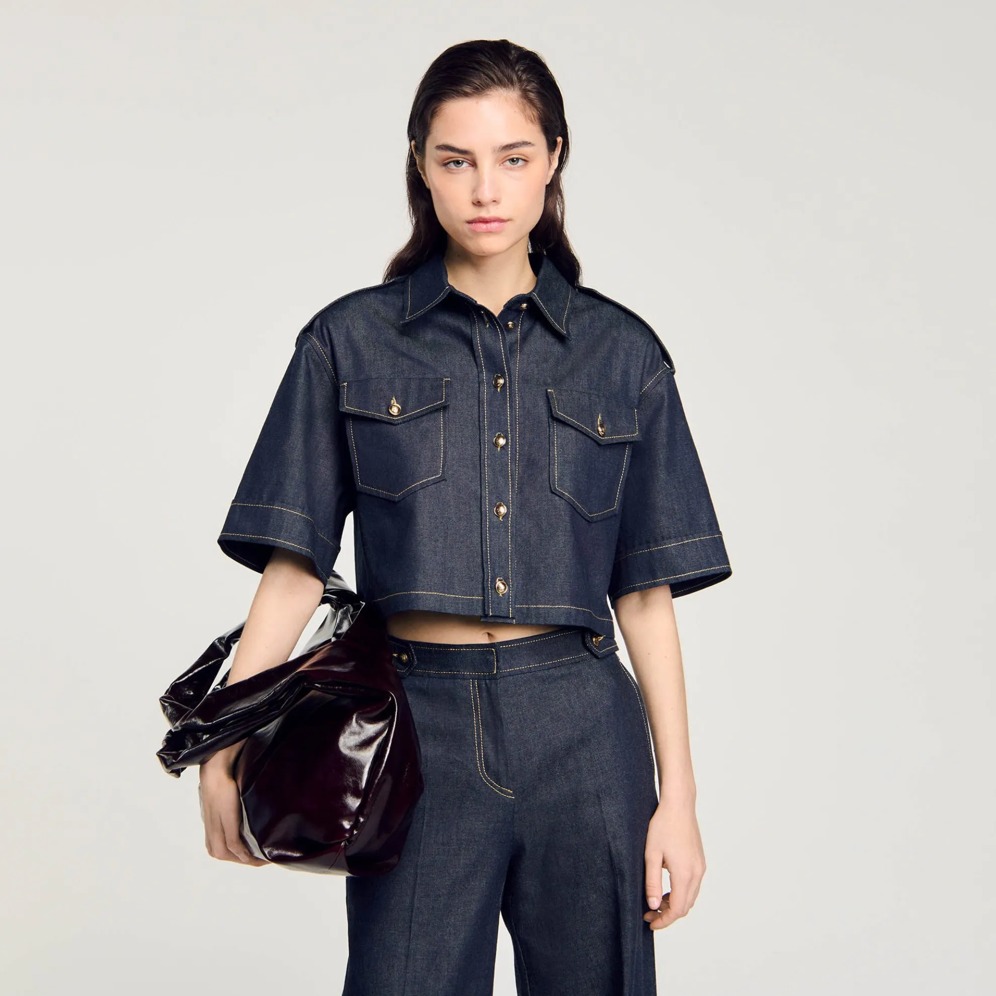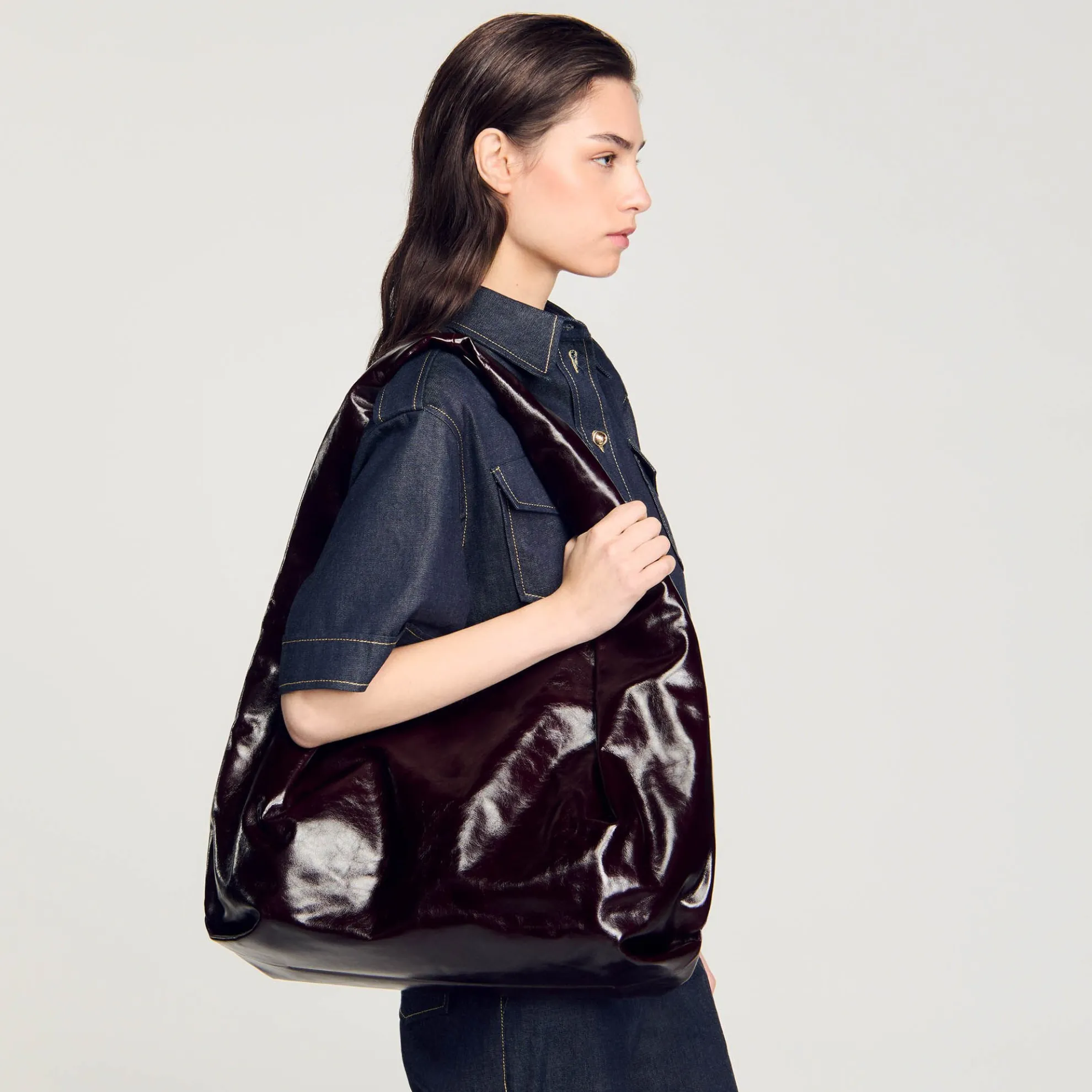 - Grote tas glanzend lakleer Sandro Dames