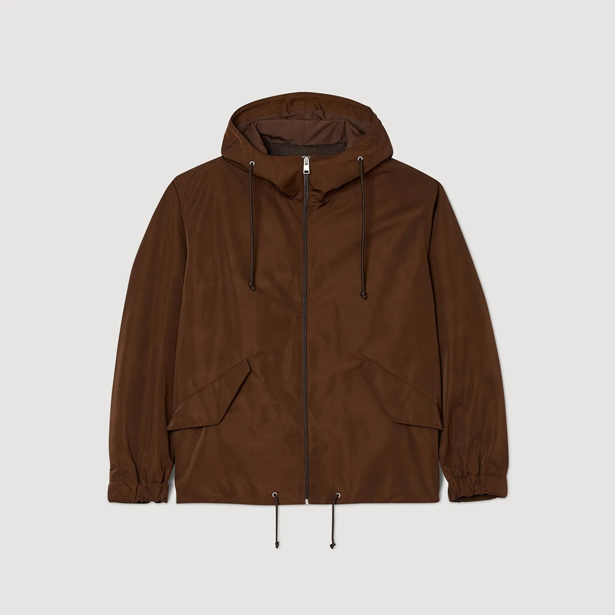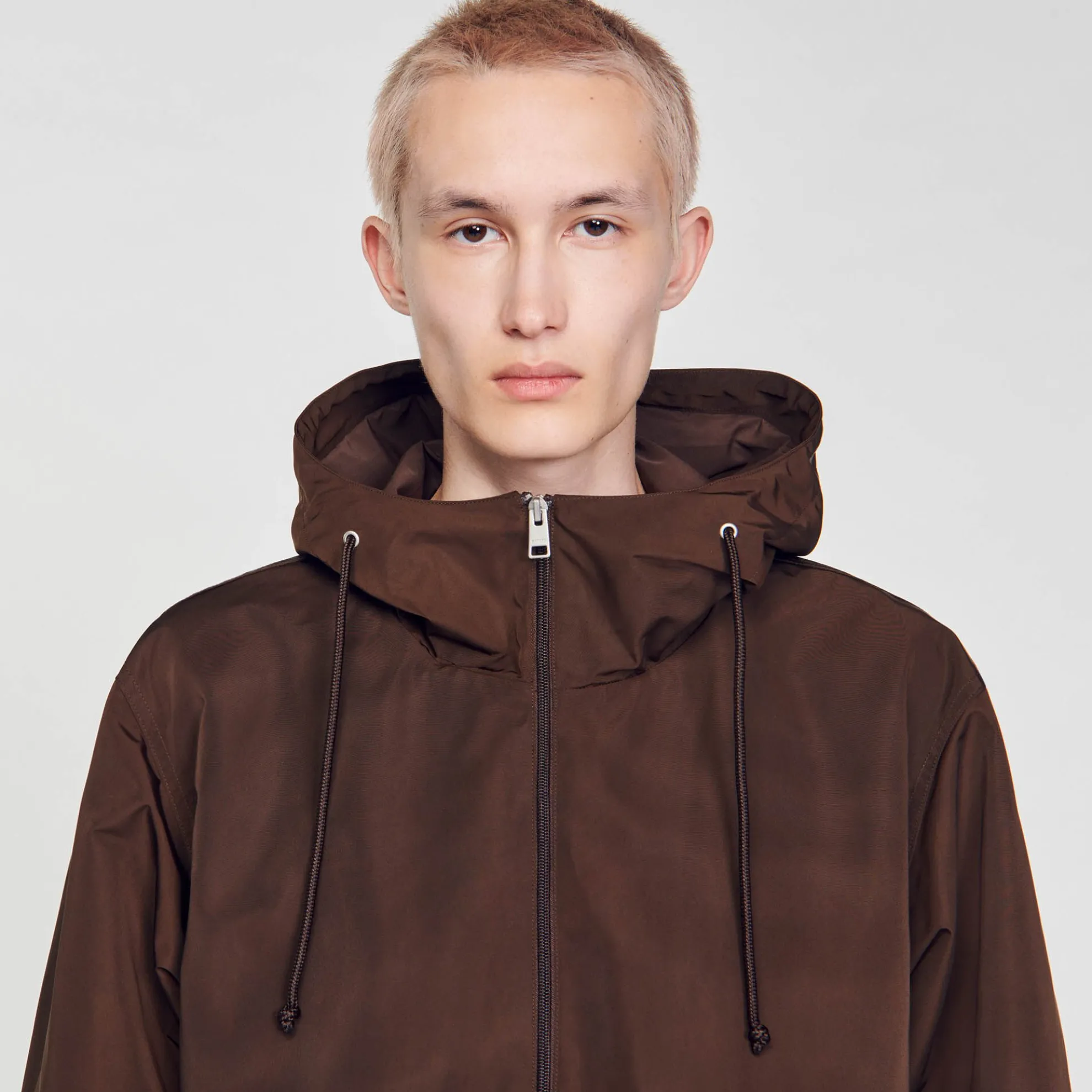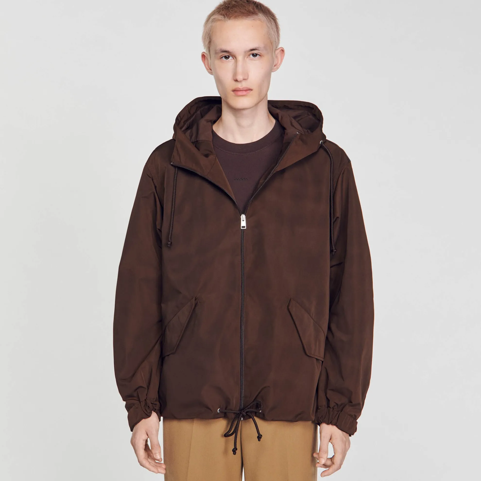 Windbreaker jack met capuchon, ritssluiting, lange mouwen en klepzakken.