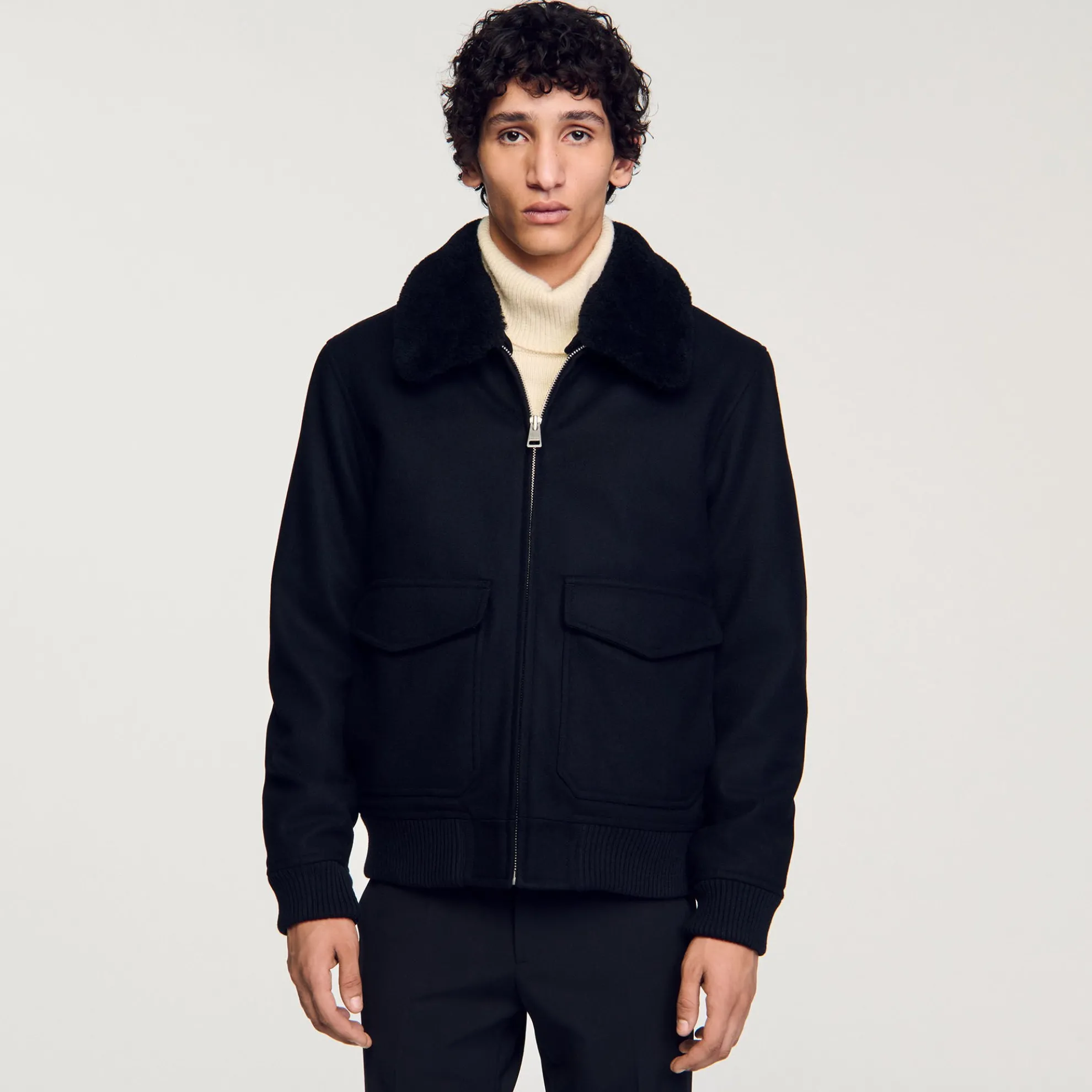 Jack met lange mouwen, overhemdkraag, ritssluiting, paspelzakken aan de voorkant, split aan de achterkant en binnenzak met ritssluiting.