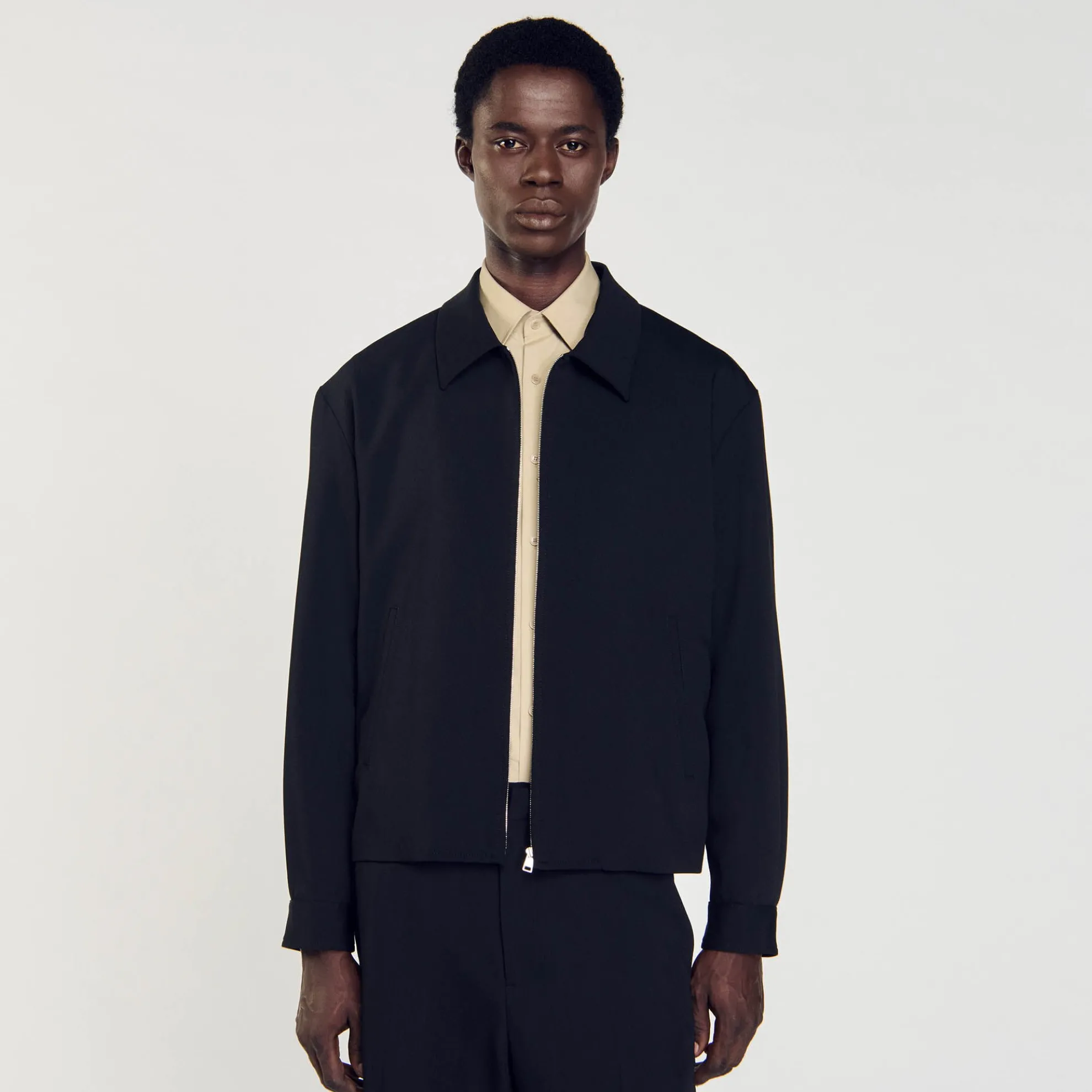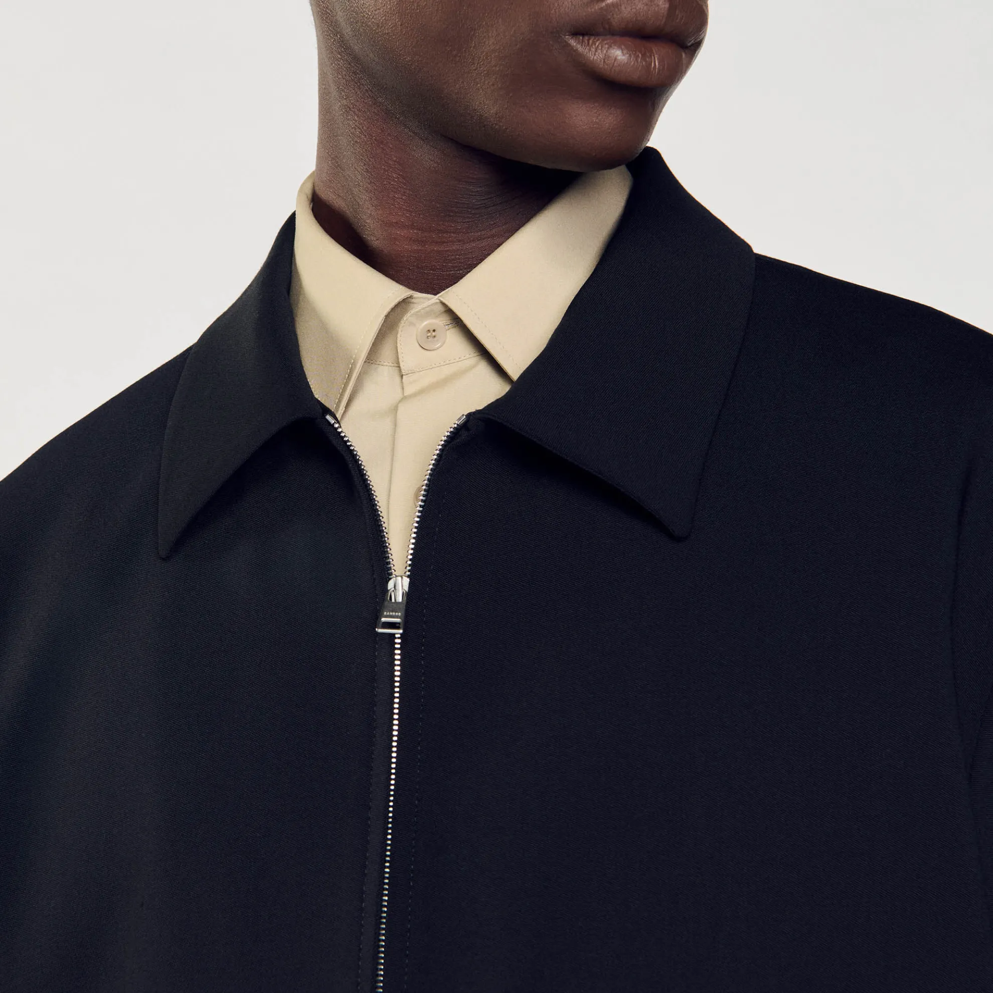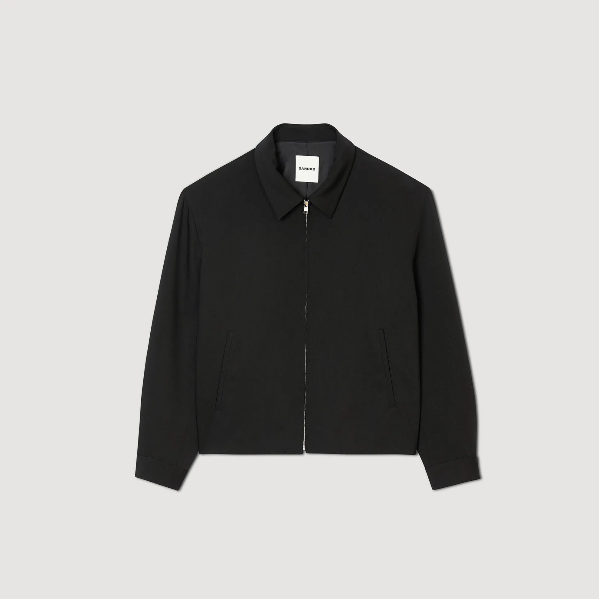 Jack met lange mouwen, overhemdkraag, ritssluiting, paspelzakken aan de voorkant, split aan de achterkant en binnenzak met ritssluiting.