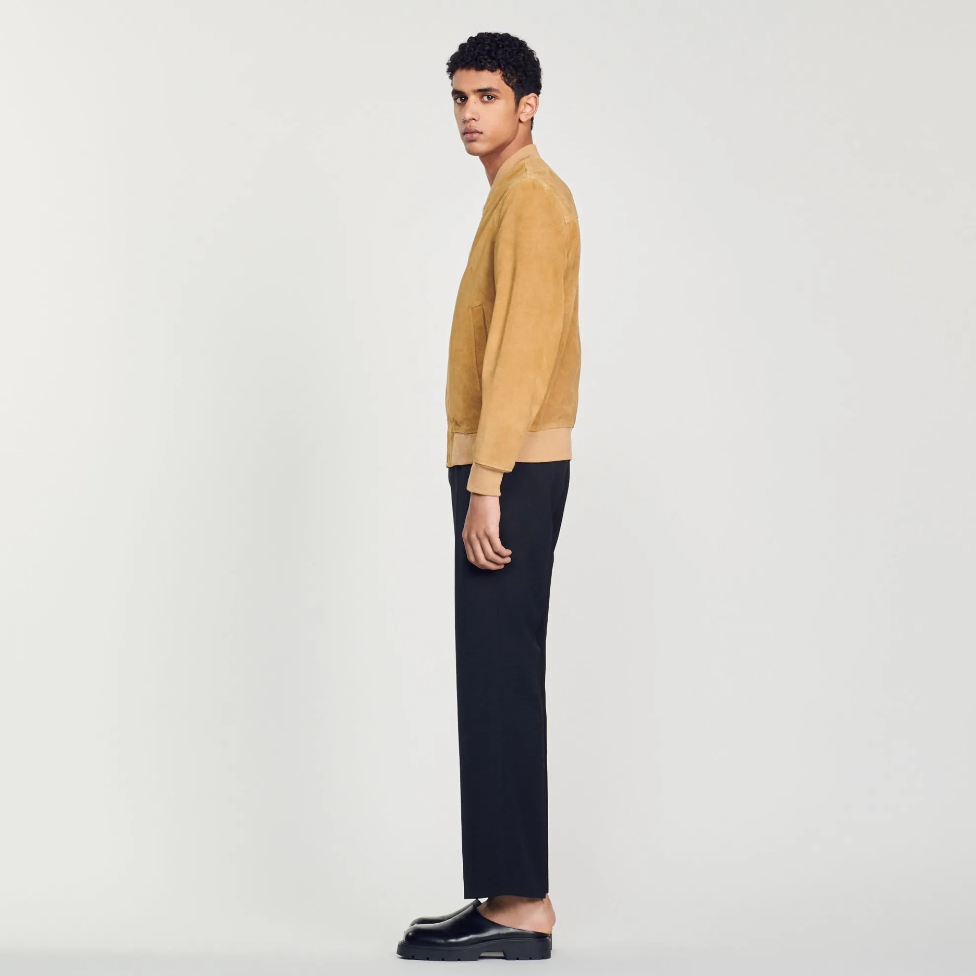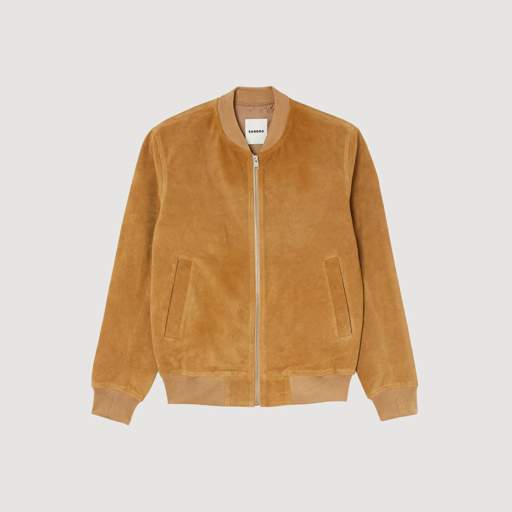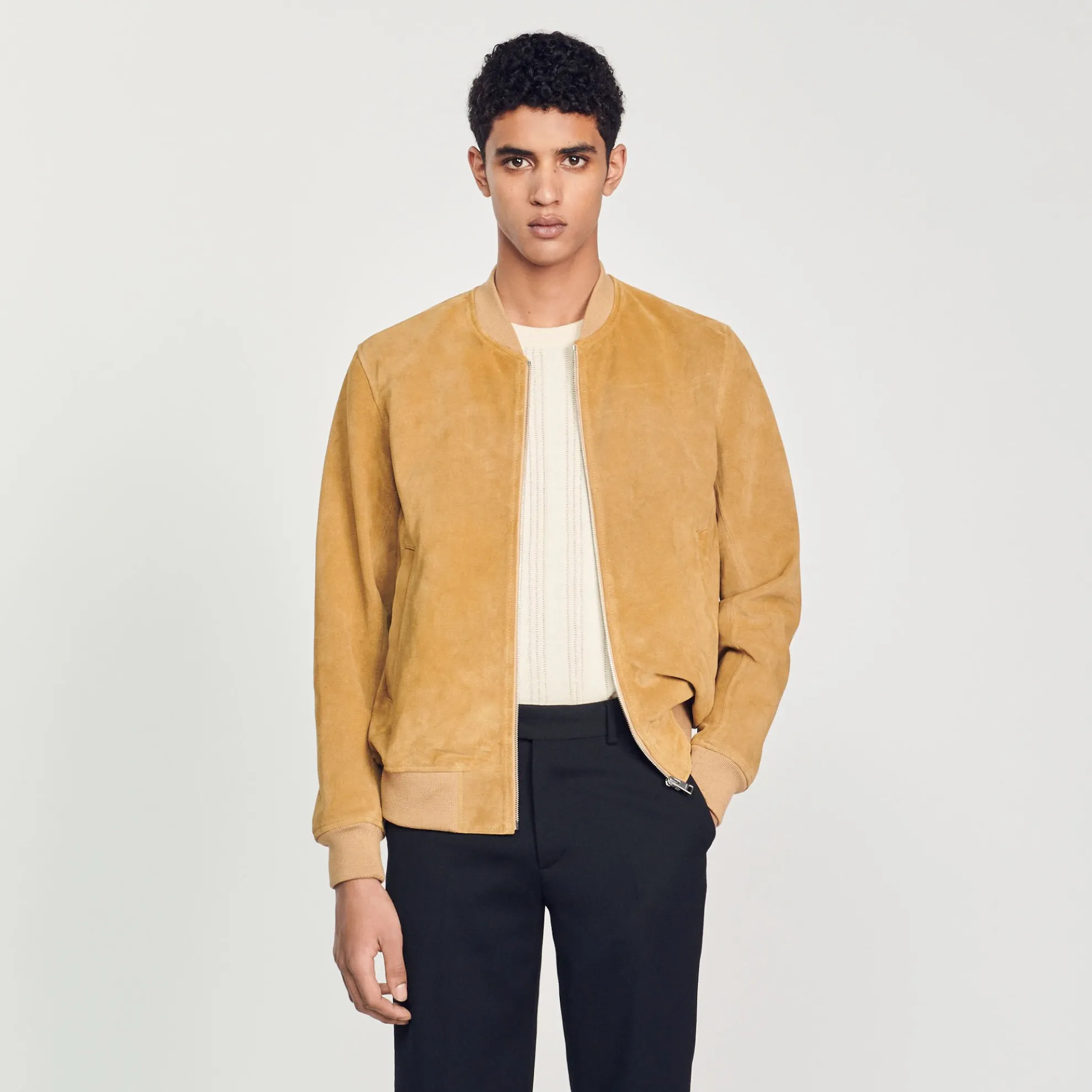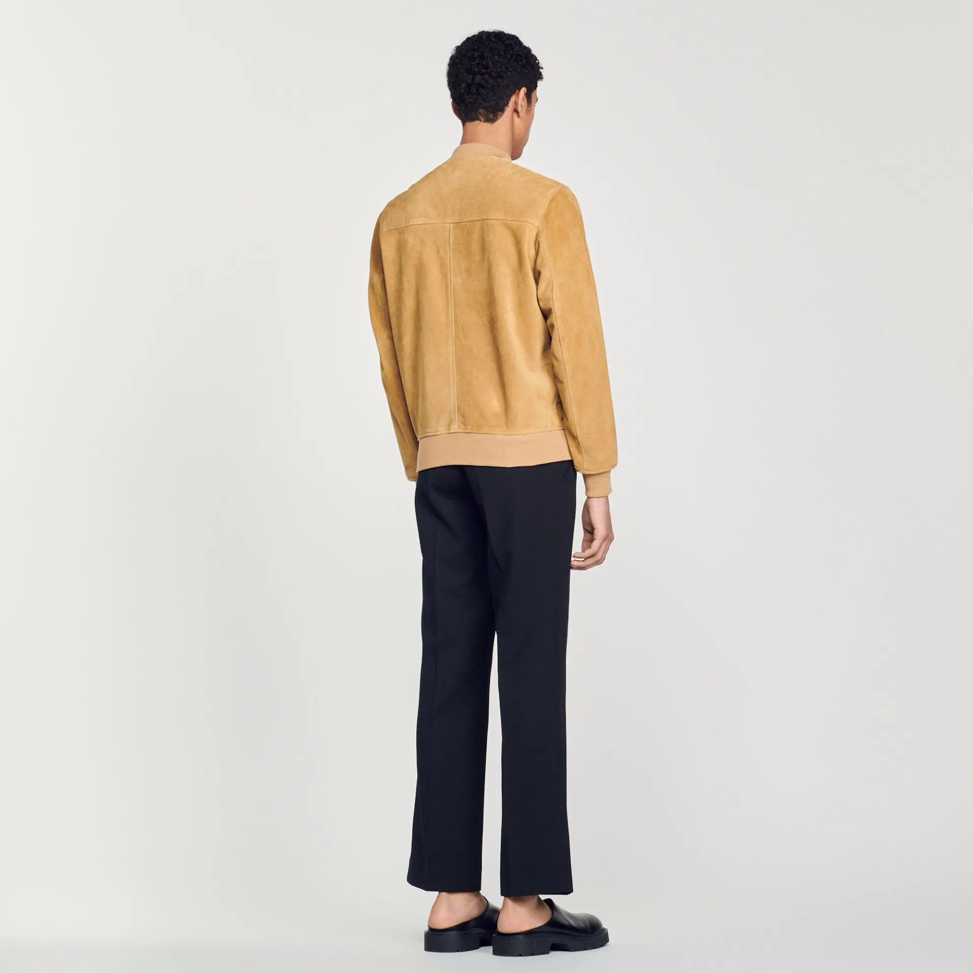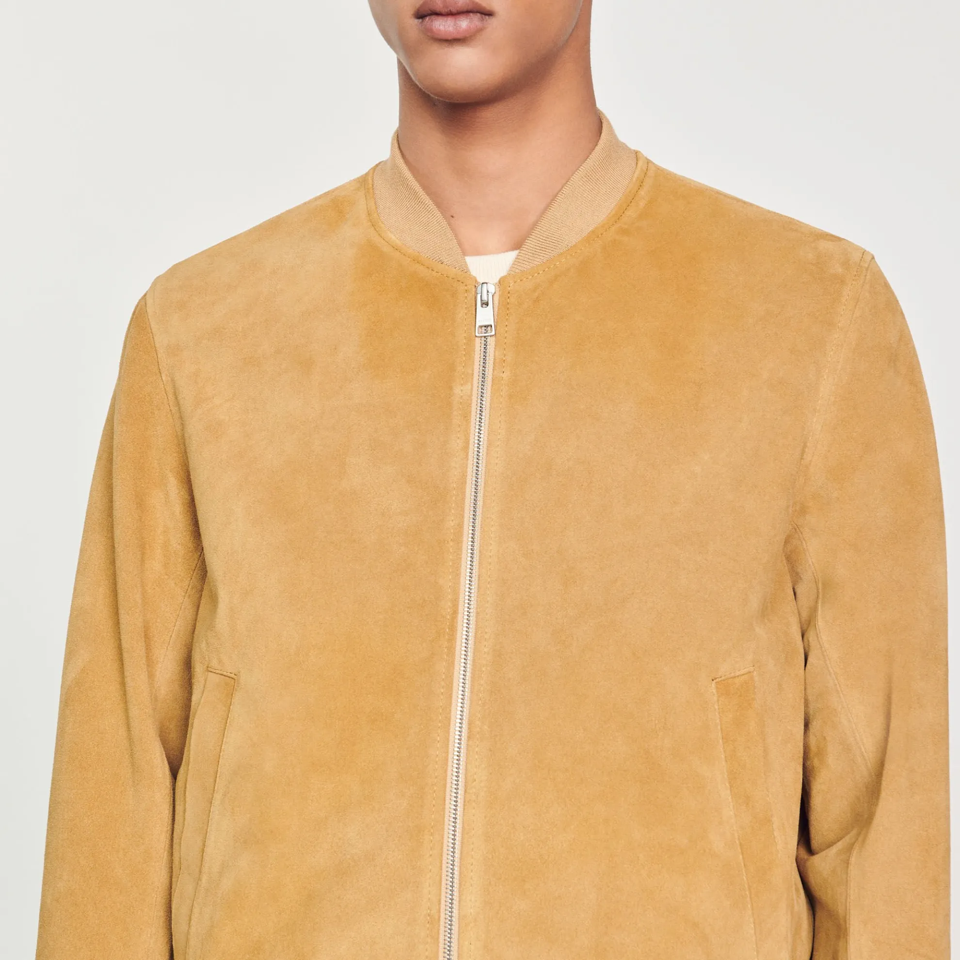 Jack van suède met lange mouwen, een ritssluiting en schuine zakken.