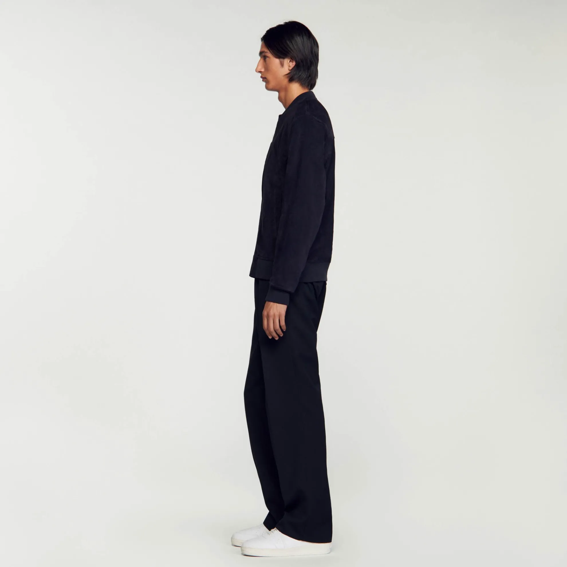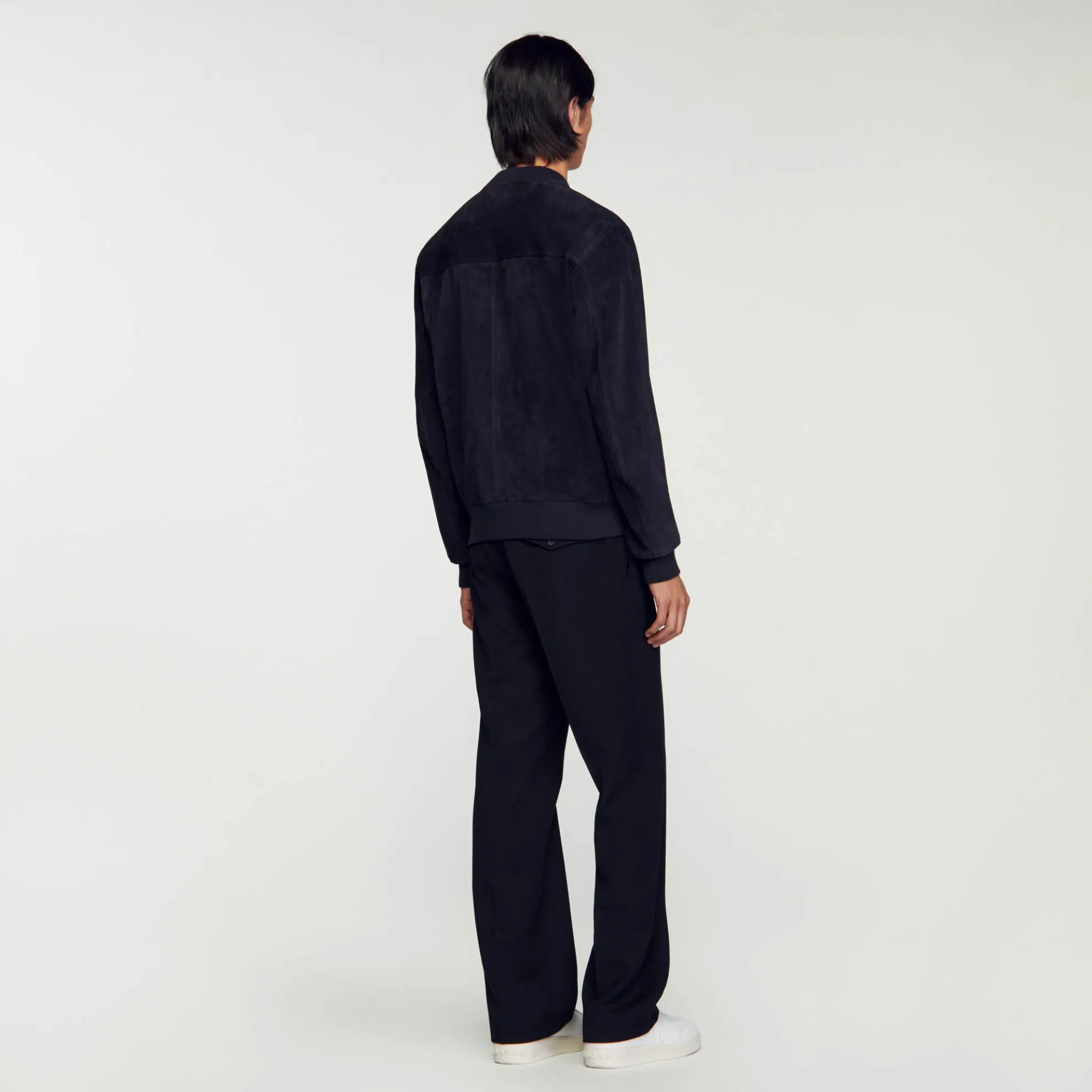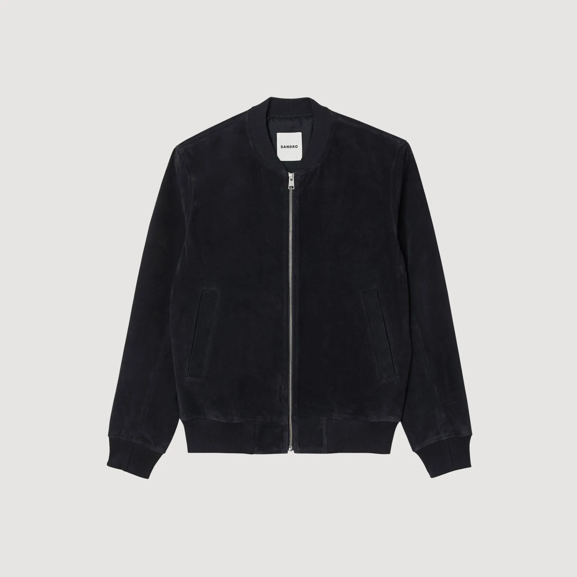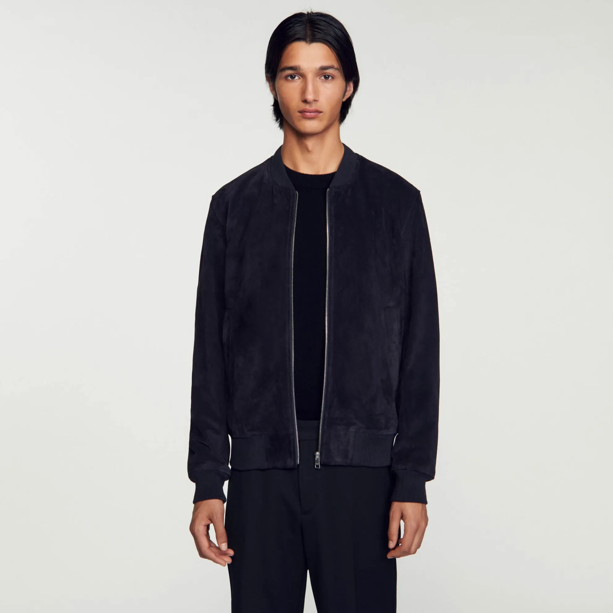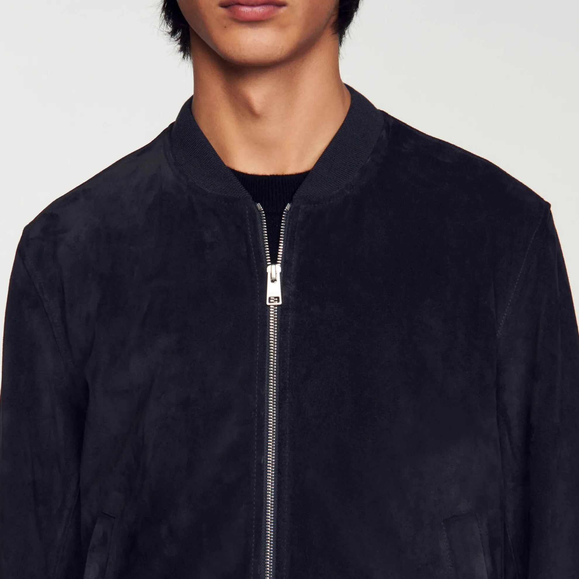 Jack van suède met lange mouwen, een ritssluiting en schuine zakken.