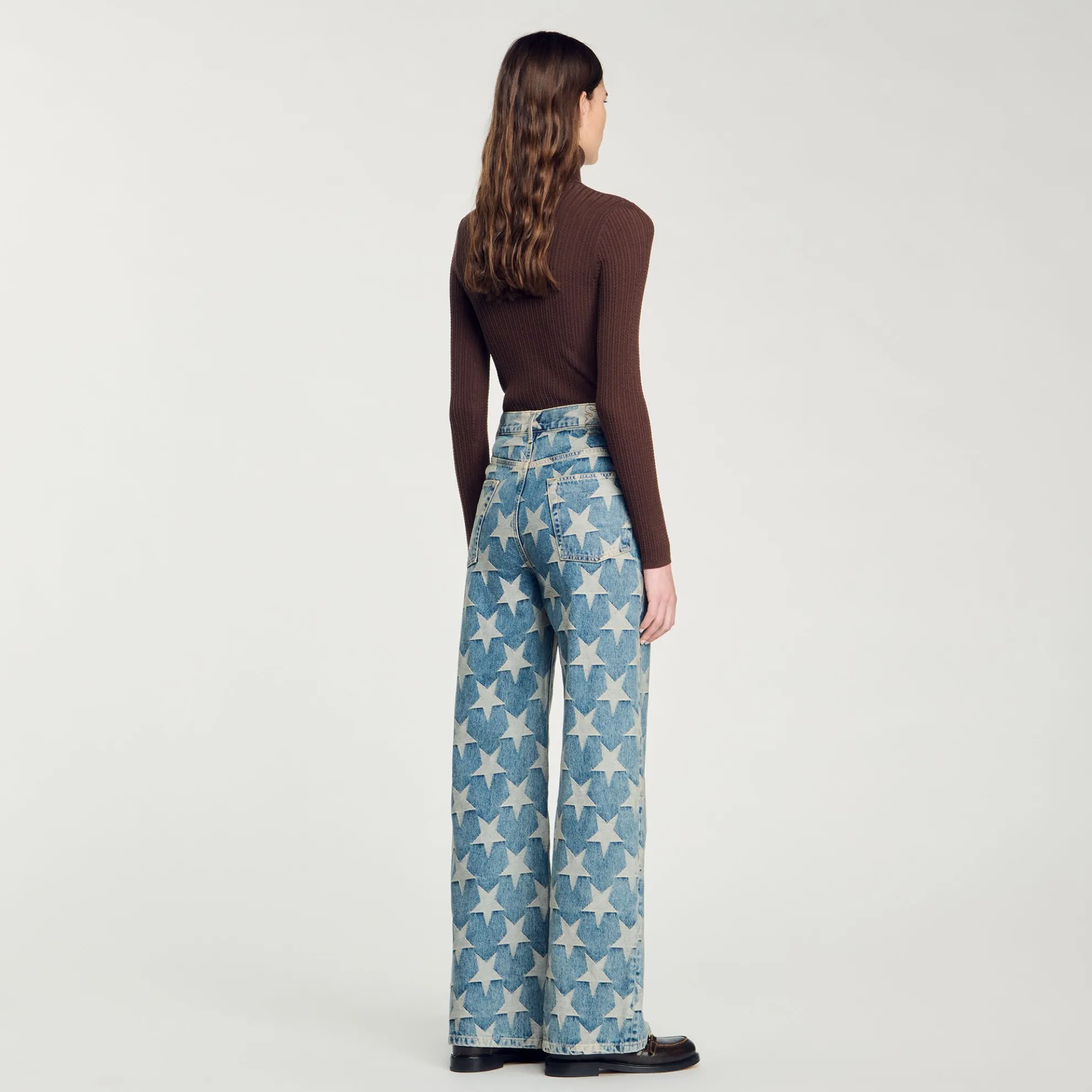 Straight fit jeans met verwassen sterren jacquard, 5 zakken en riemlussen.