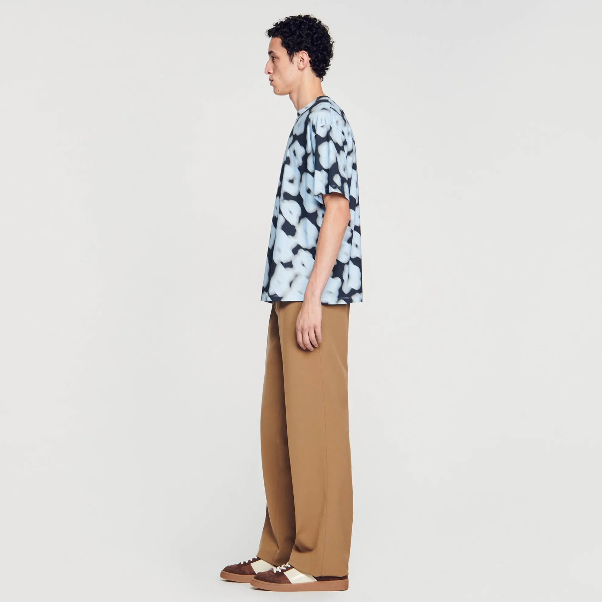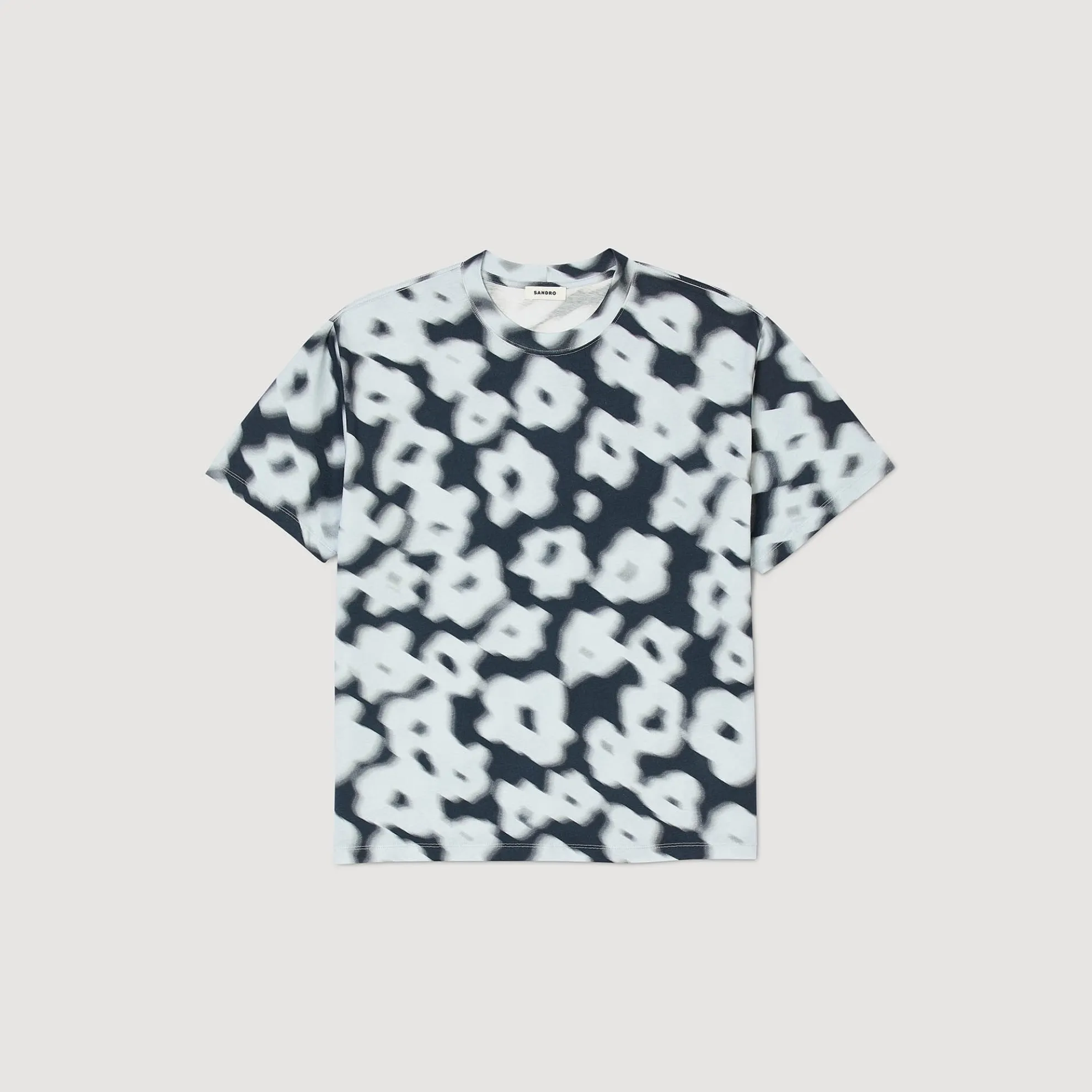 Klassiek katoenen T-shirt met een ronde kraag en korte mouwen, versierd met een zachte bloemenprint.