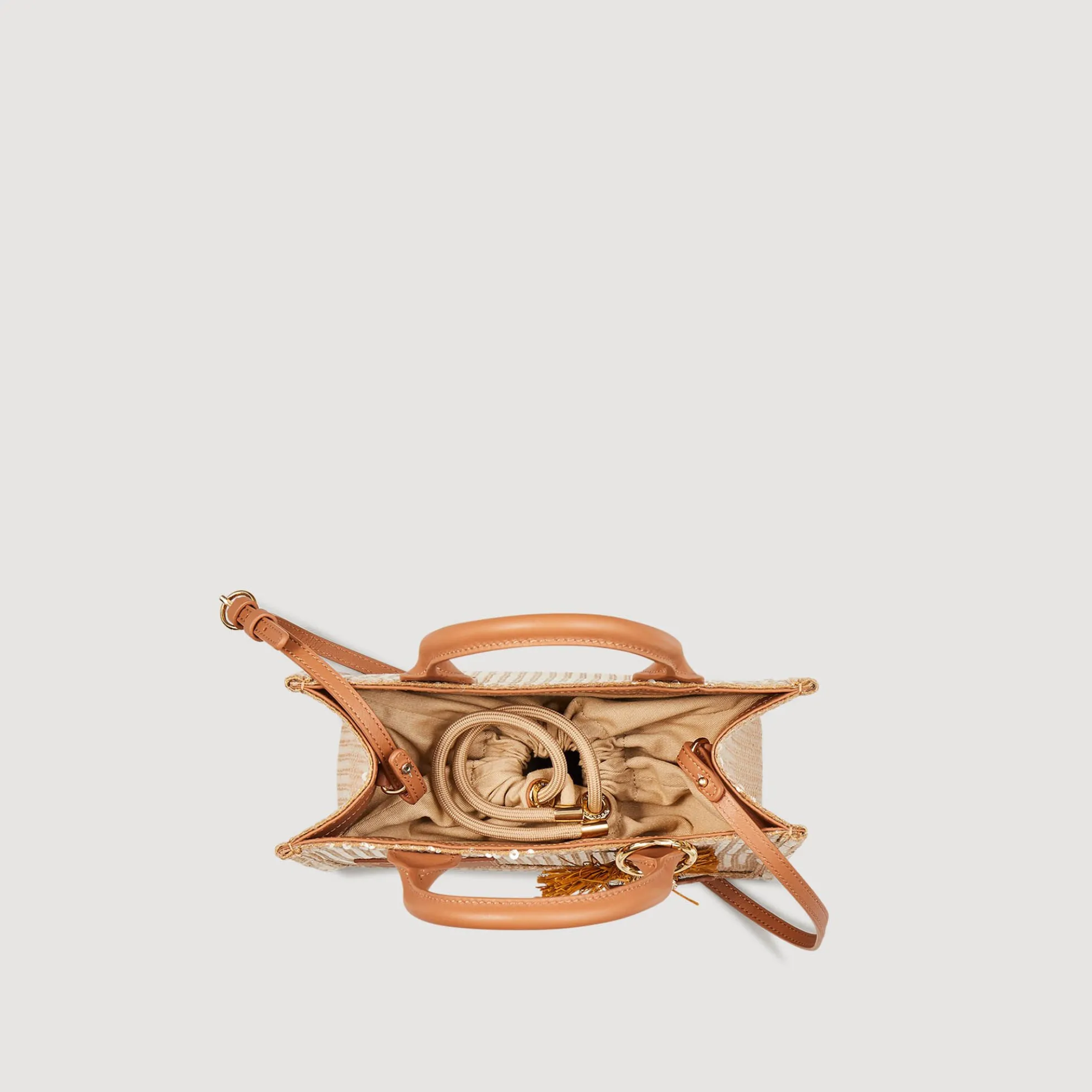 Kleine shopper van stof all-over versierd met geborduurde pailletten met een ton-sur-ton Sandro label in reliëf, een magneetsluiting, kleine hengsels, een binnenzak, een verstelbare schouderriem en een sleutelhanger.