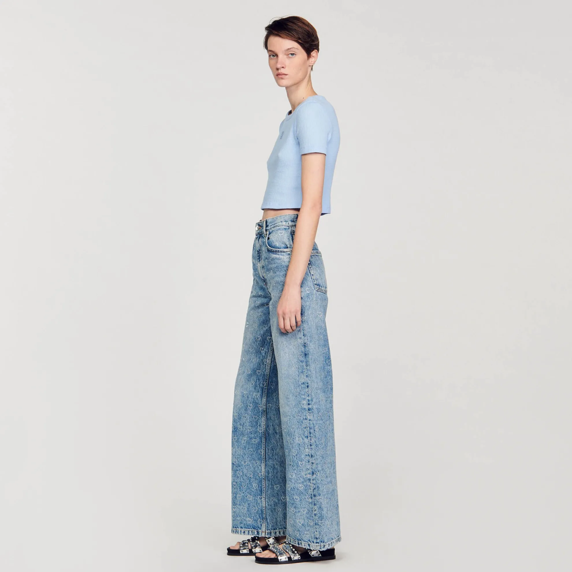 - Kort honingraat T-shirt Sandro Dames