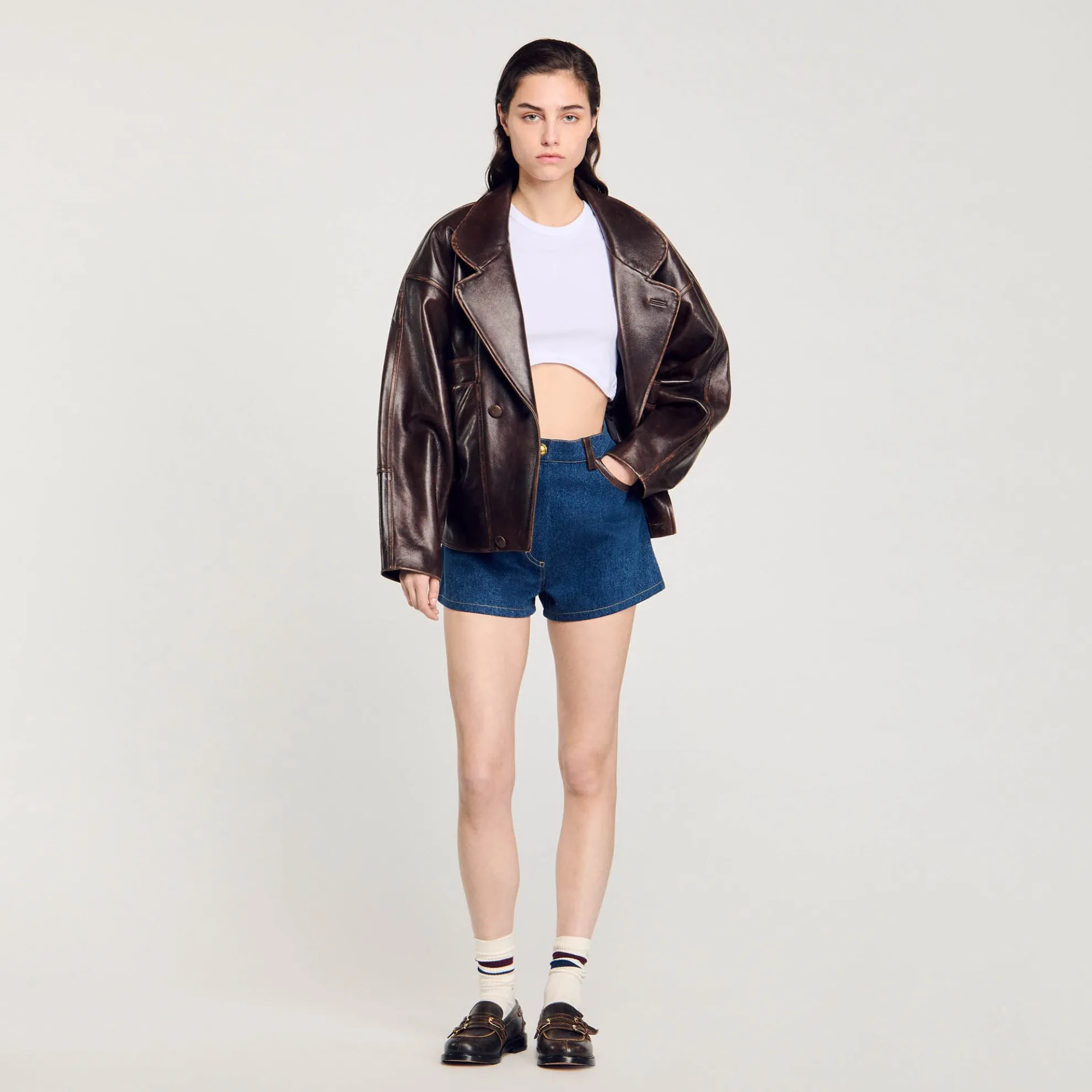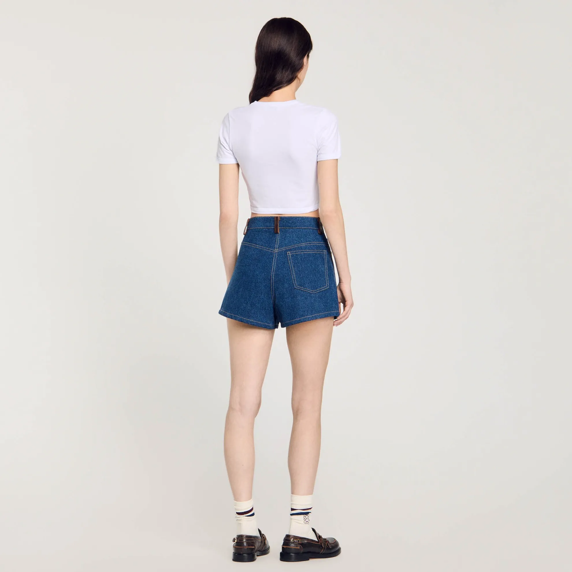 Kort T-shirt met uitsnede aan de voorkant, ronde hals, korte mouwen en een geborduurde dubbele S.