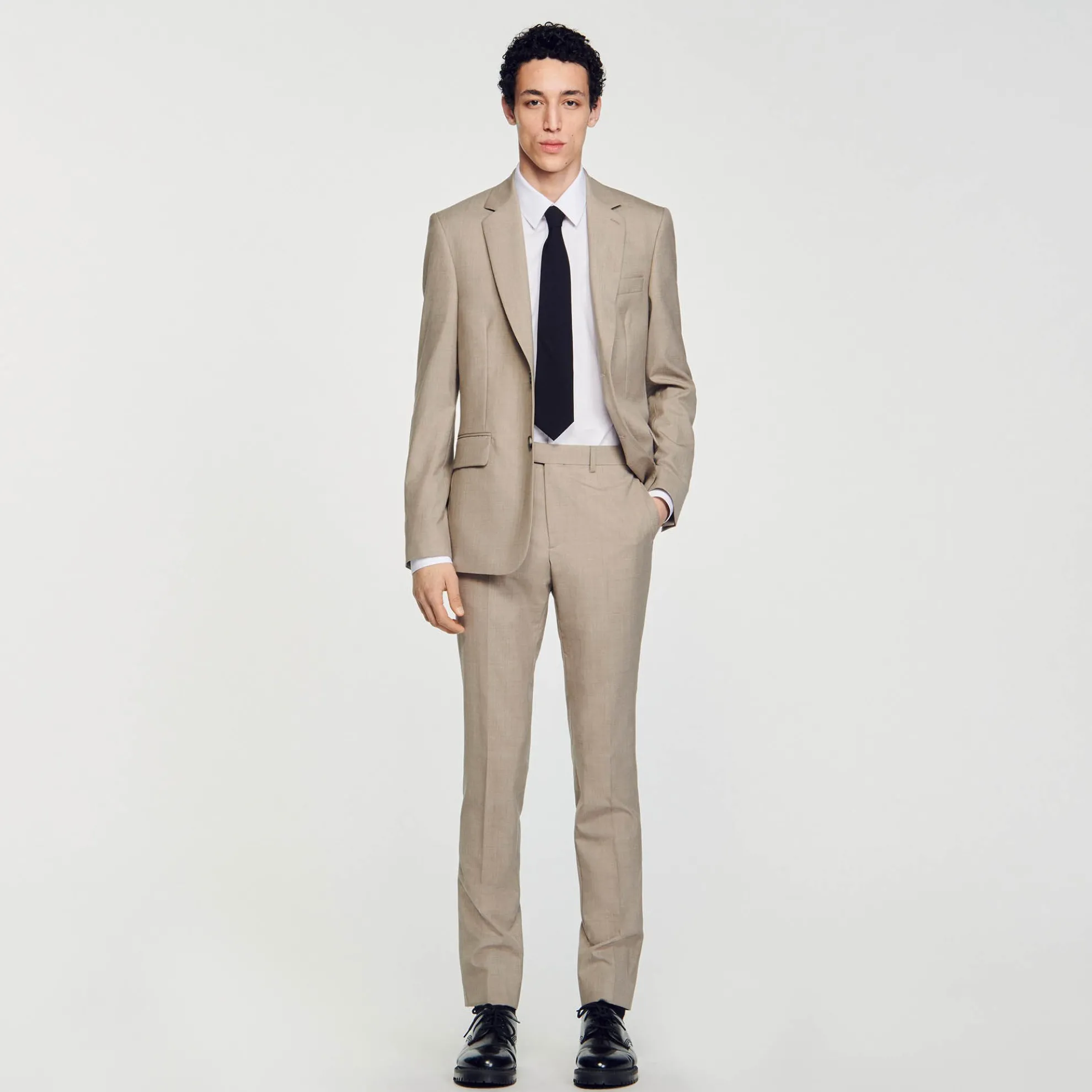 Wollen kostuumbroek met elastische tailleband met verstelkoord.