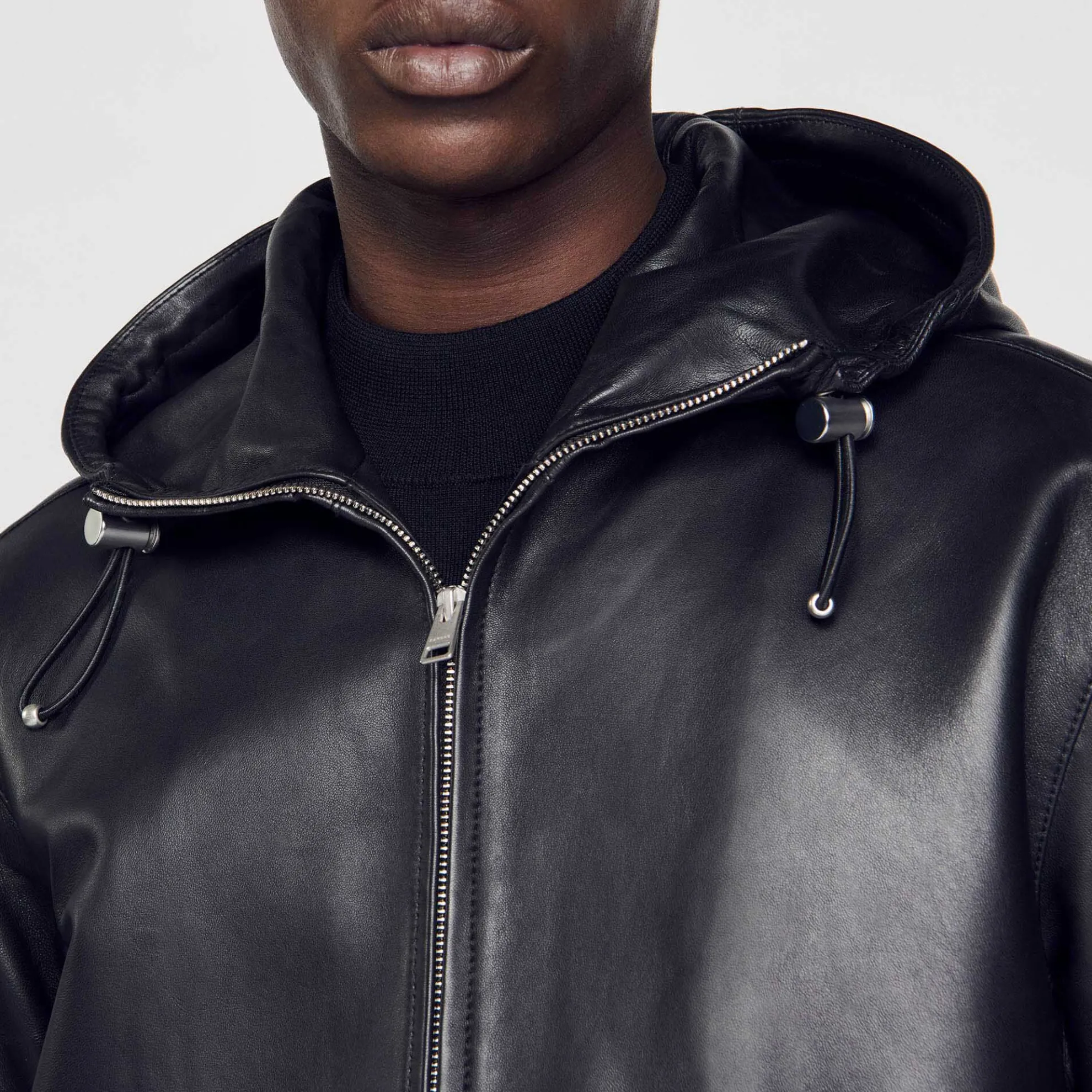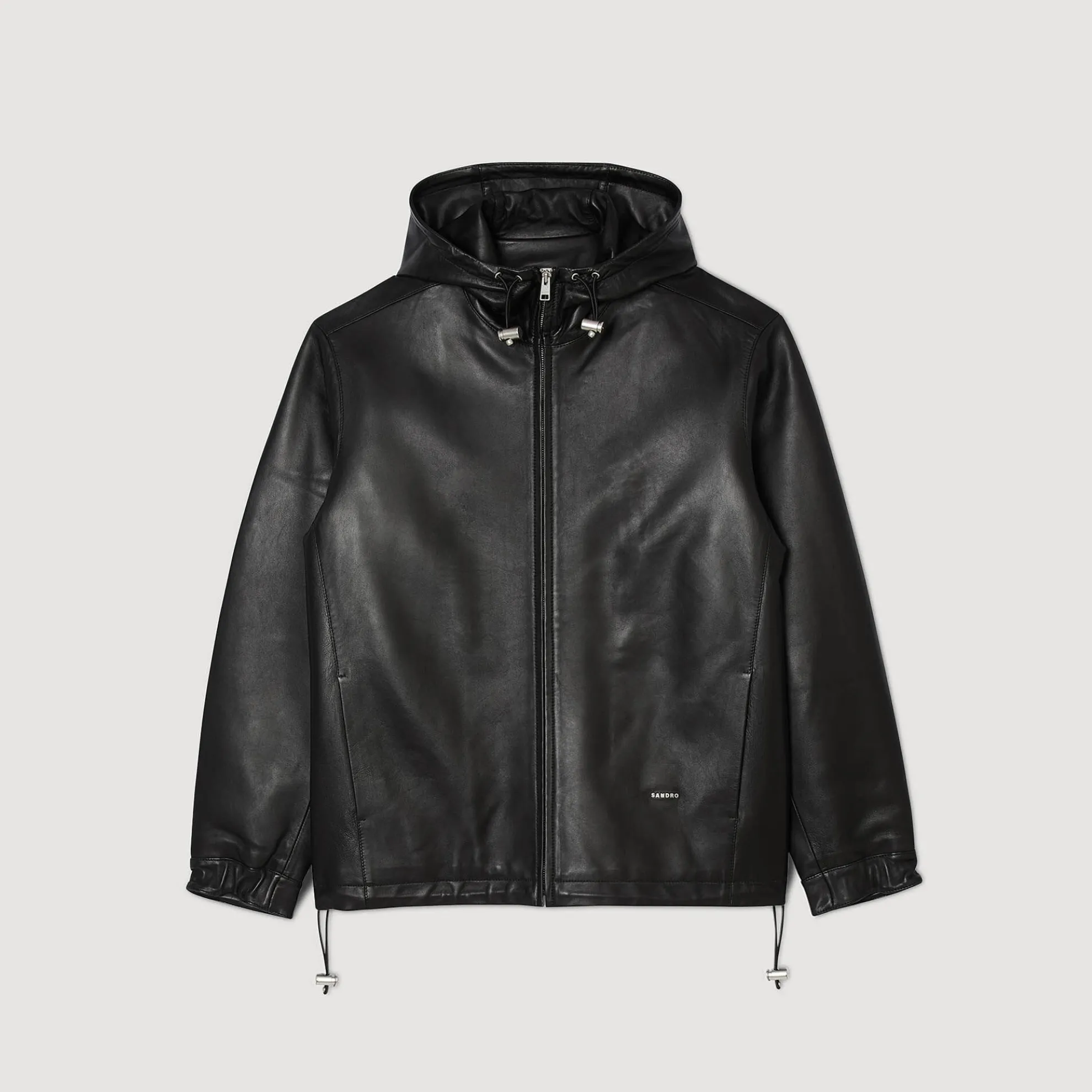 Jack van zacht lamsleer met capuchon, ritssluiting, lange mouwen en trekkoorden.