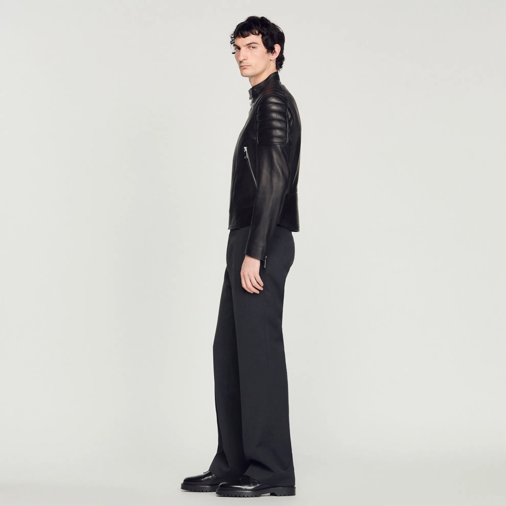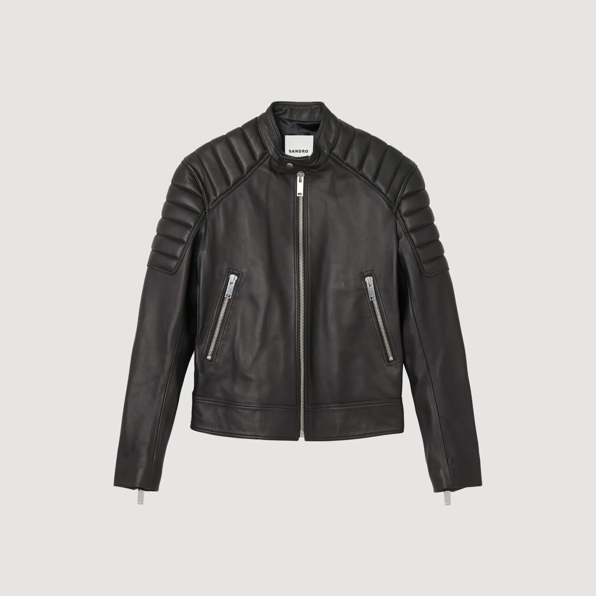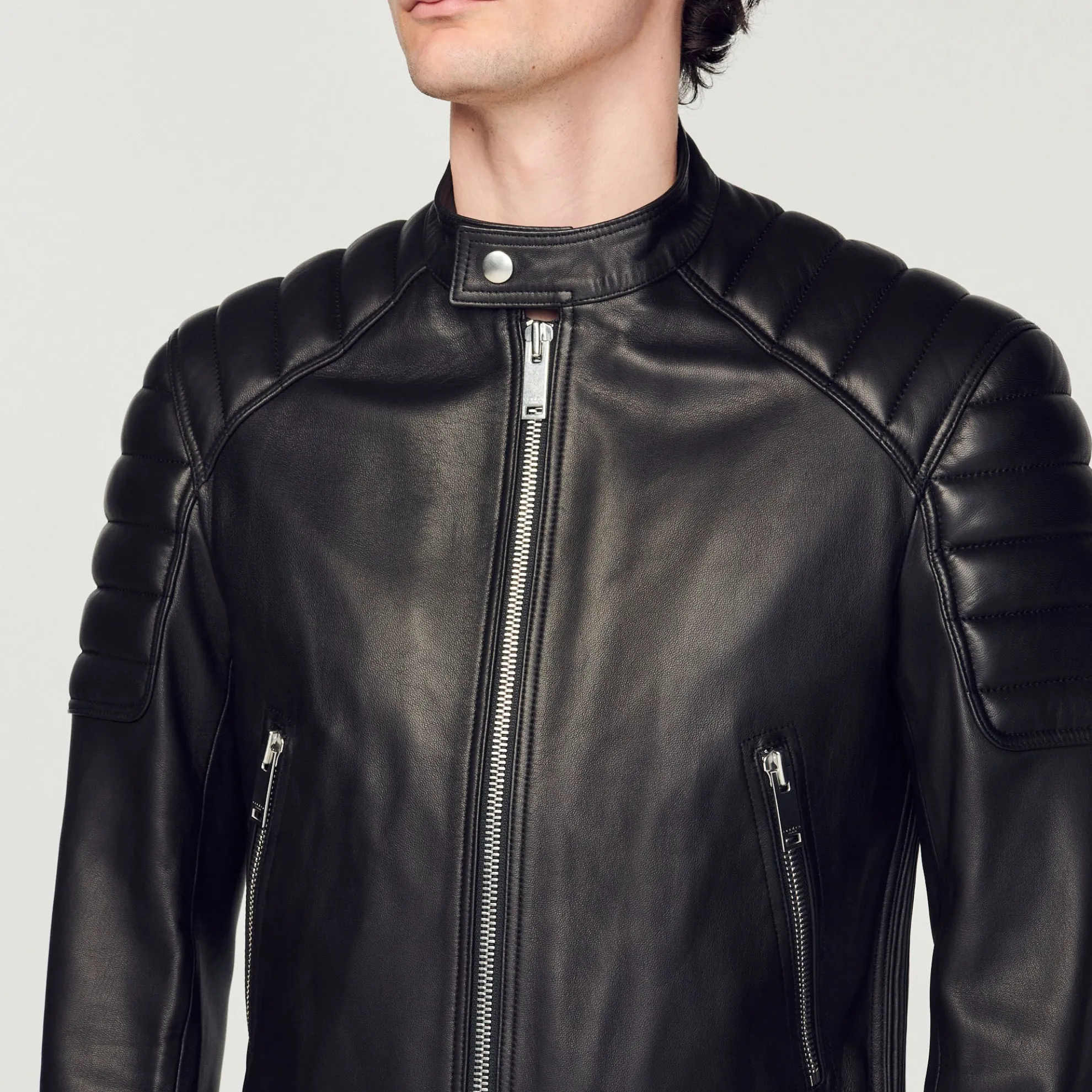 Herenjas Sandro • Lamsleer • Gewatteerd inzetstuk op de schouders • Opstaande kraag • Lange mouwen • Ritssluiting • Verticale borstzakken met rits • Binnenzakken • Manchetten met rits • Nauwsluitend Door dit product te kopen, draagt u bij tot een meer verantwoorde leerproductie via de Leather Working Group, die leerlooierijen certificeert op basis van hun milieuprestaties (water, energie, afval, etc.).