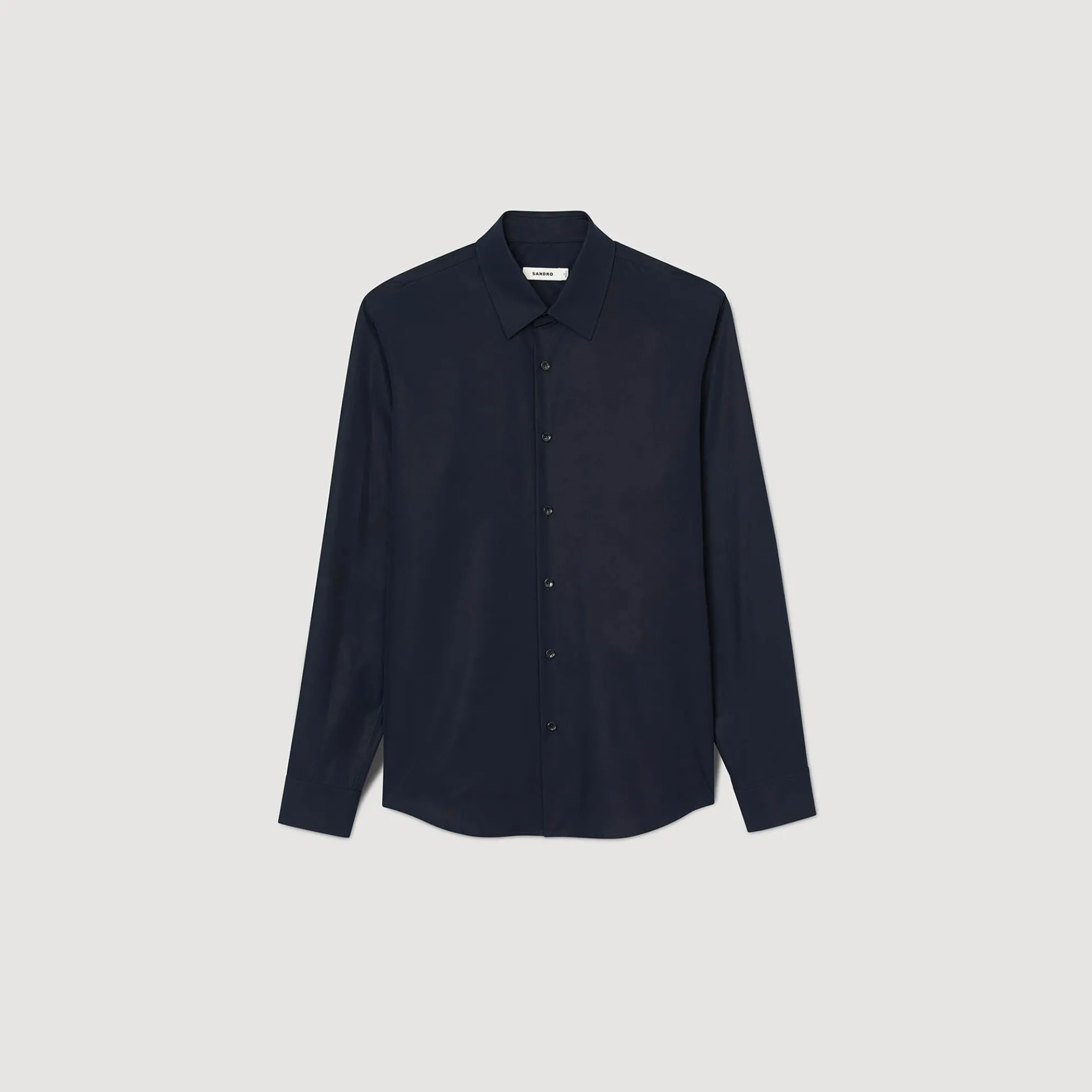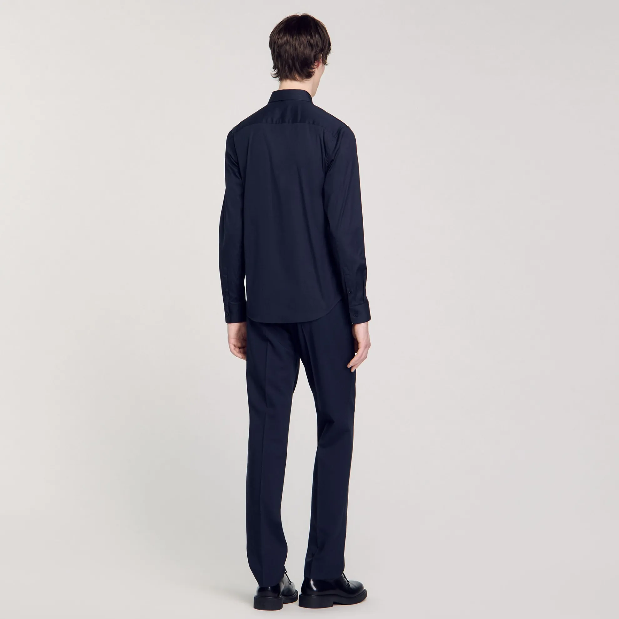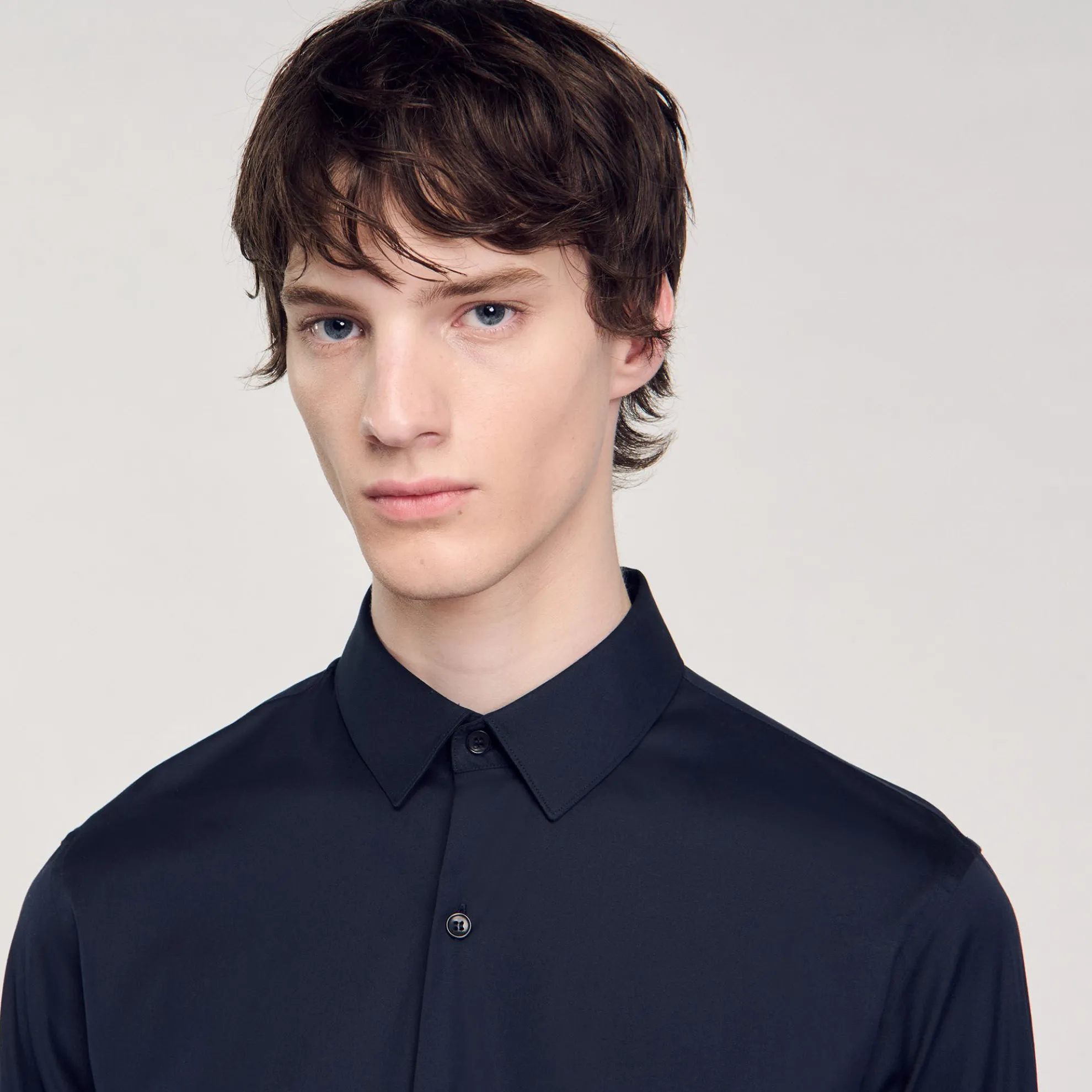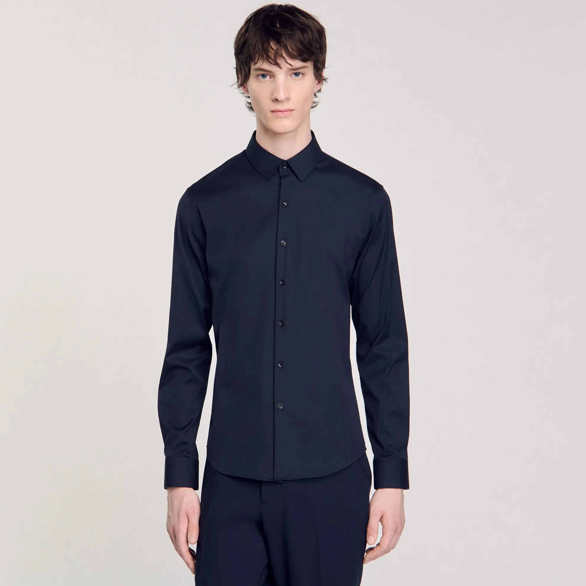 Nauwsluitend overhemd van stretchkatoen met lange mouwen met manchetten met knopen, een klassieke kraag en een knoopsluiting.