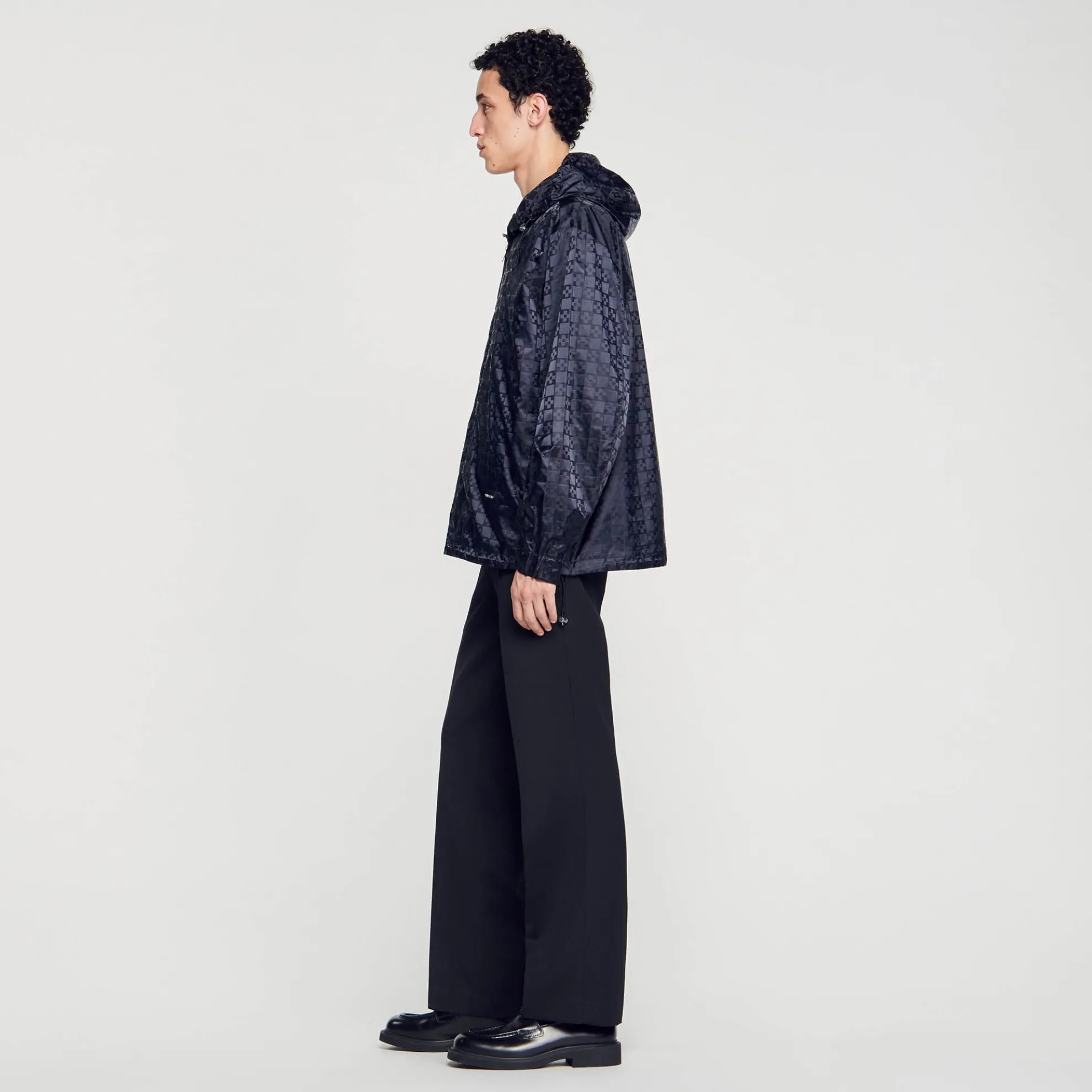 Jack gemaakt van een technische stof met Square Cross print, ritssluiting, capuchon met trekkoord en stoppers en SANDRO plaatje aan de onderkant.