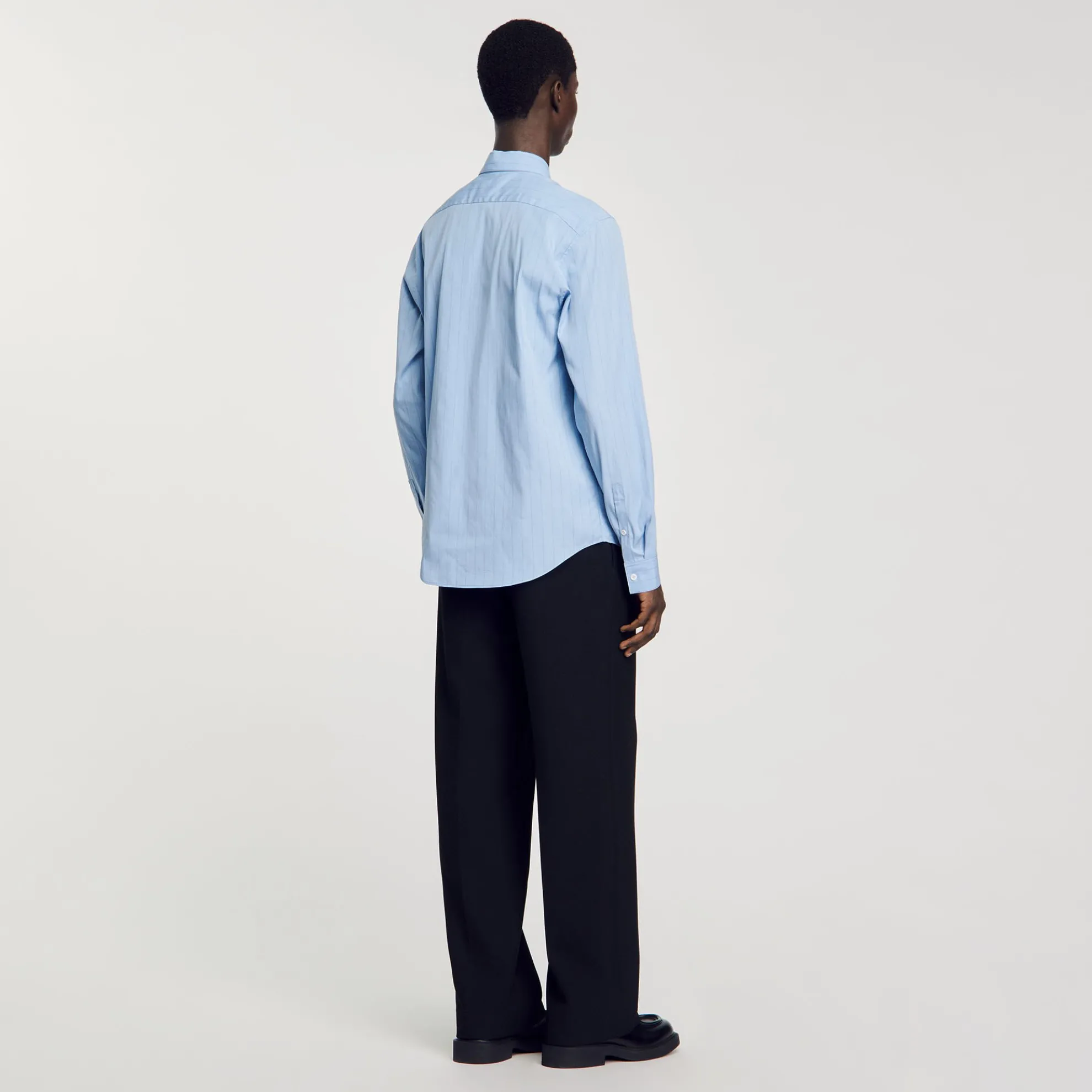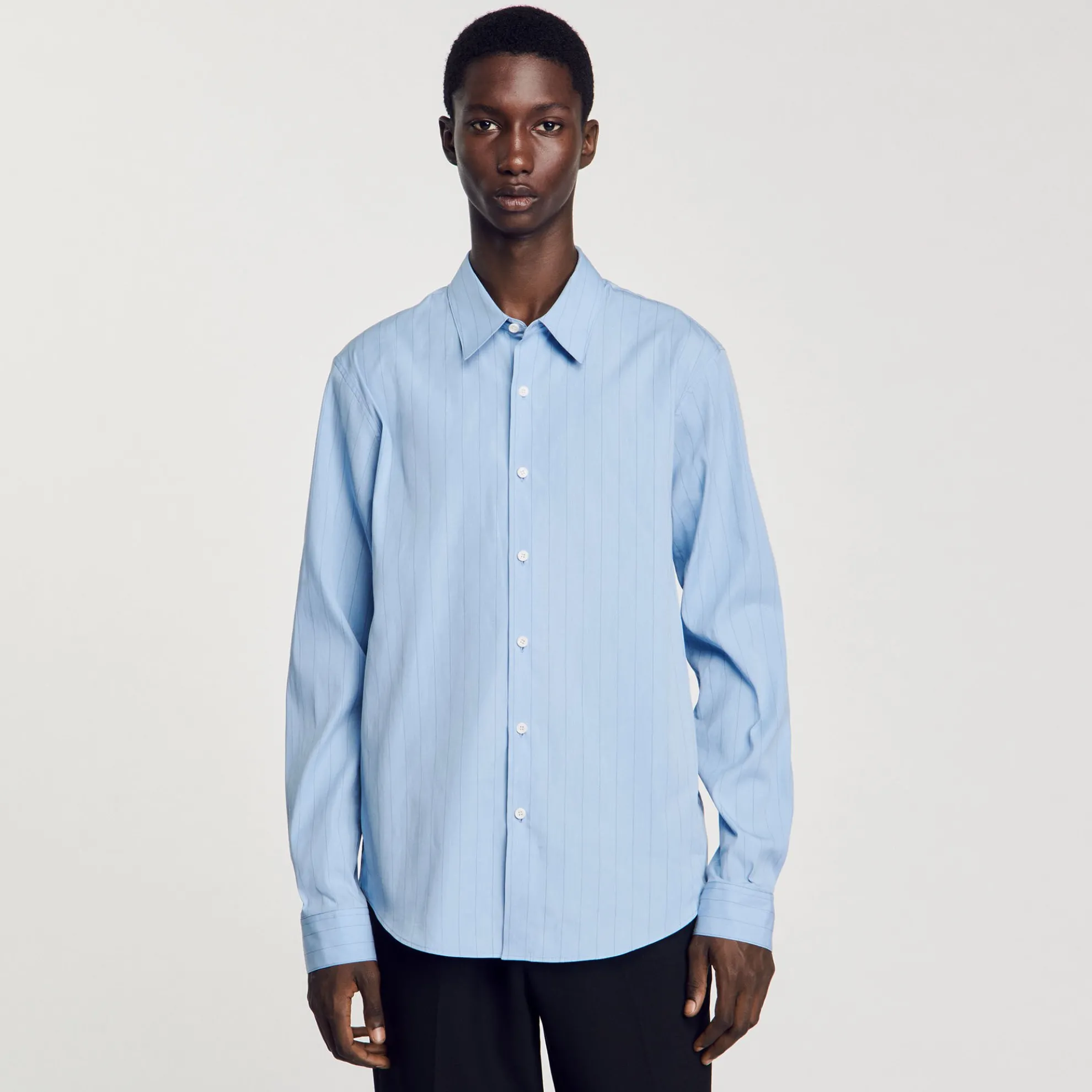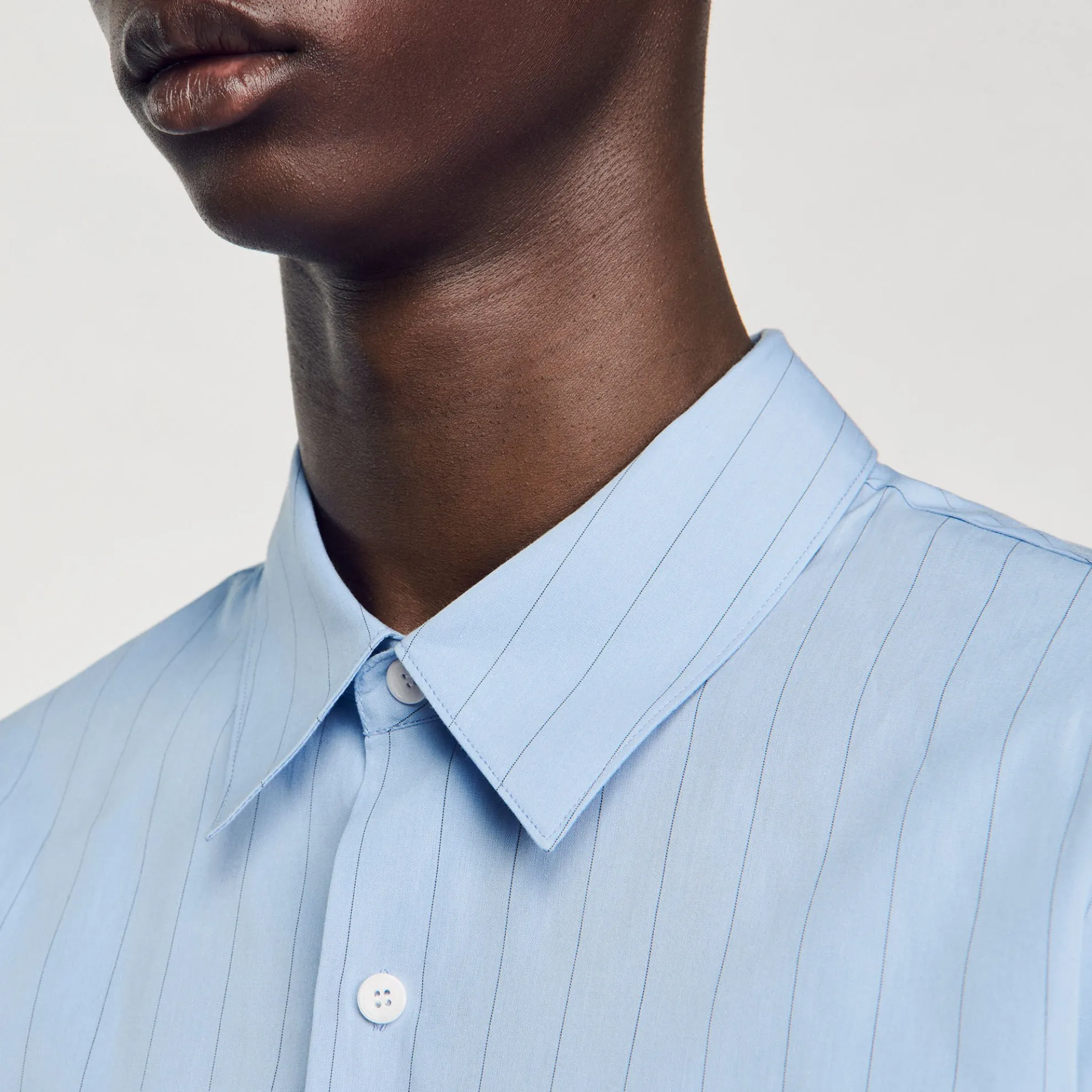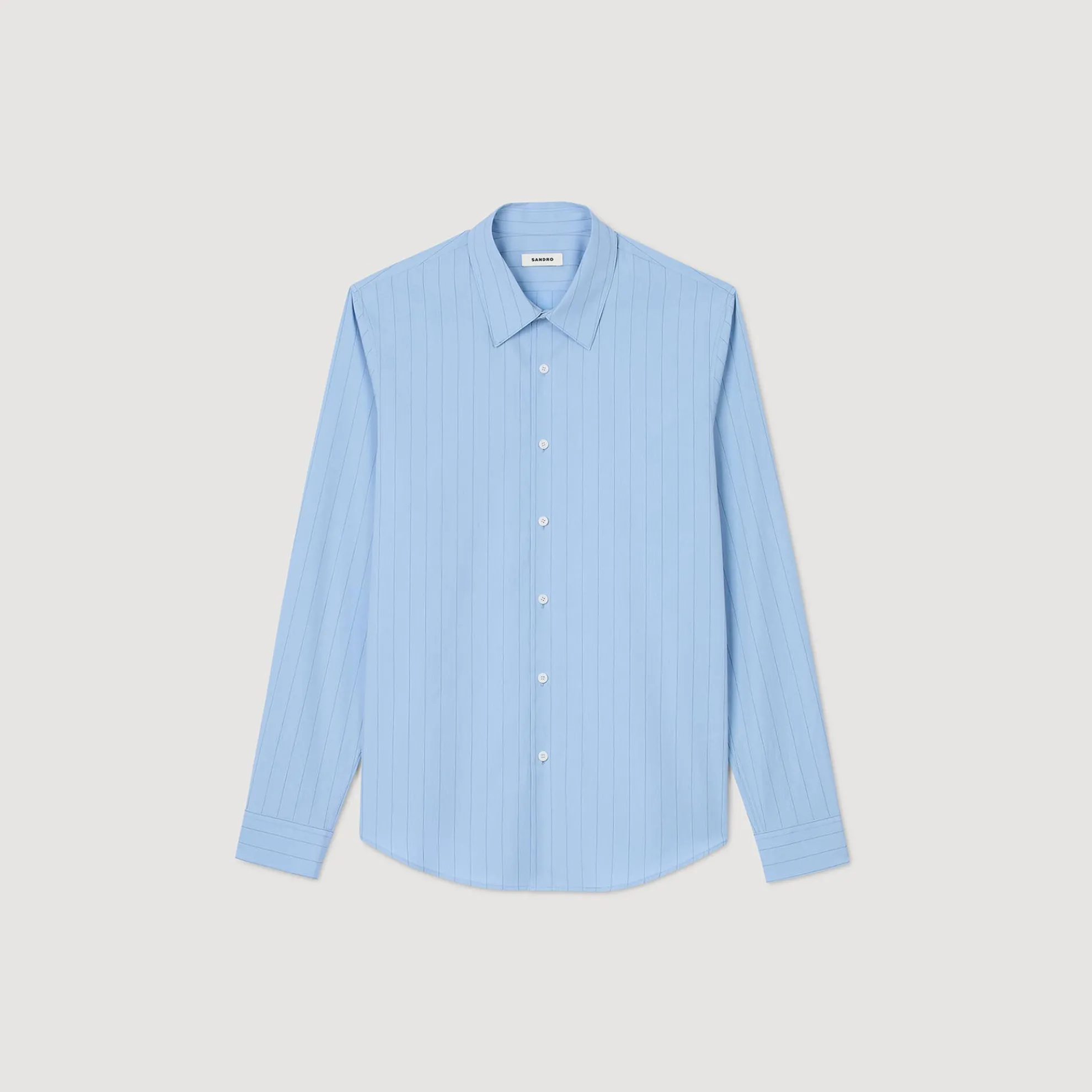 Recht overhemd met dunne contrasterende strepen, een klassieke kraag, lange mouwen met knoopmanchetten en een langere afgeronde onderkant.