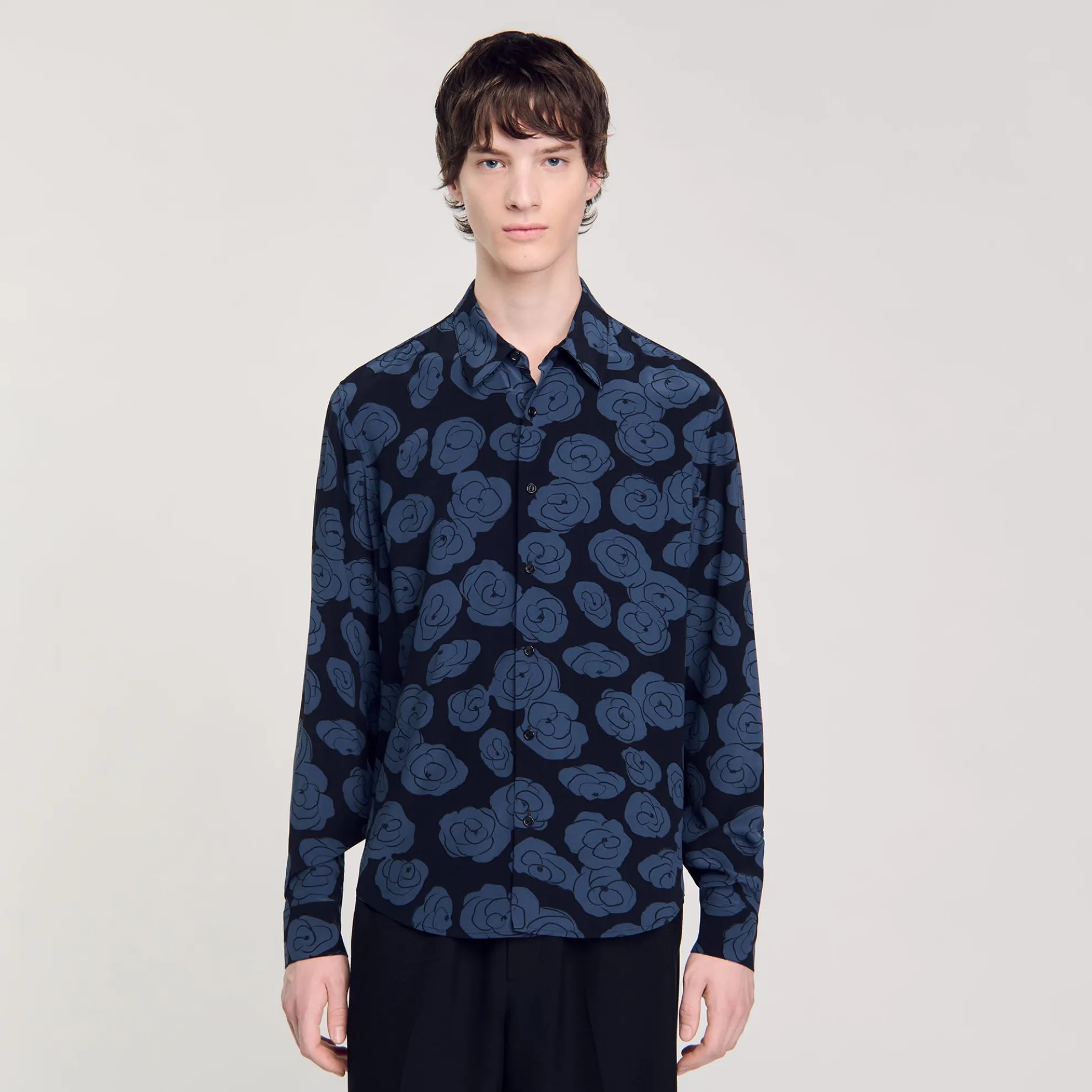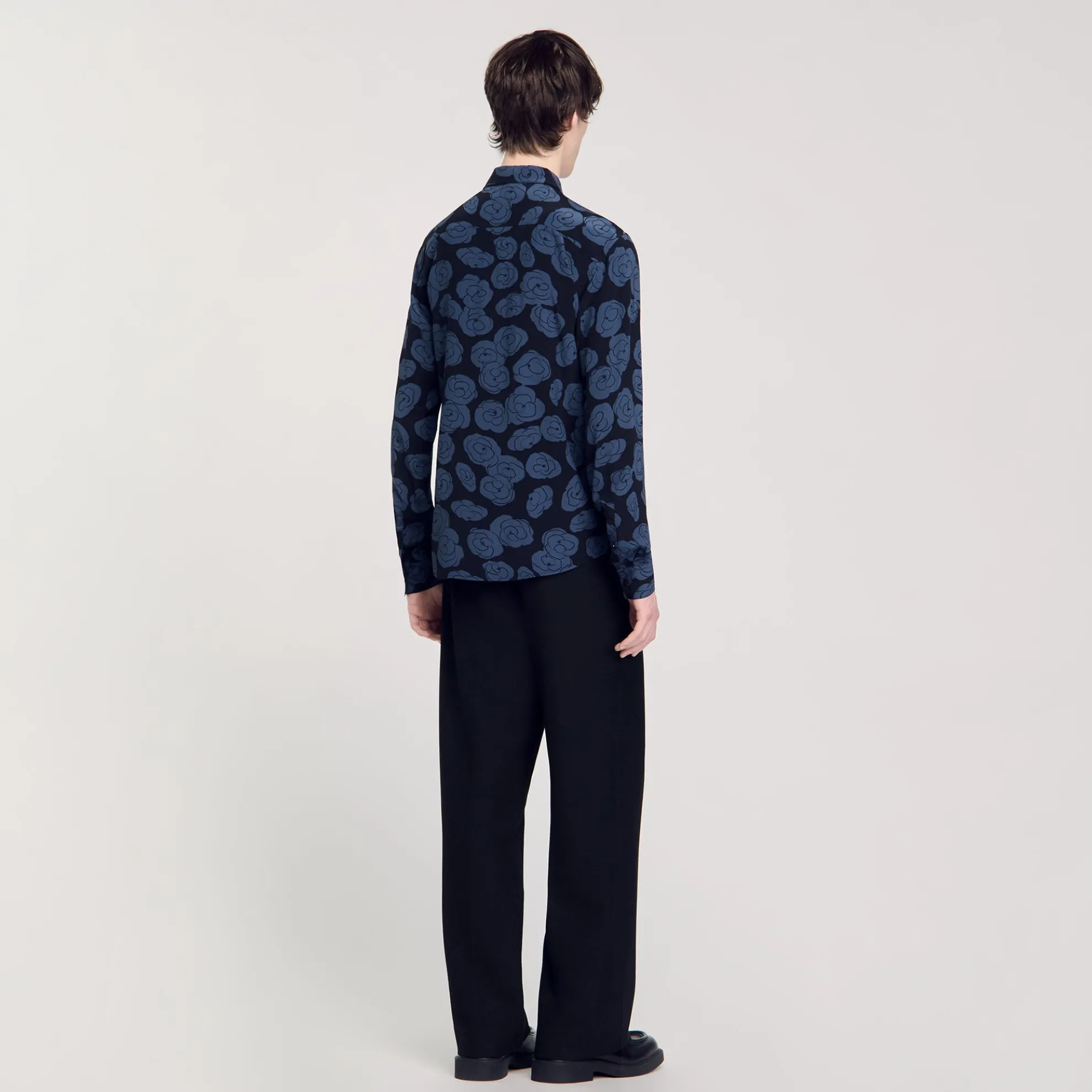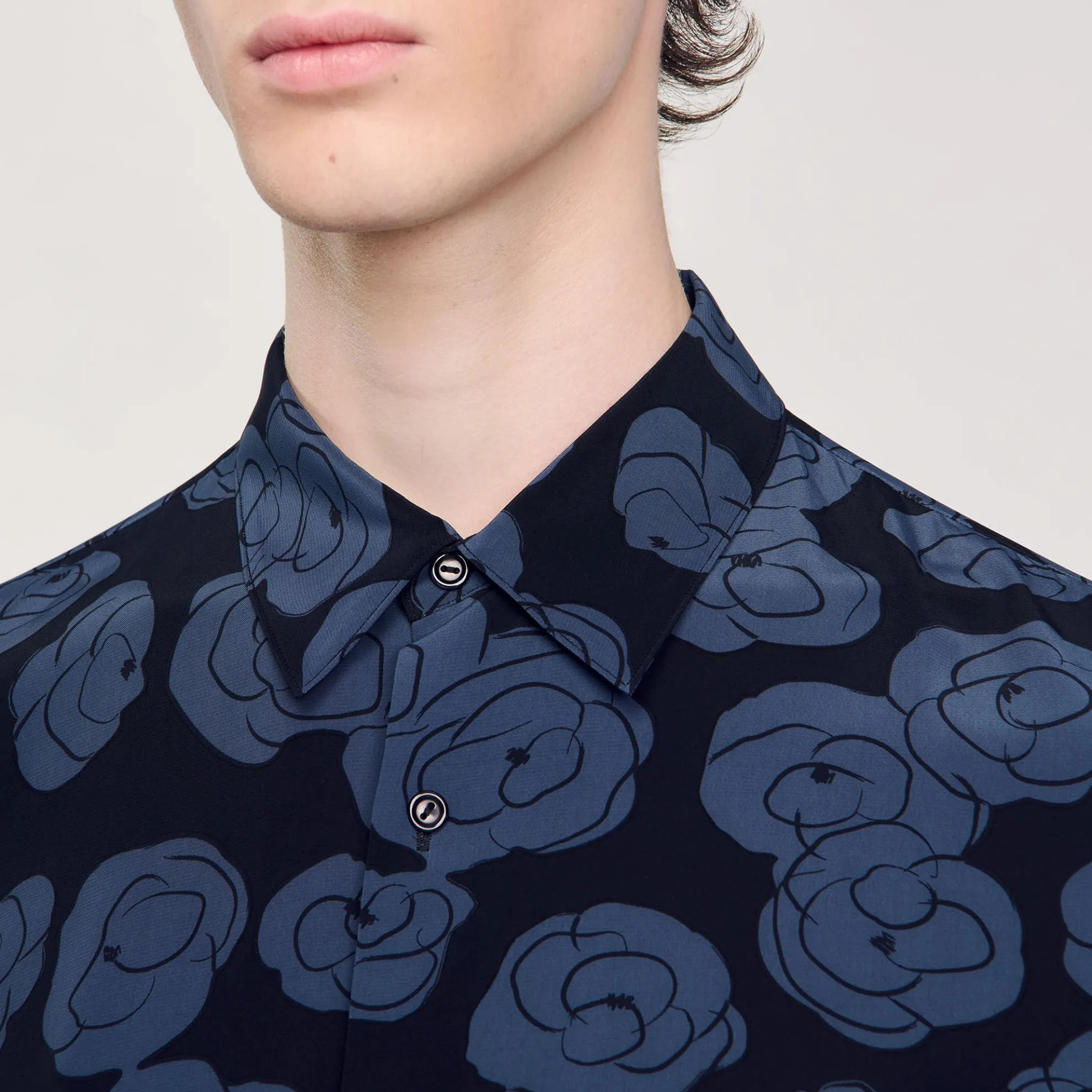 Overhemd met knoopsluiting, klassieke kraag, lange mouwen en camelia print.