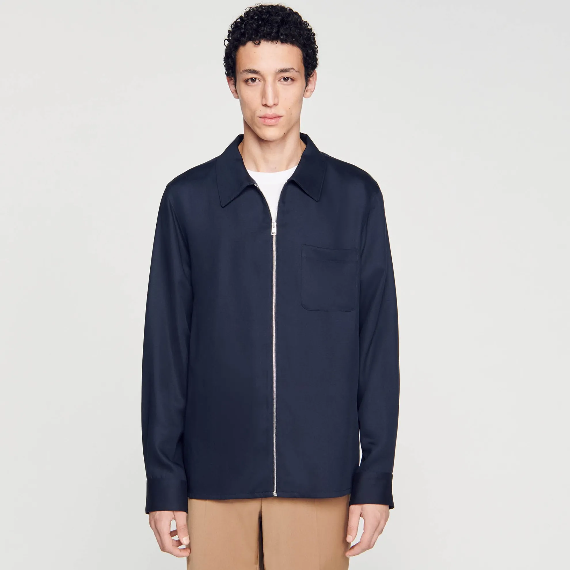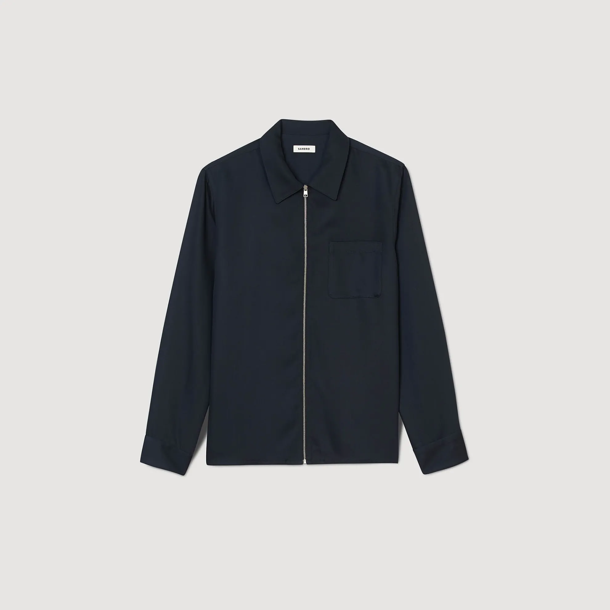 Soepelvallend overhemd met lange mouwen, klassieke kraag en ritssluiting.