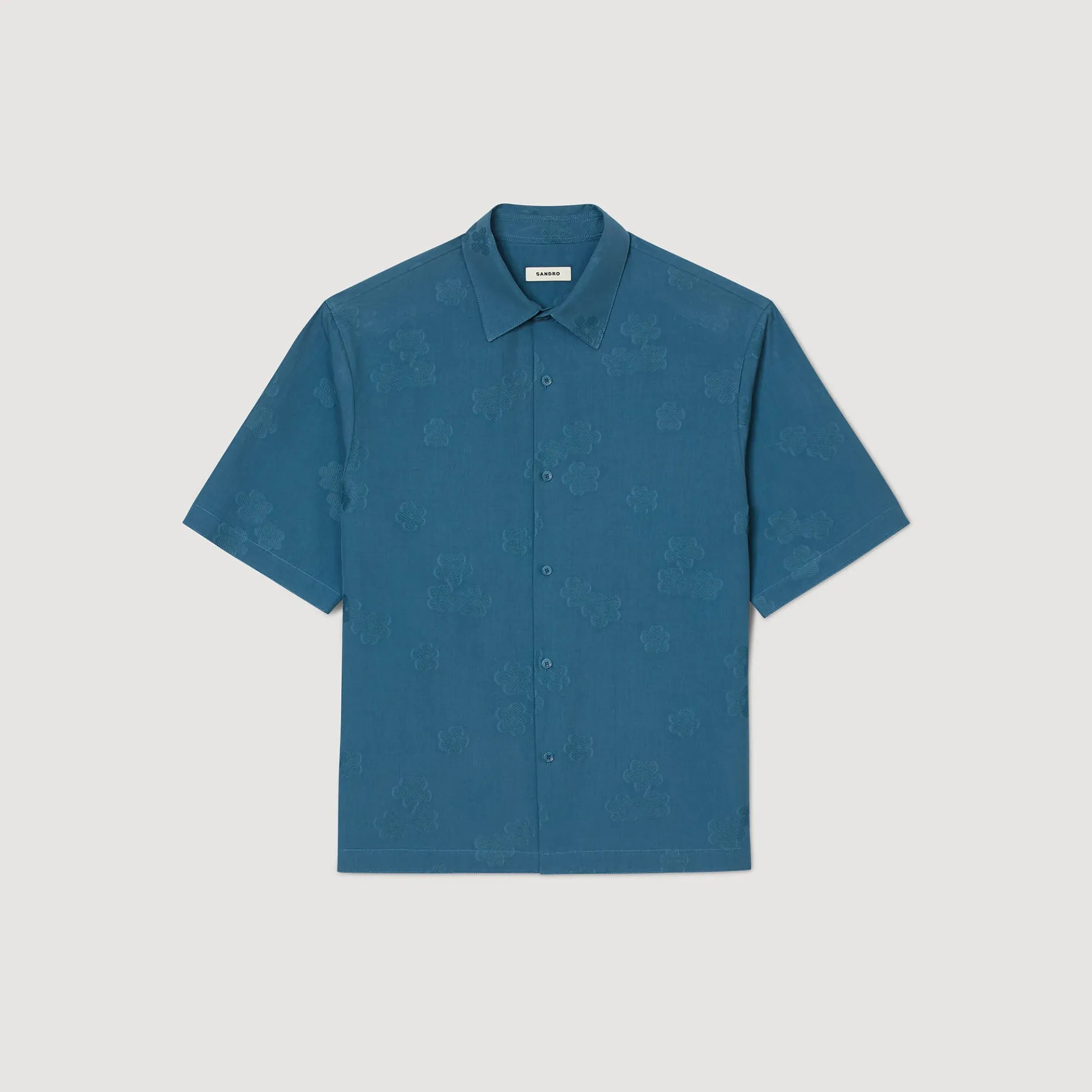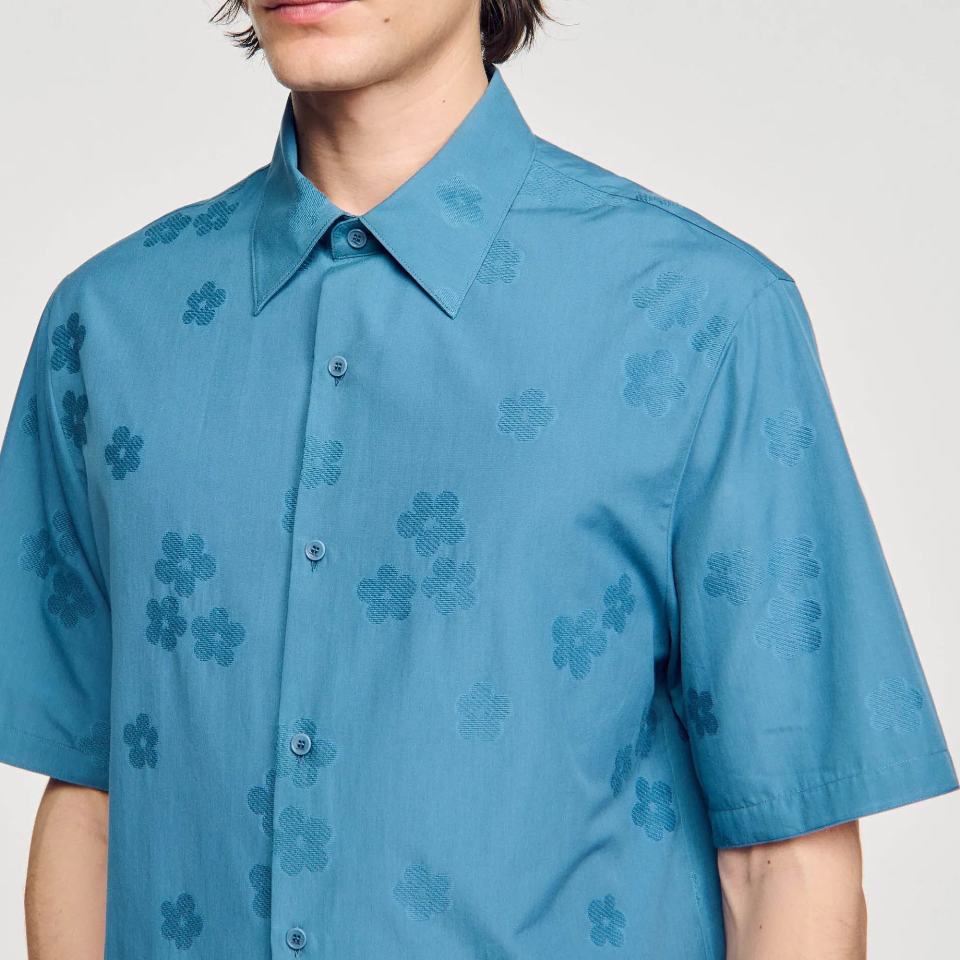 Oversized katoenen overhemd met jacquard met bloemmotief, overhemdkraag, korte mouwen en knoopsluiting.