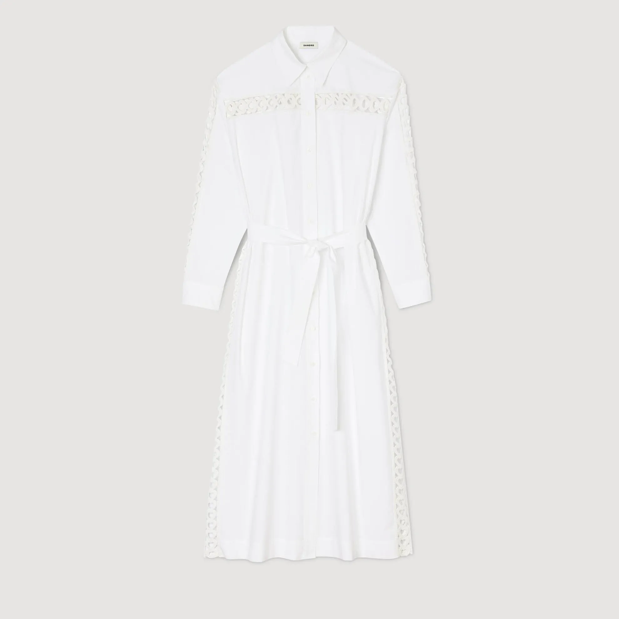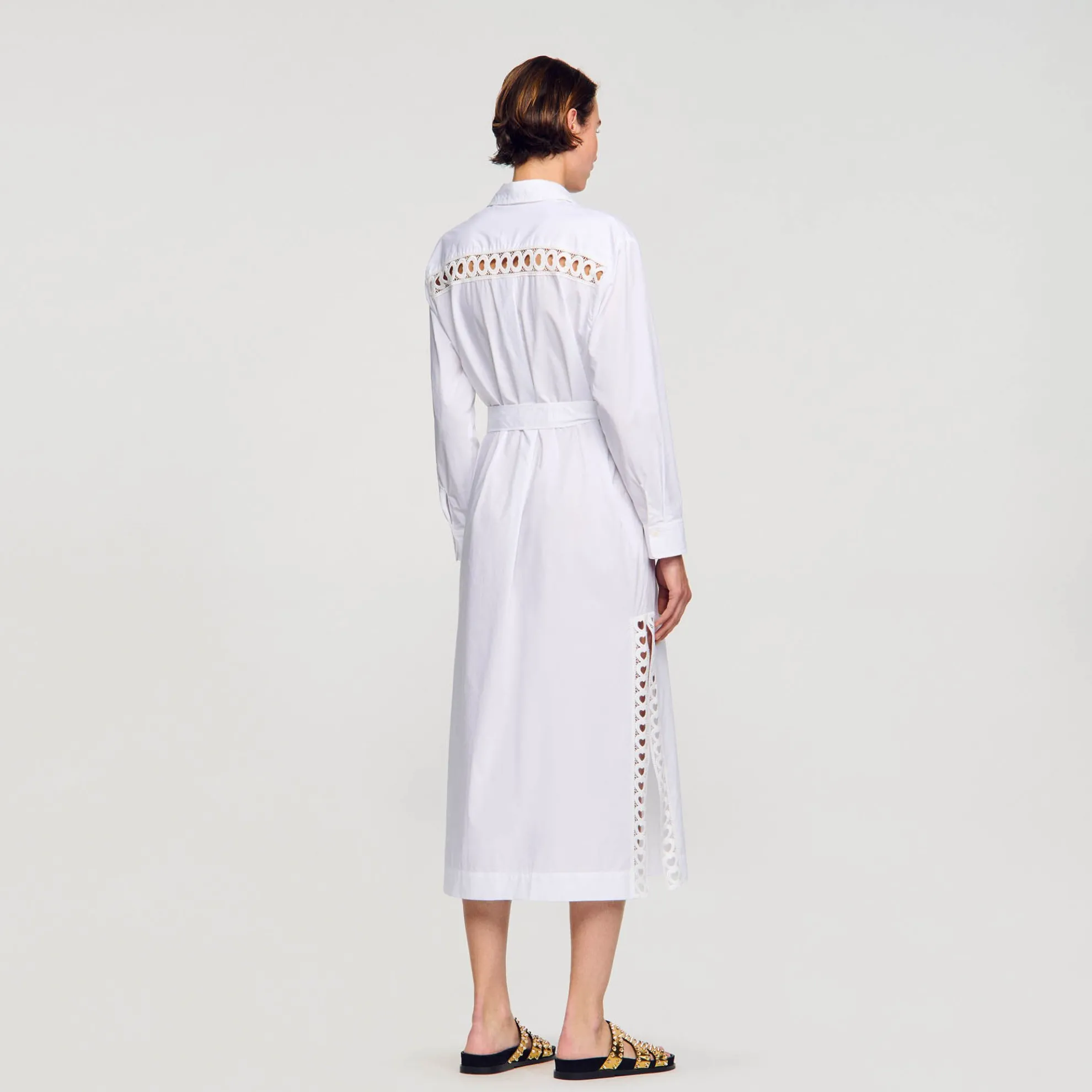 Lange overhemdjurk van katoen met ingevlochten ton-sur-ton hartjes, een overhemdkraag, knoopsluiting, ton-sur-ton strikceintuur, lange mouwen en zijsplitten.