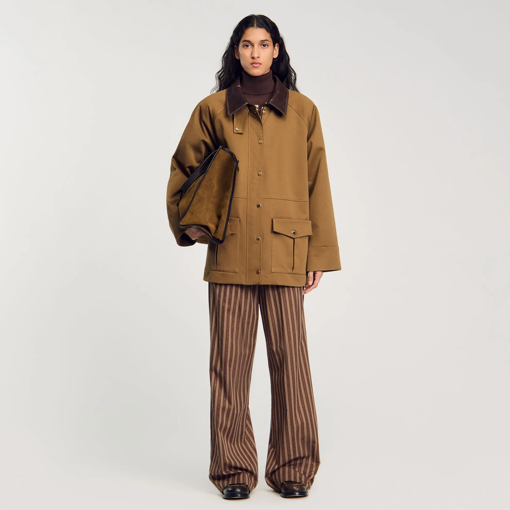 Wijde, rechte pantalon met contrasterende strepen, ton-sur-ton stras en een elastische tailleband met trekkoord.