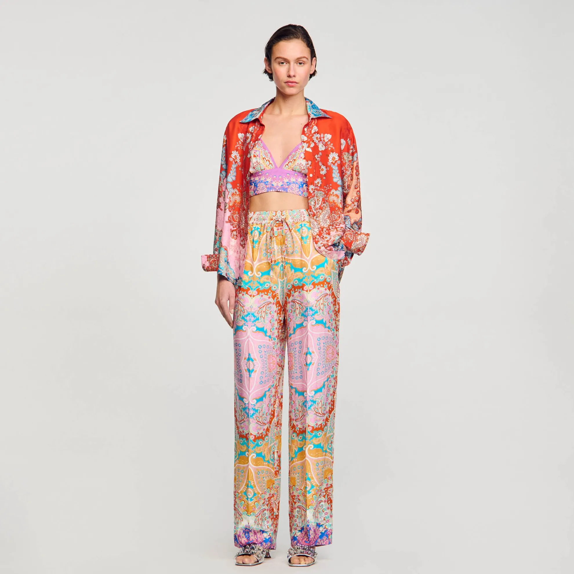 Wijdvallende, soepele pantalon met elastische tailleband en bloemenprint.