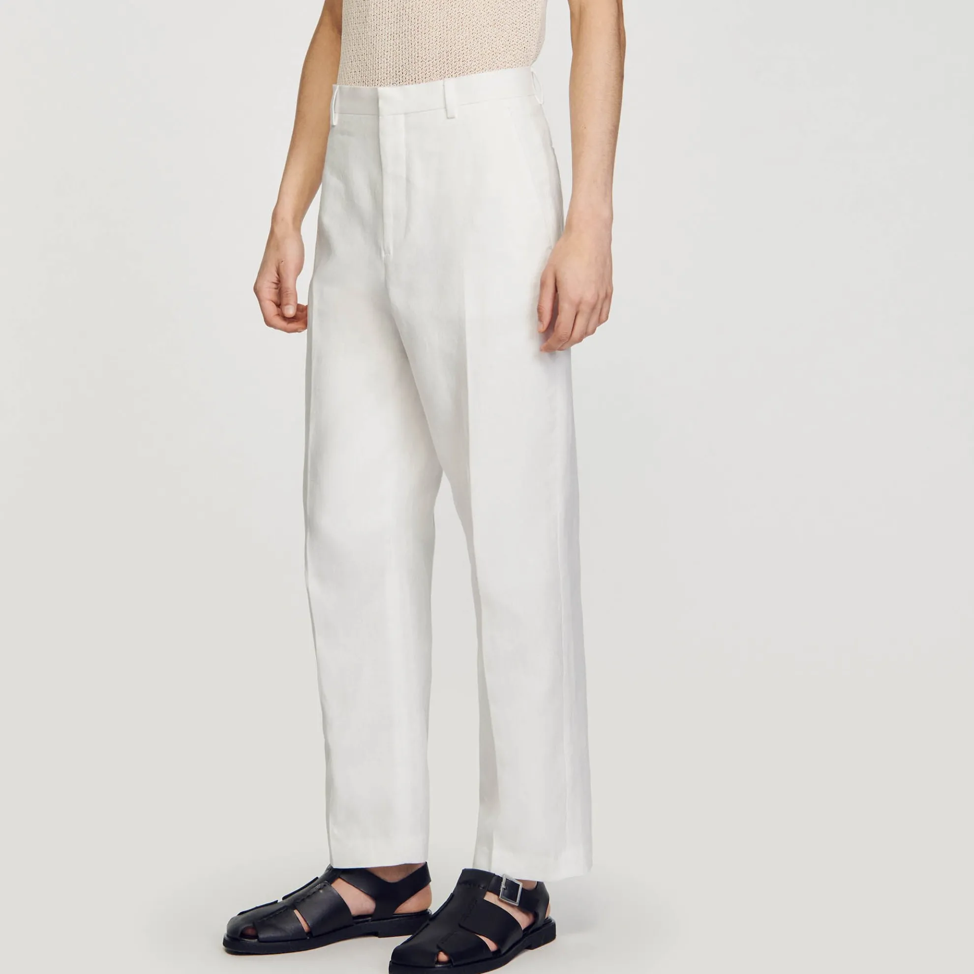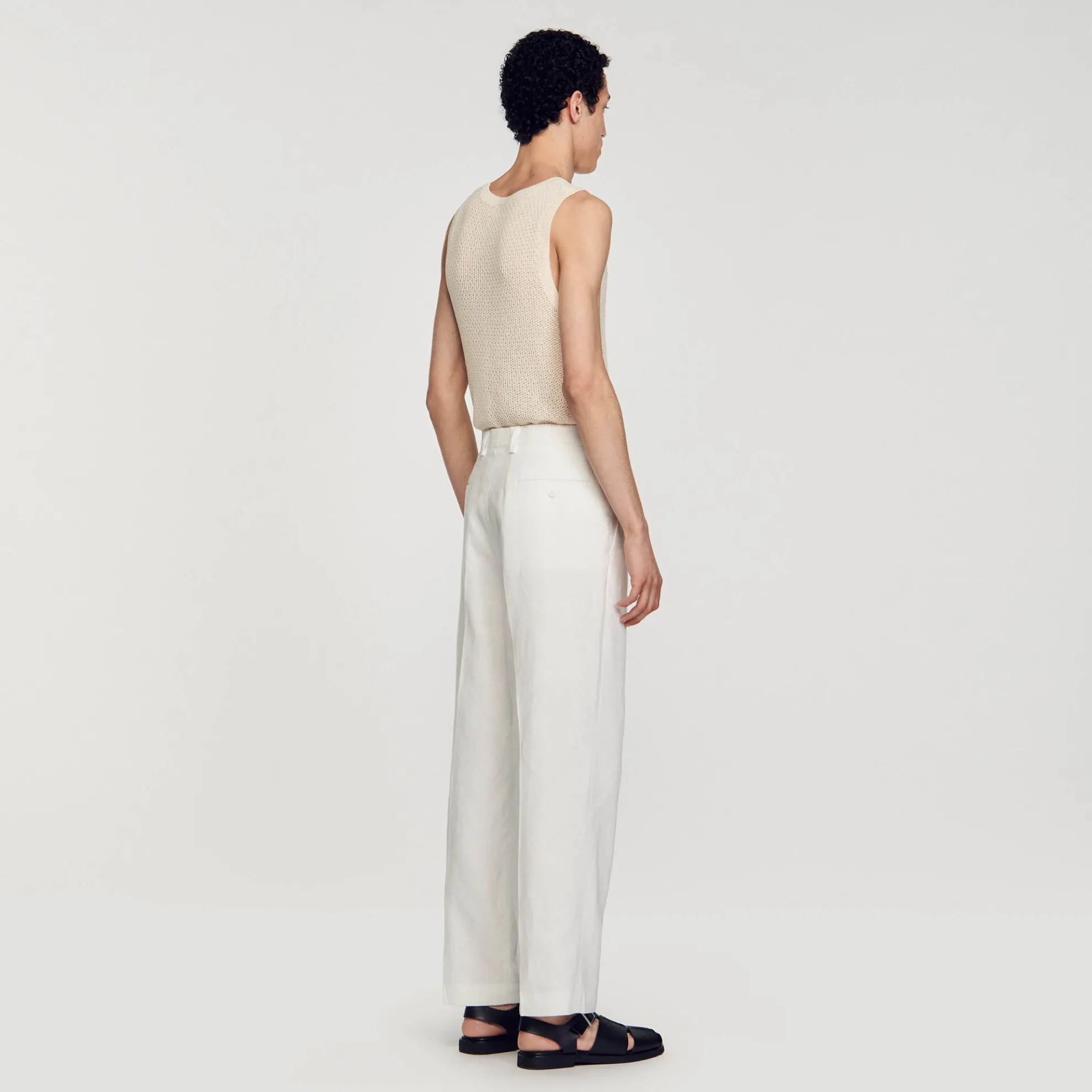 Wijdvallende pantalon van linnen en katoen met zij- en achterzakken.
