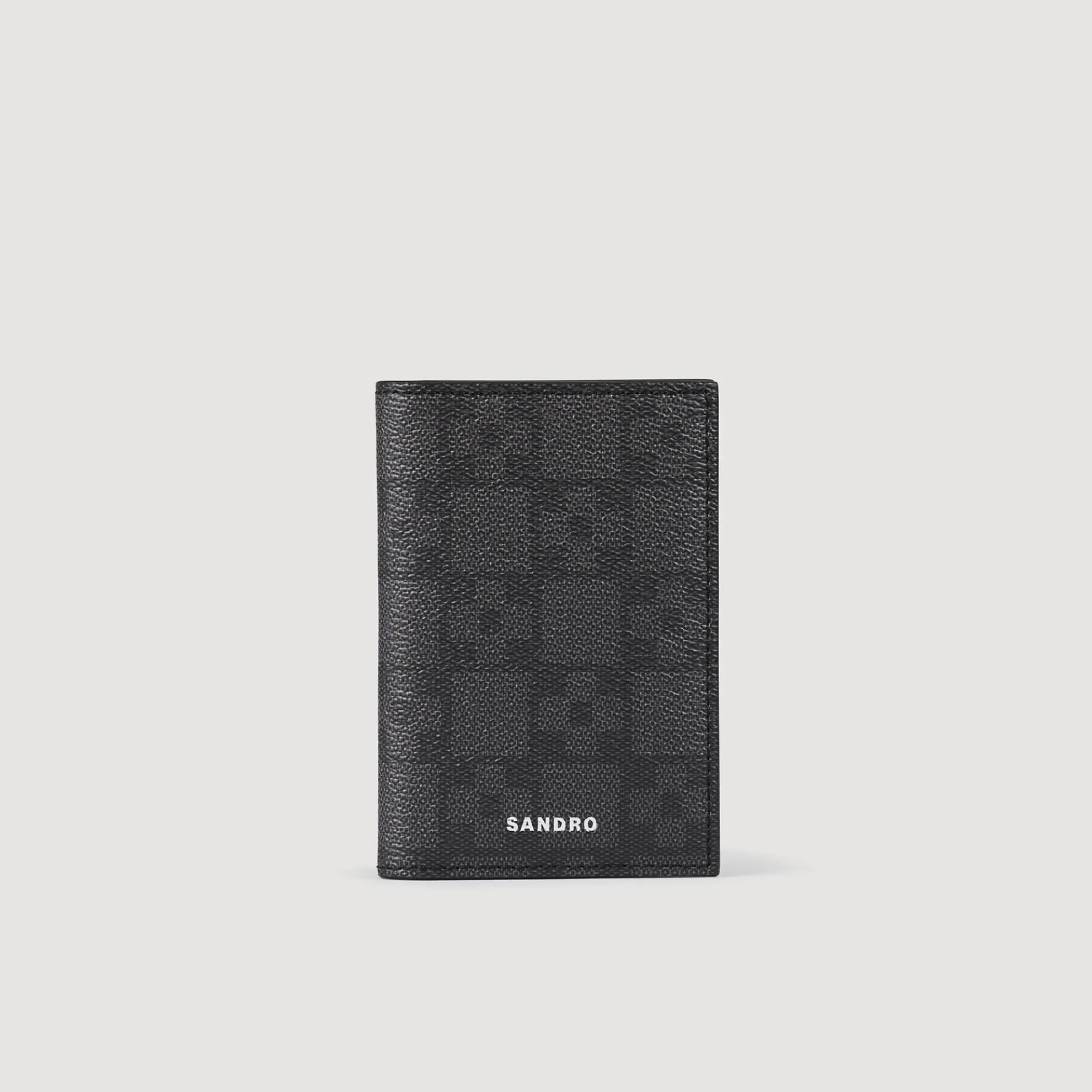 Verticale pasjeshouder gemaakt van canvas met Square Cross print, zilveren SANDRO logo in reliëf en kaartsleuven.