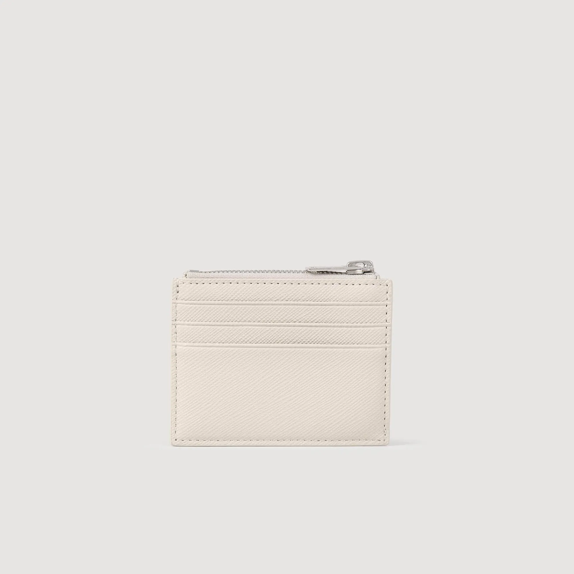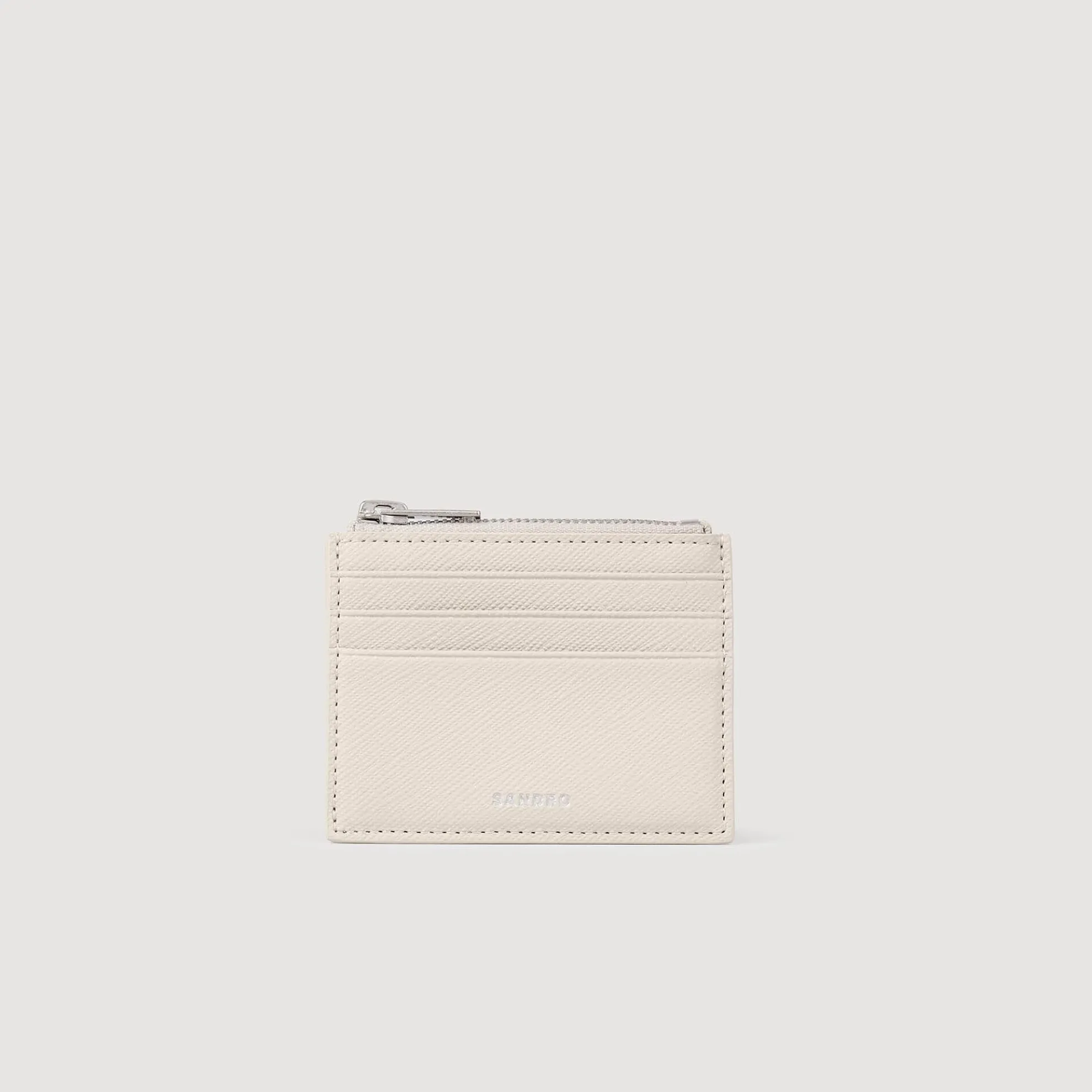 Pasjeshouder van synthetisch leer met Saffiano motief en een kenmerkend SANDRO-logo in reliëf, 3 kaartsleuven voor pasjes en een ritsvak.