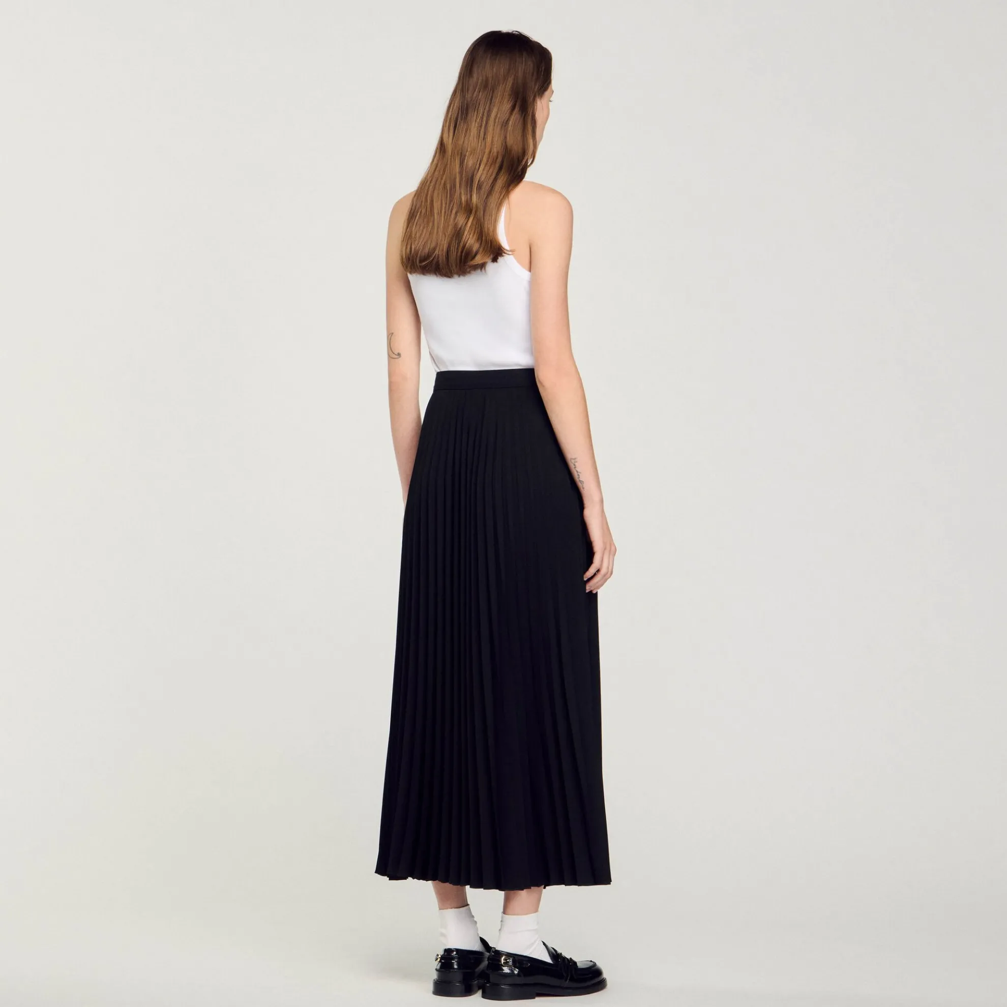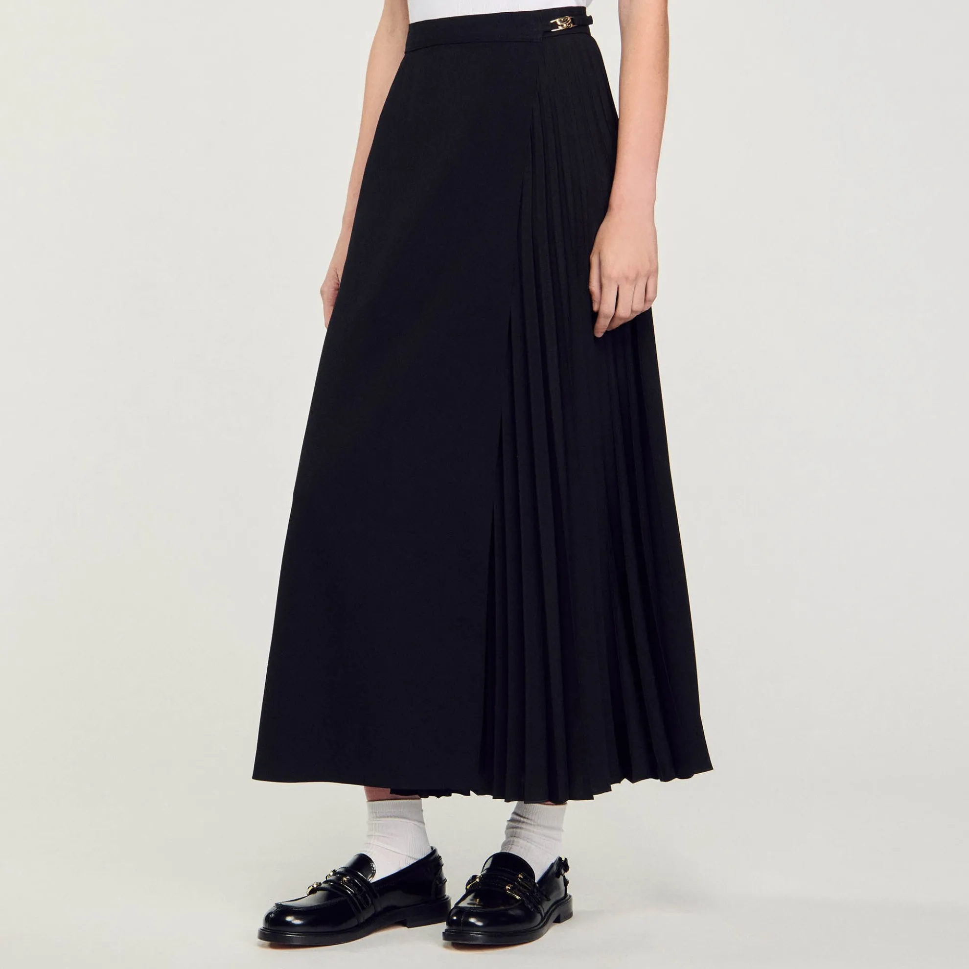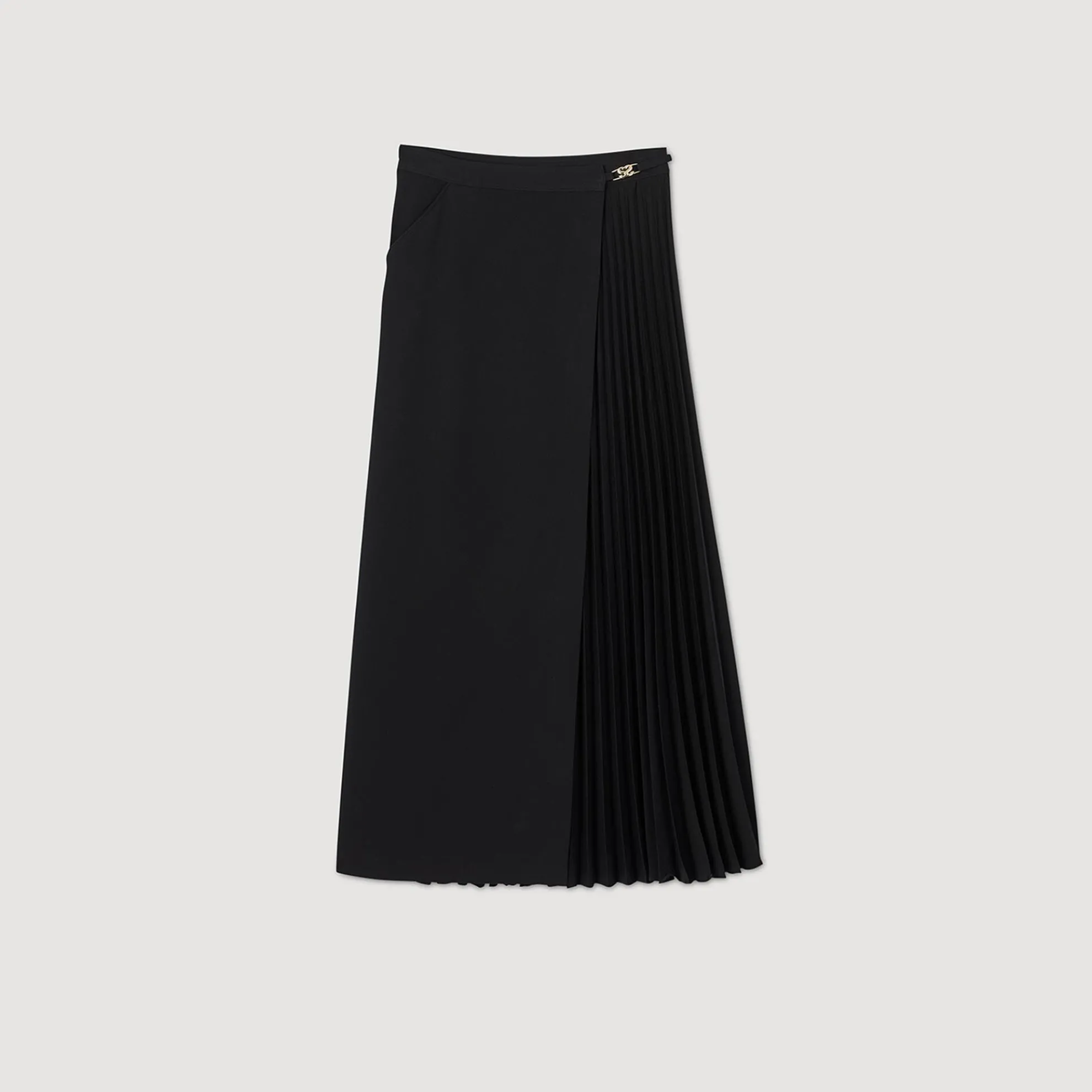 Lange gewikkelde plissérok met mooie schakels aan de zijkant van de tailleband.