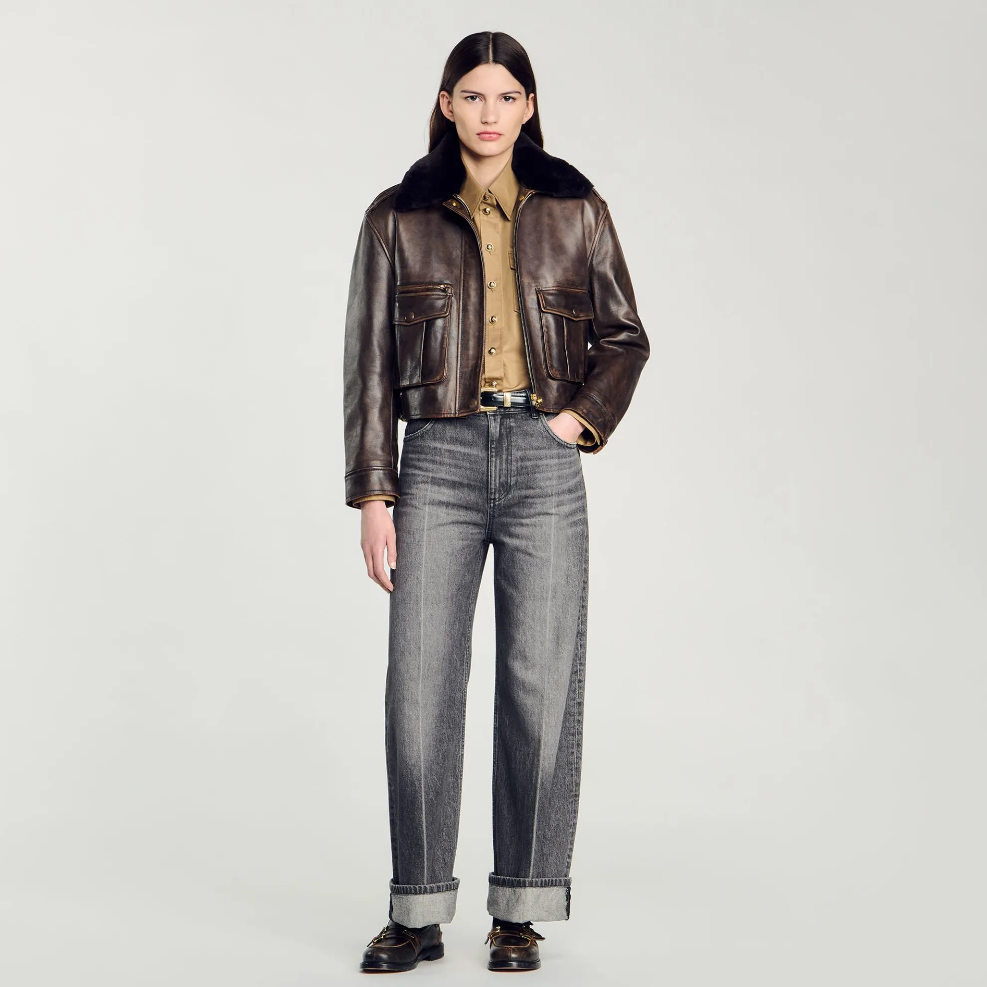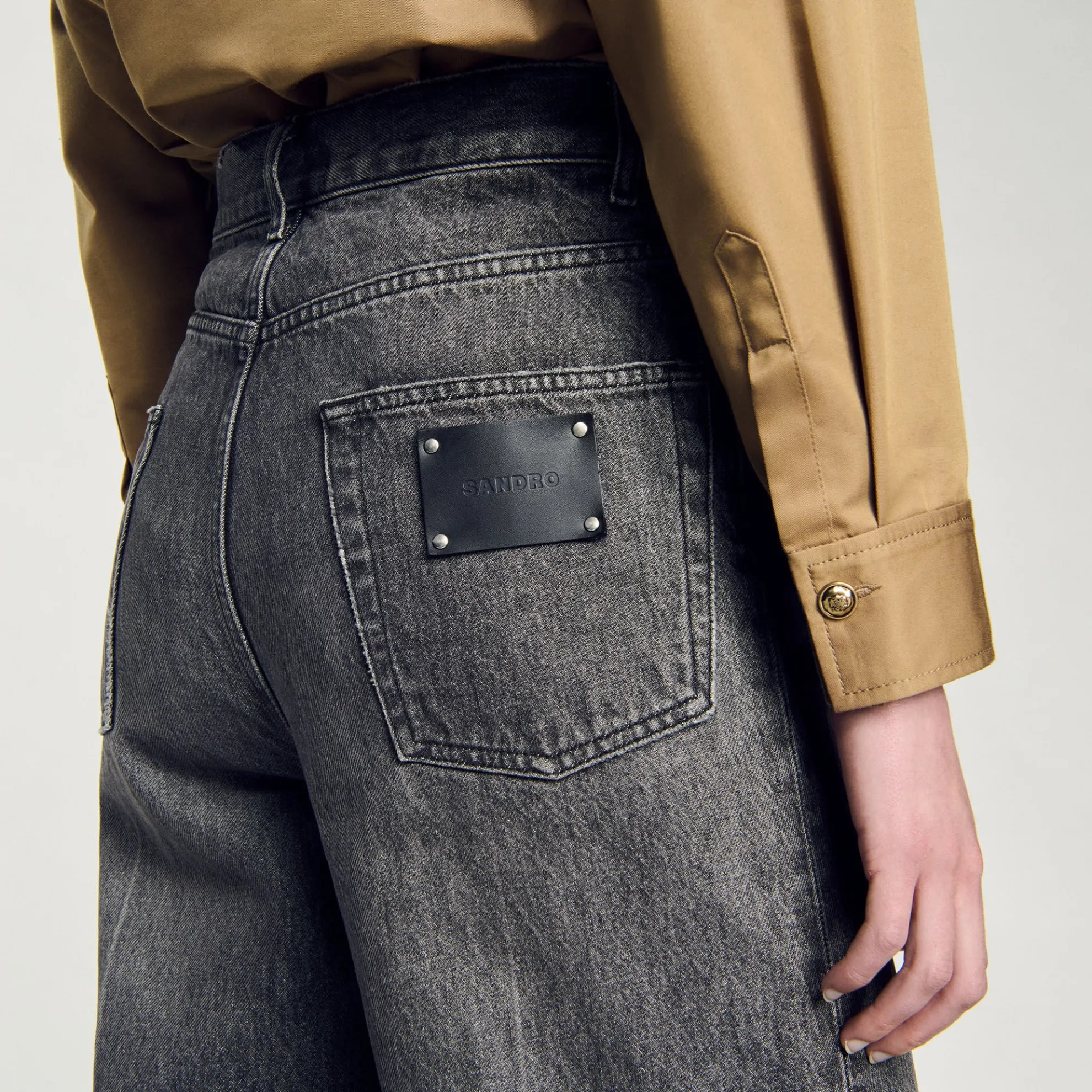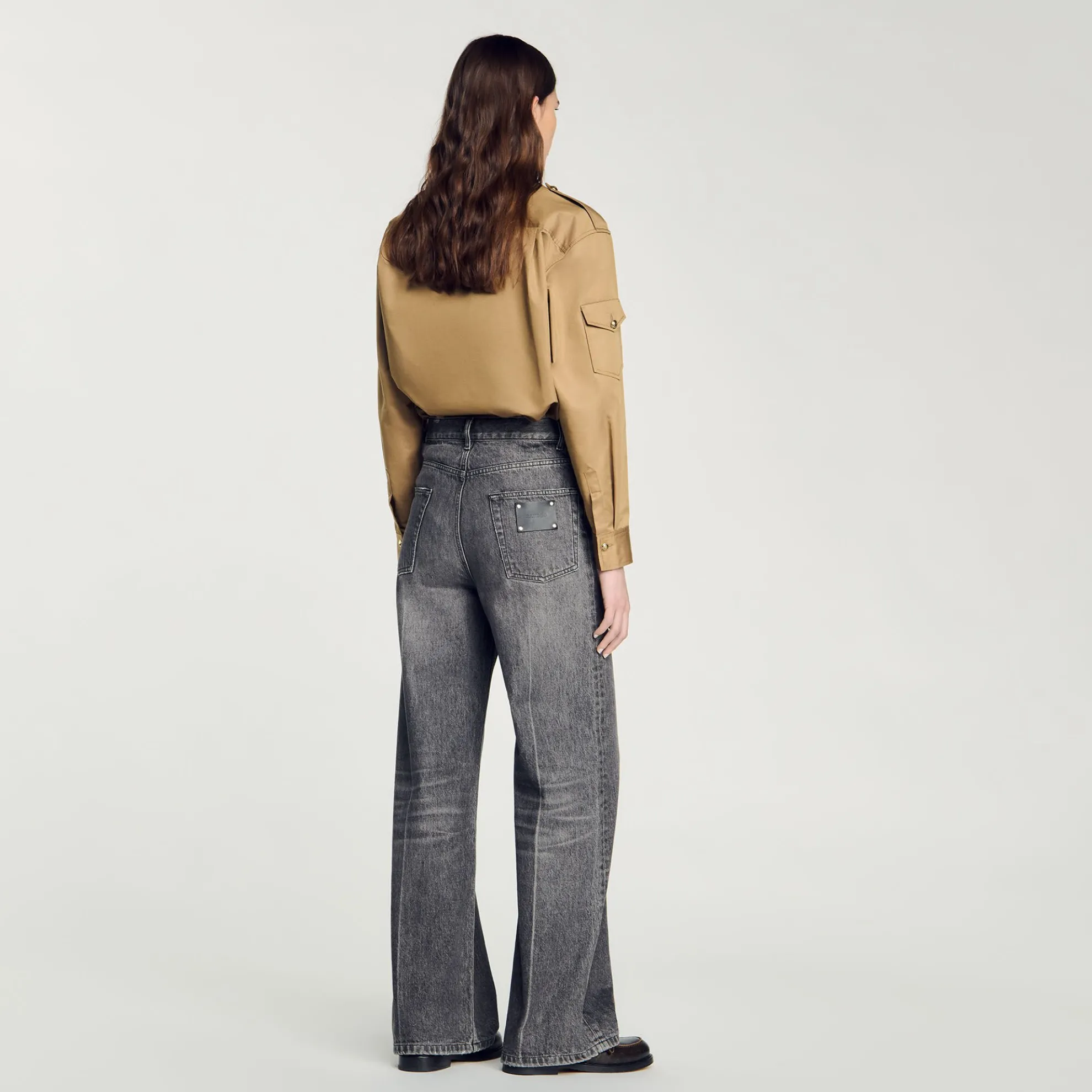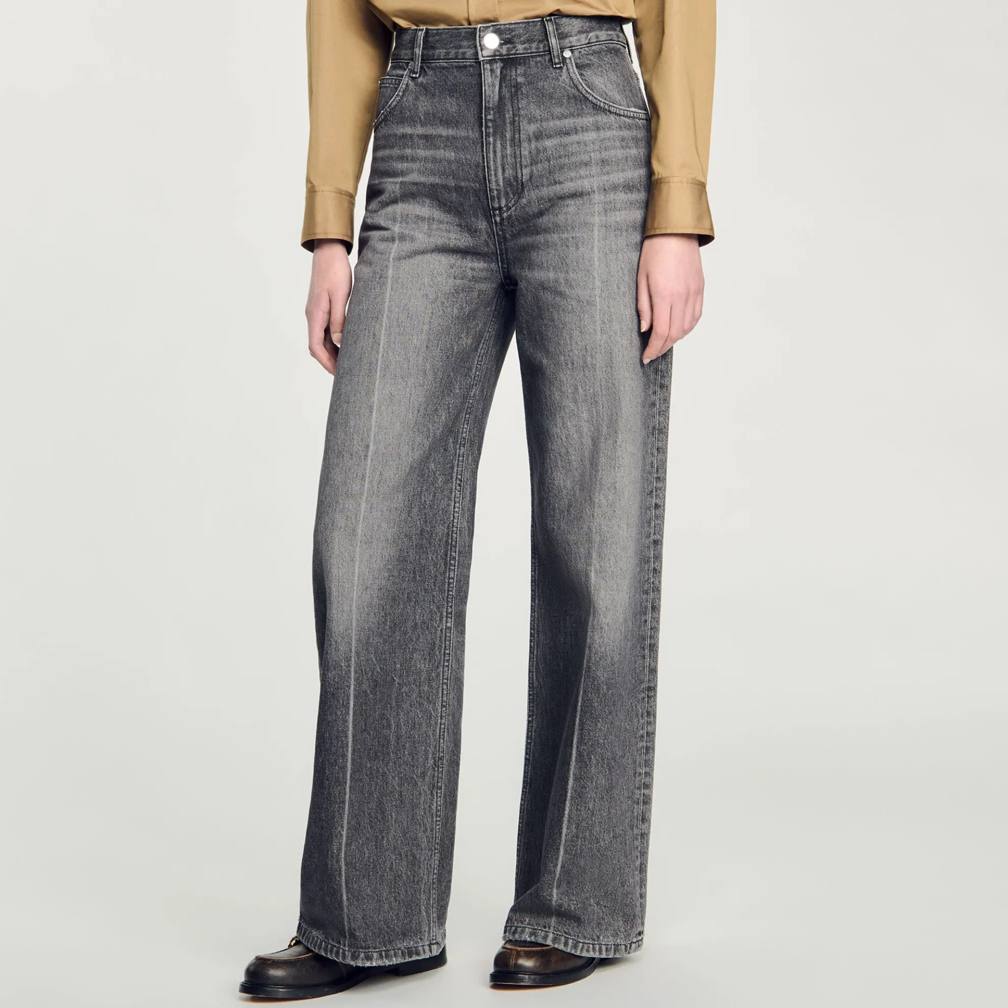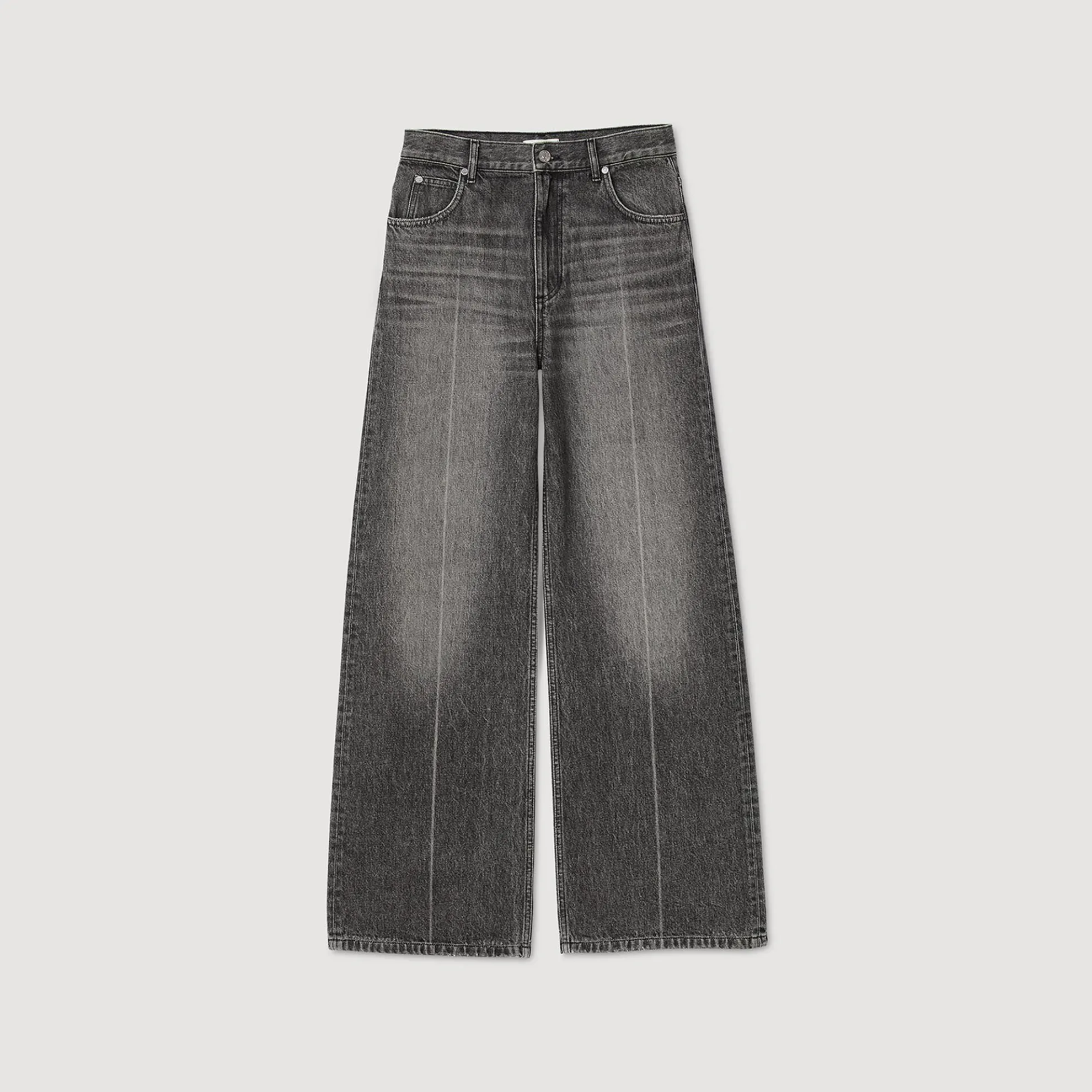 Rechte jeans met verwassen effect, lage taille, 5 zakken en riemlussen.