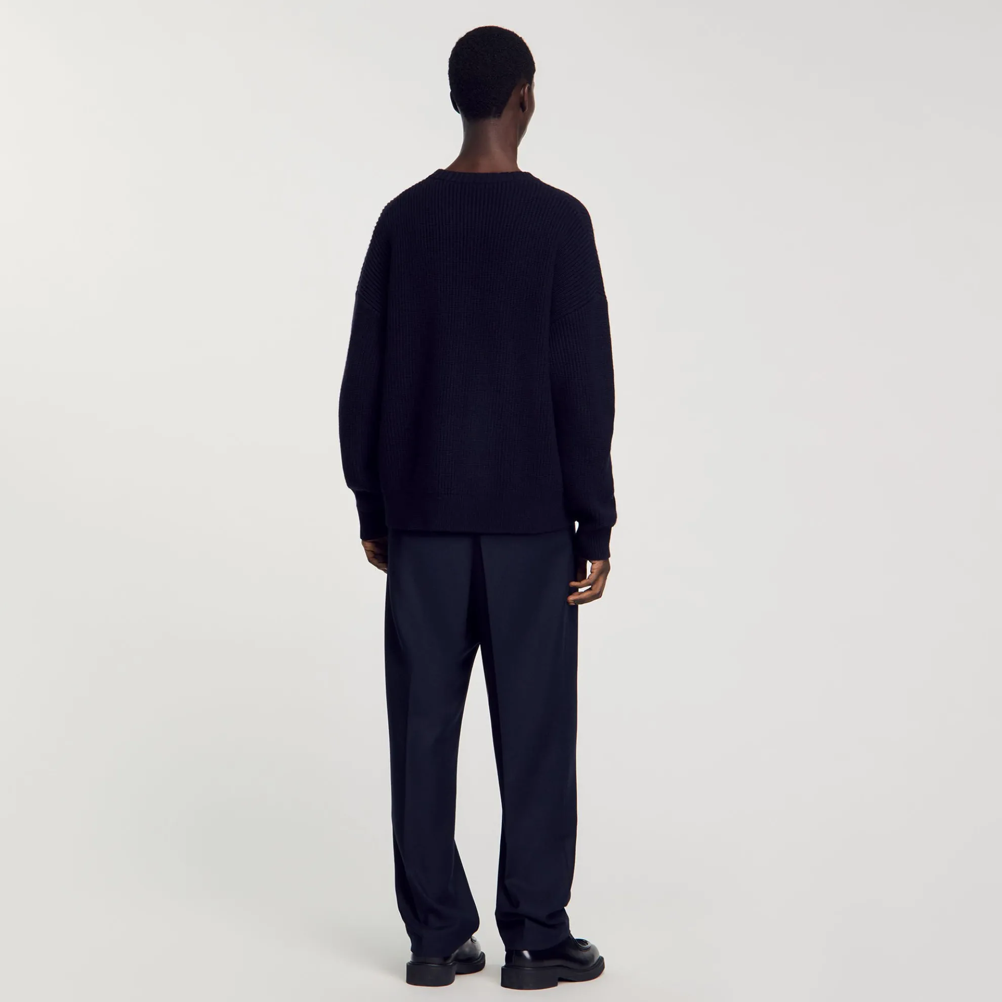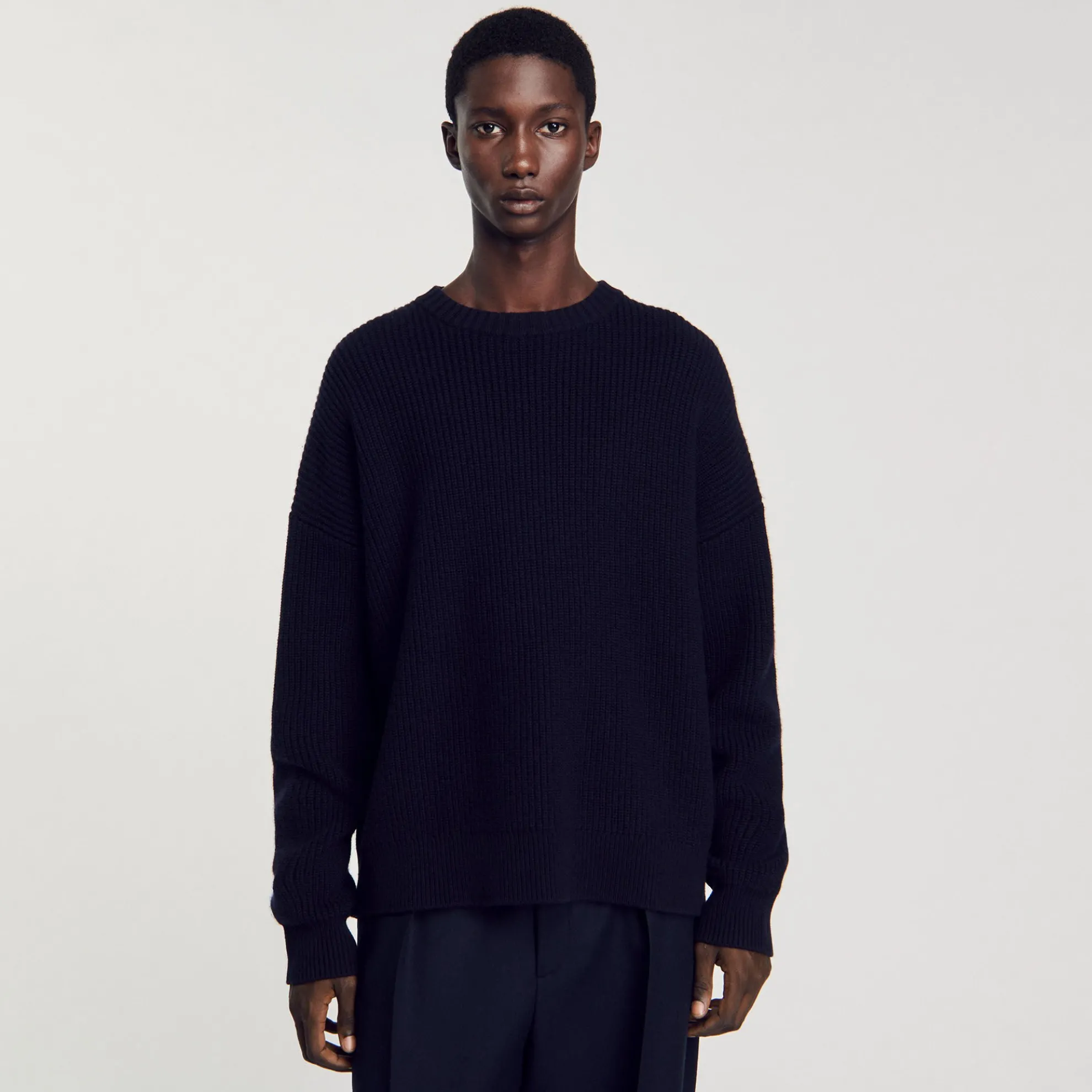 Oversized trui van dikke ribgebreide stof met een ronde kraag, lange mouwen en geribbelde randen.