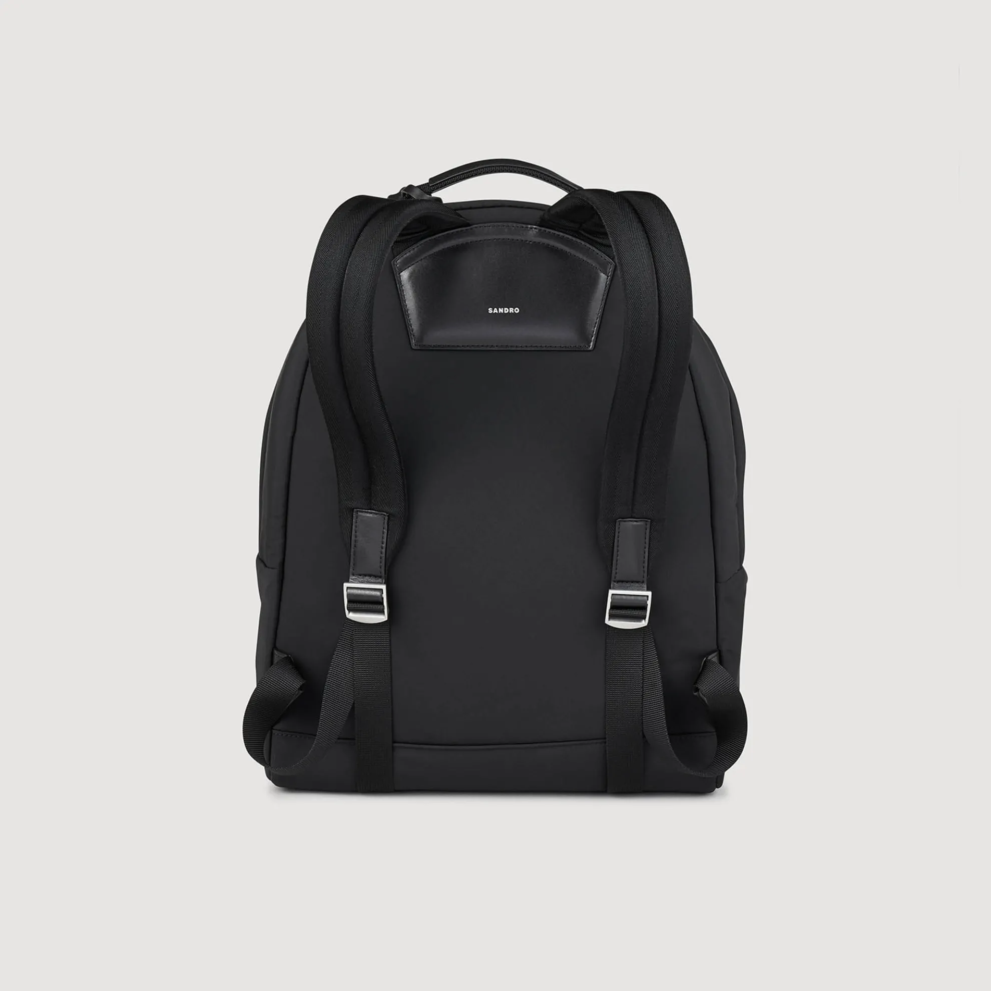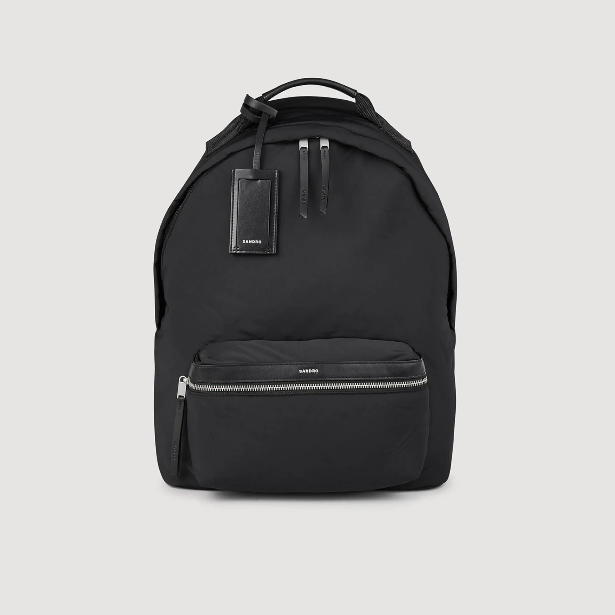 Rugzak van canvas met leren details, voorzien van een ritssluiting met SANDRO ritstrekker, ritsvak aan de voorkant, labelhouder, binnenvak en verstelbare gewatteerde schouderbanden.