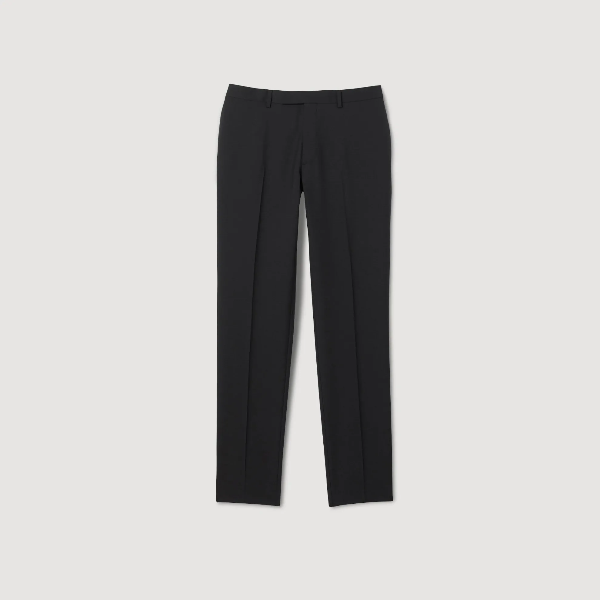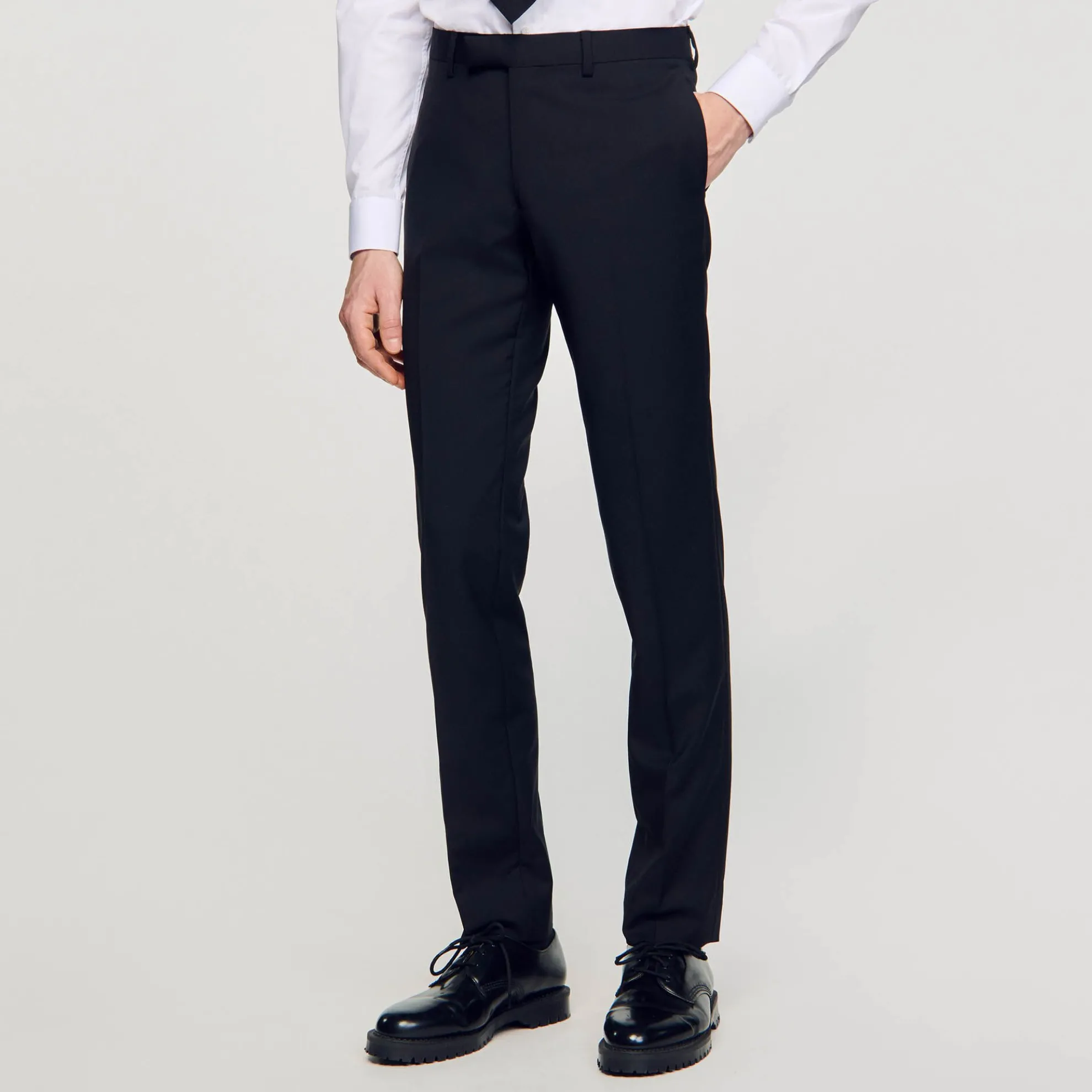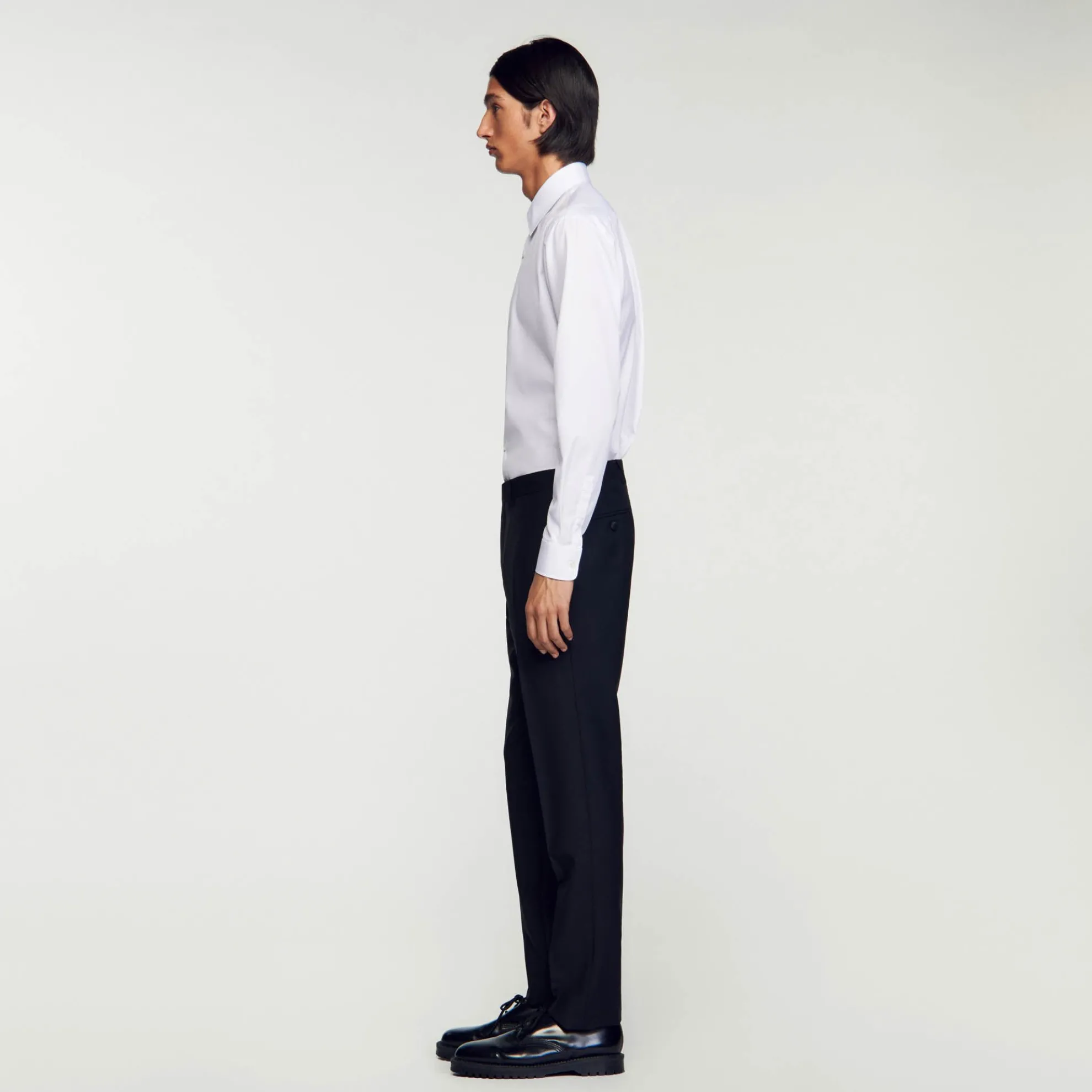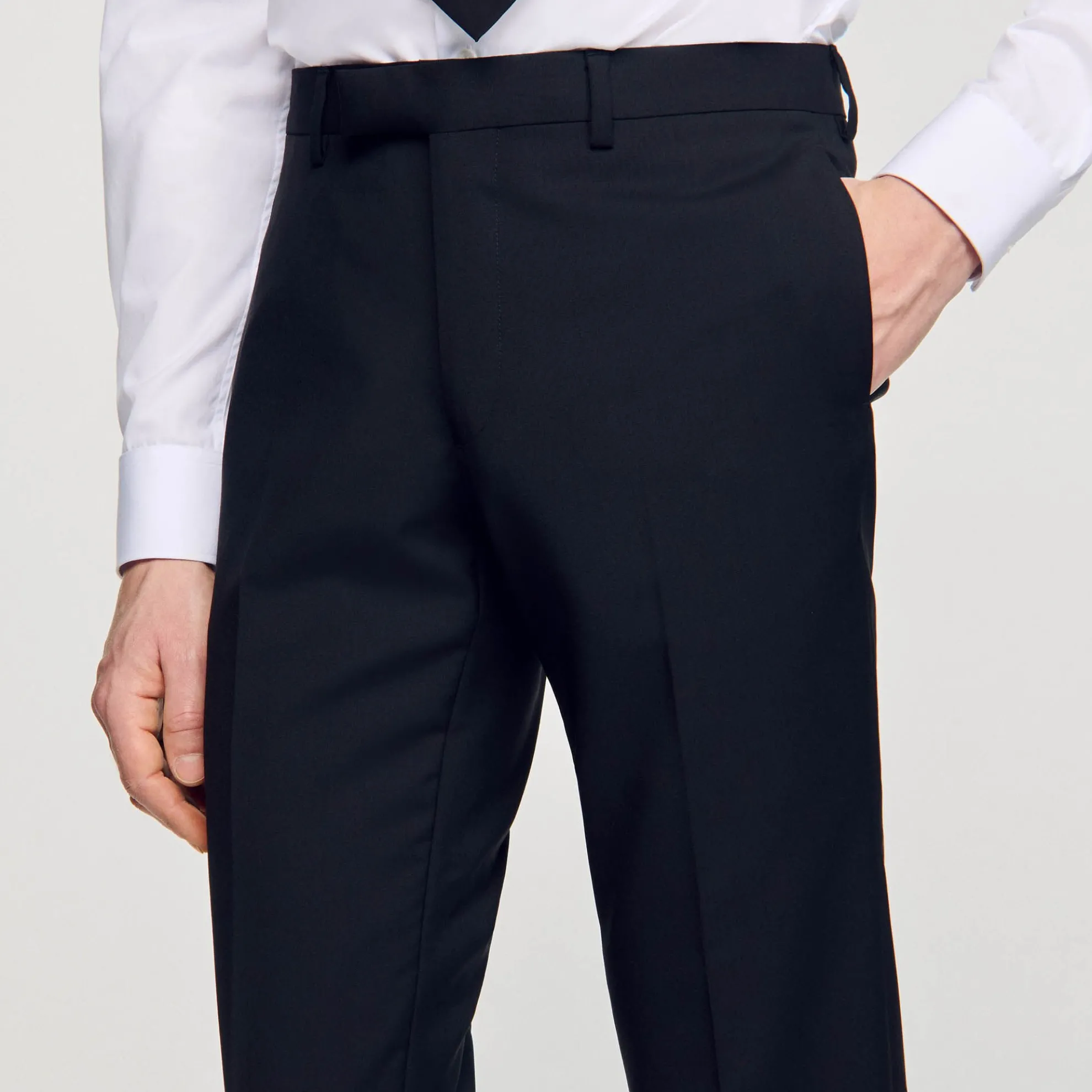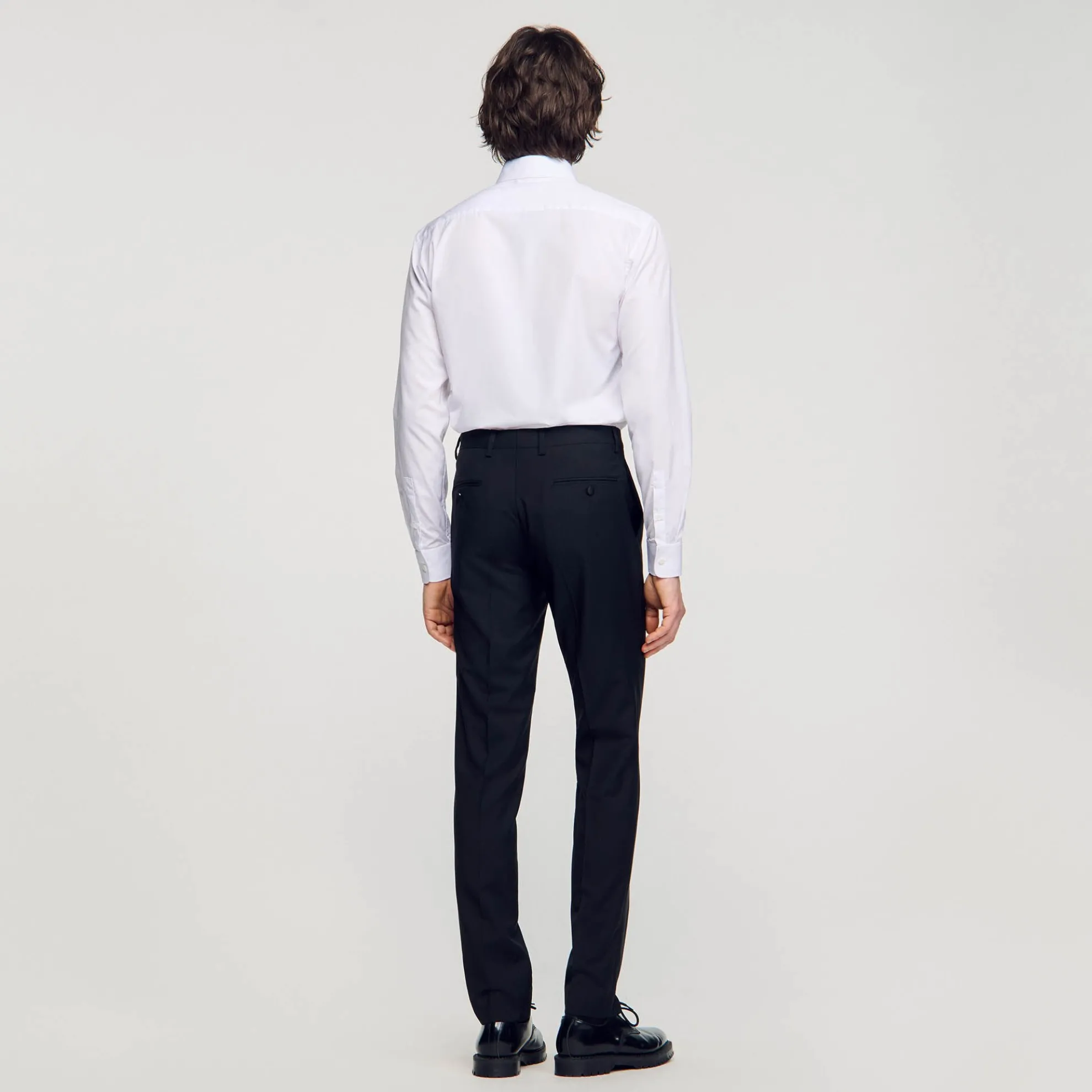 Smokingpantalon met satijnen inzetstukken, bedekte knopen en zakken opzij.