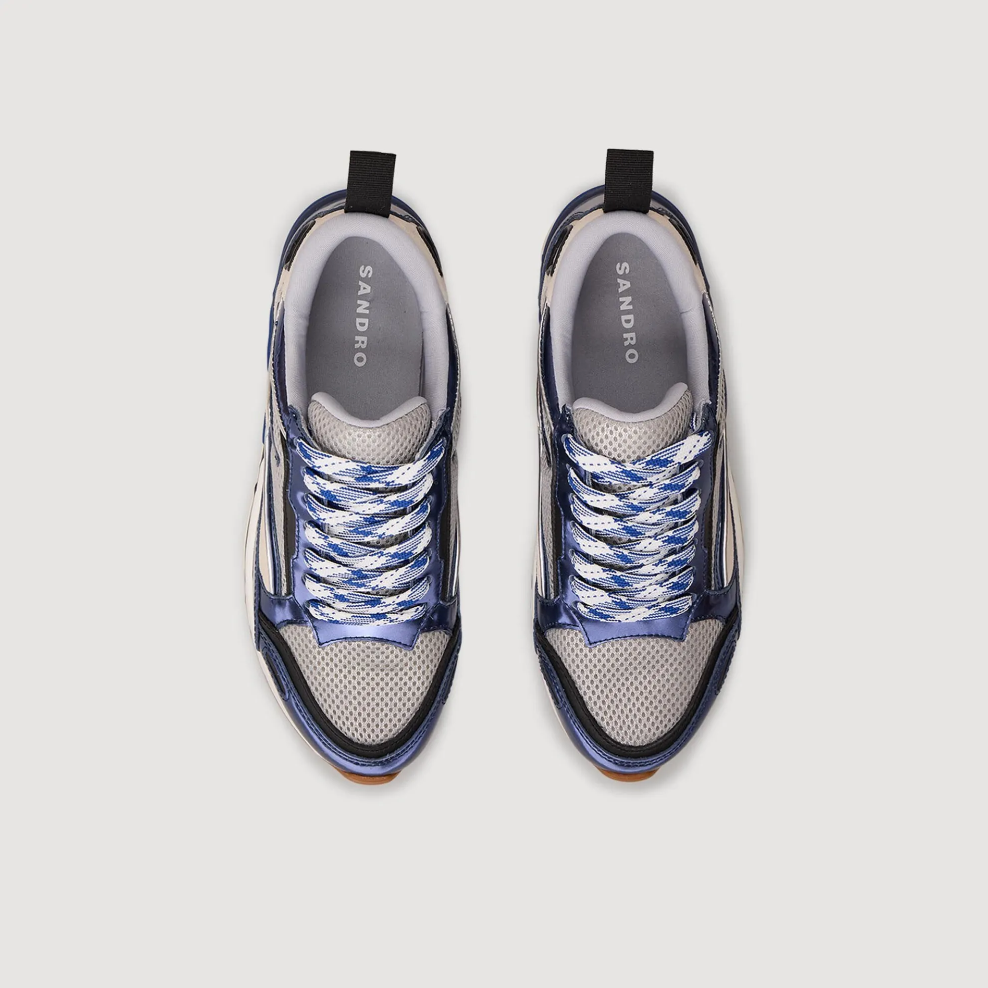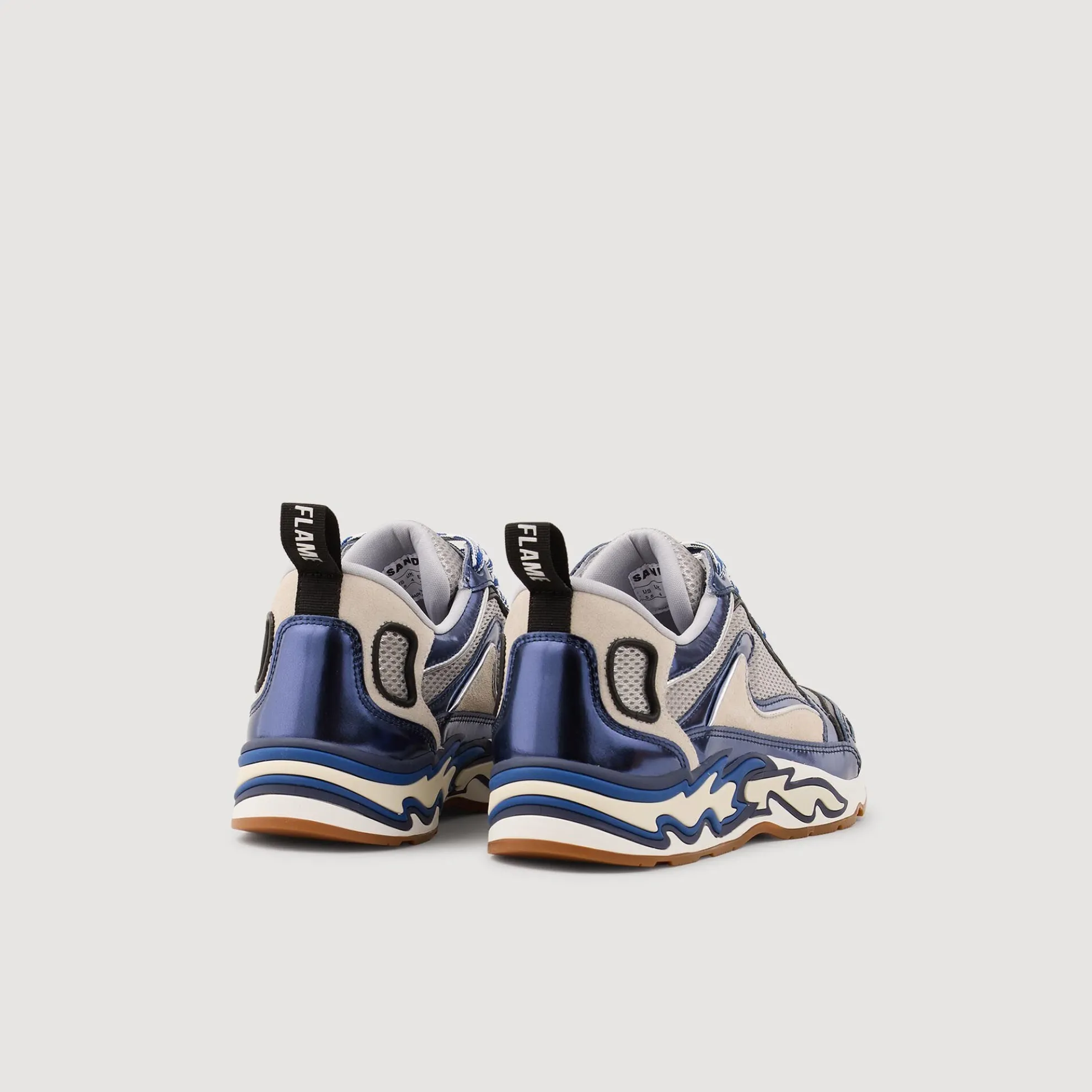 Sneakers van mix van leer met veters en een kenmerkende zool met vlammotief.