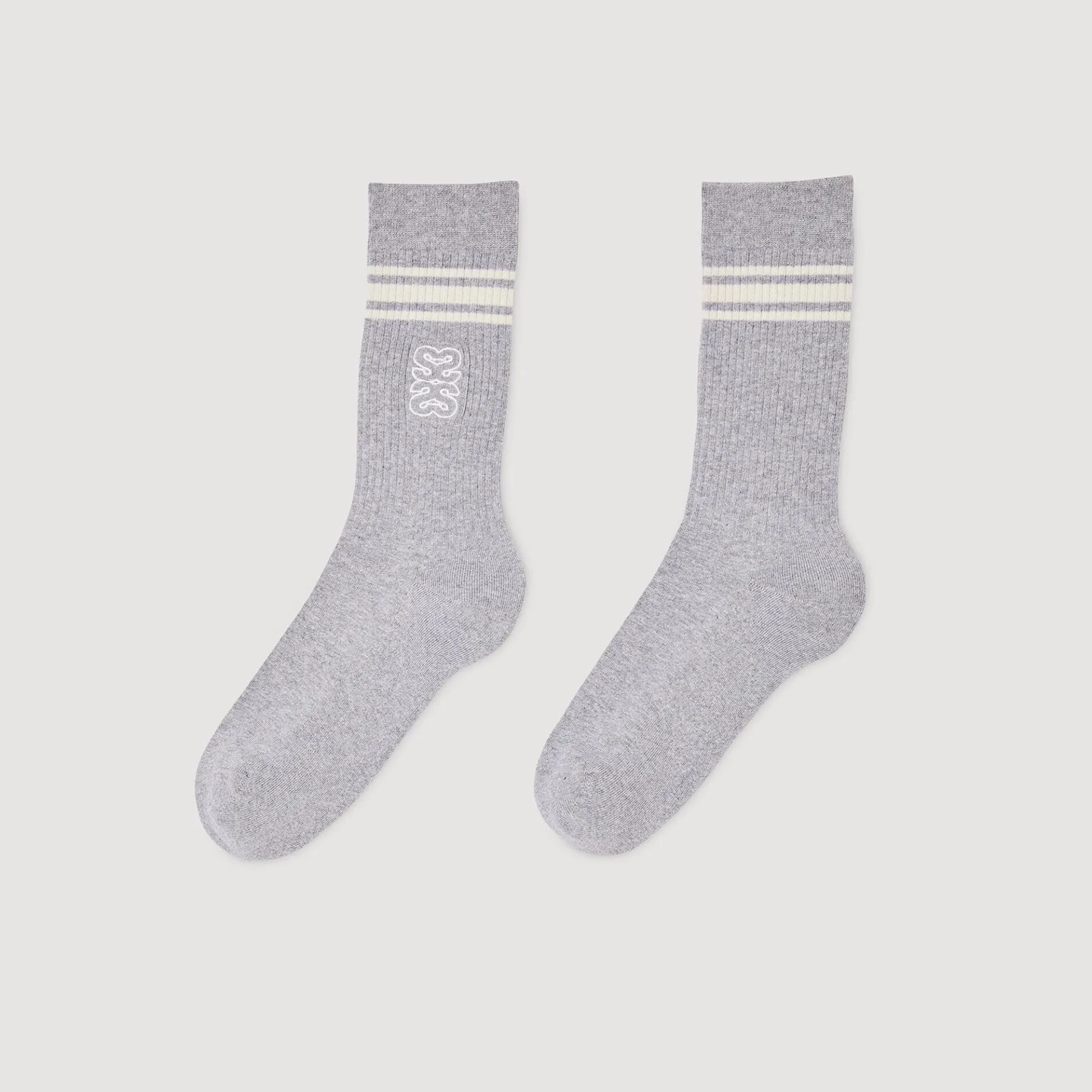 Geribde sokken met contrasterende banden en een geborduurd dubbel S-logo.