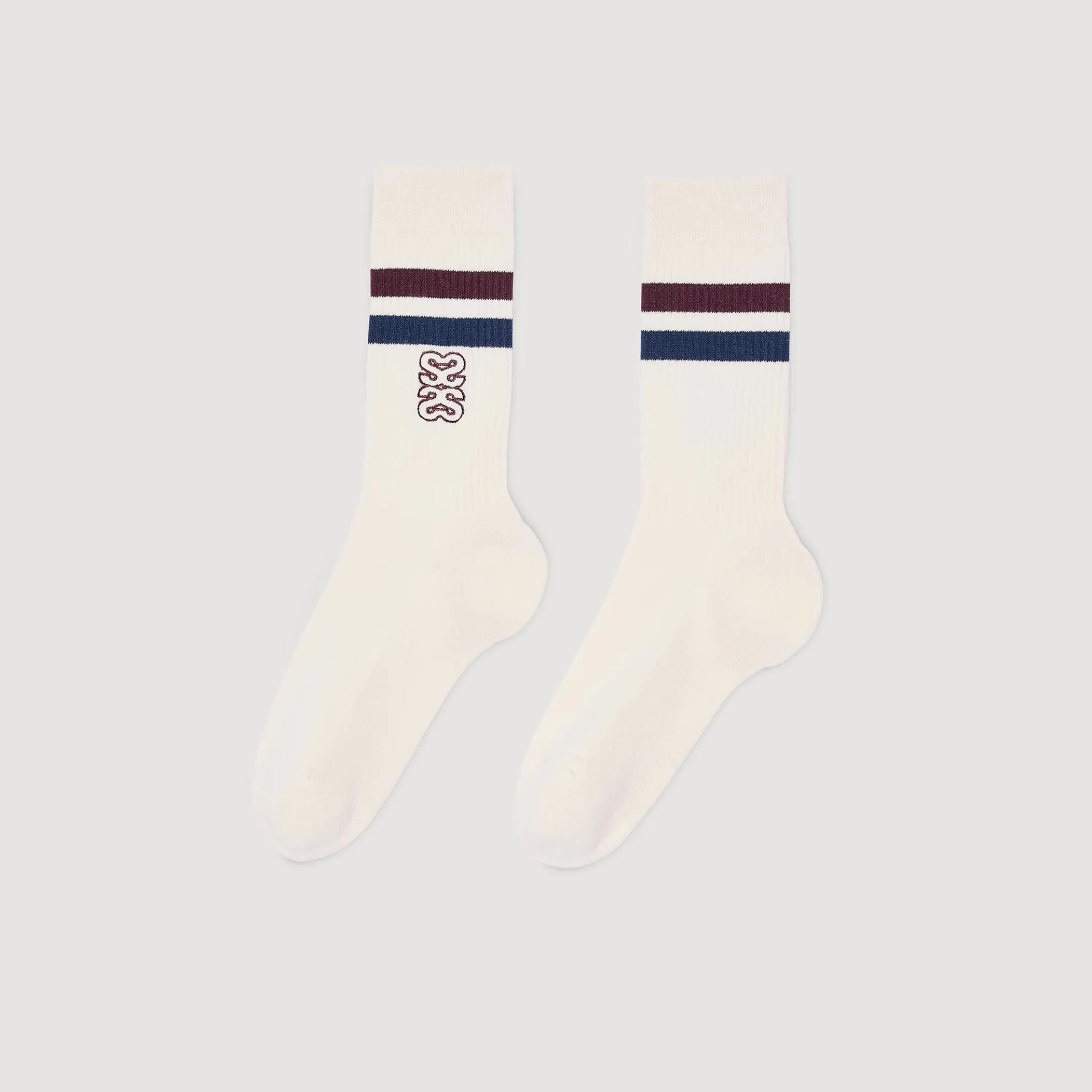Geribde sokken met contrasterende banden en een geborduurd dubbel S-logo.