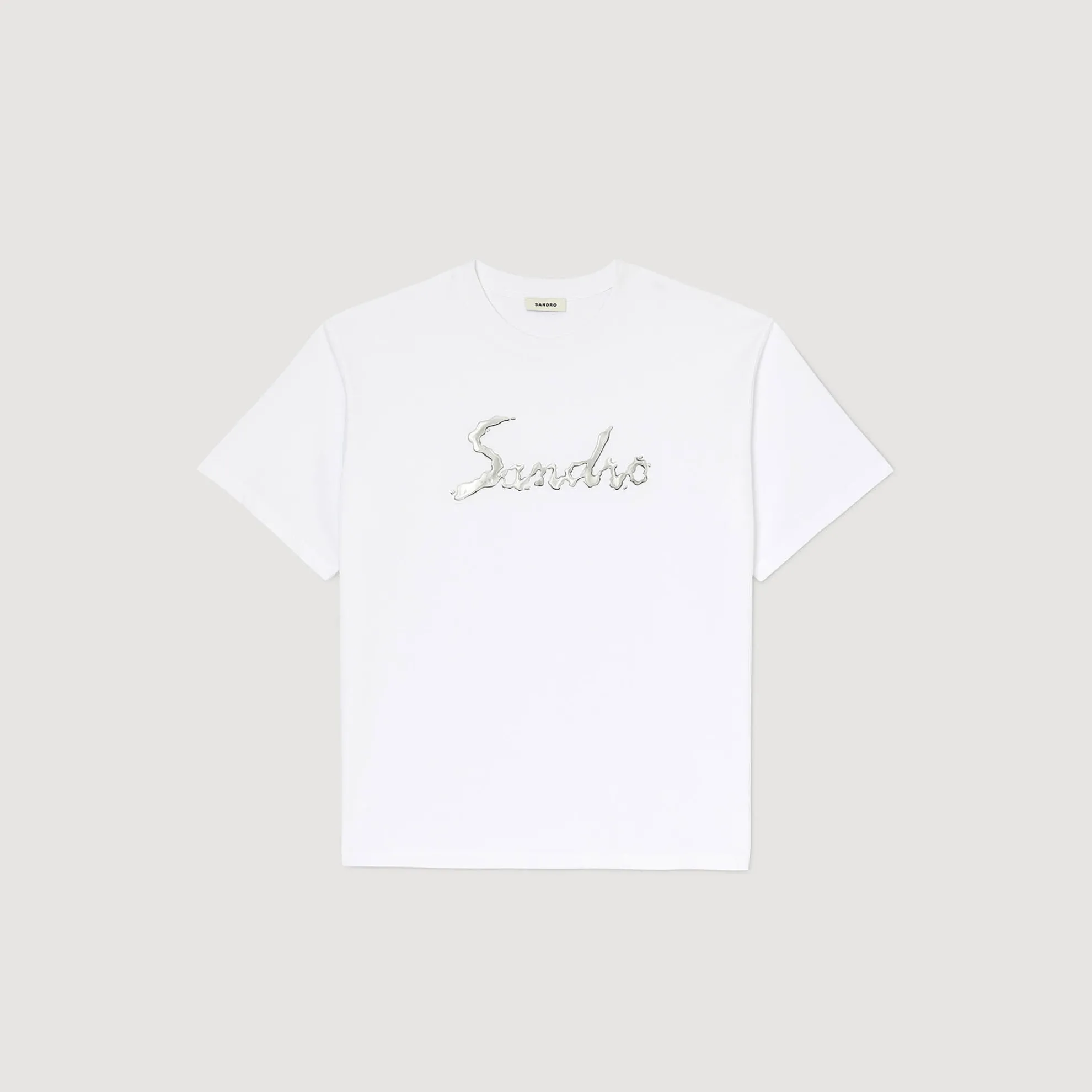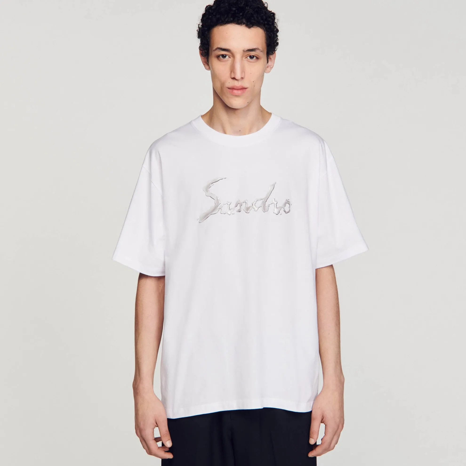 Oversized katoenen T-shirt met ronde hals, korte mouwen en SANDRO-logo in reliëf.