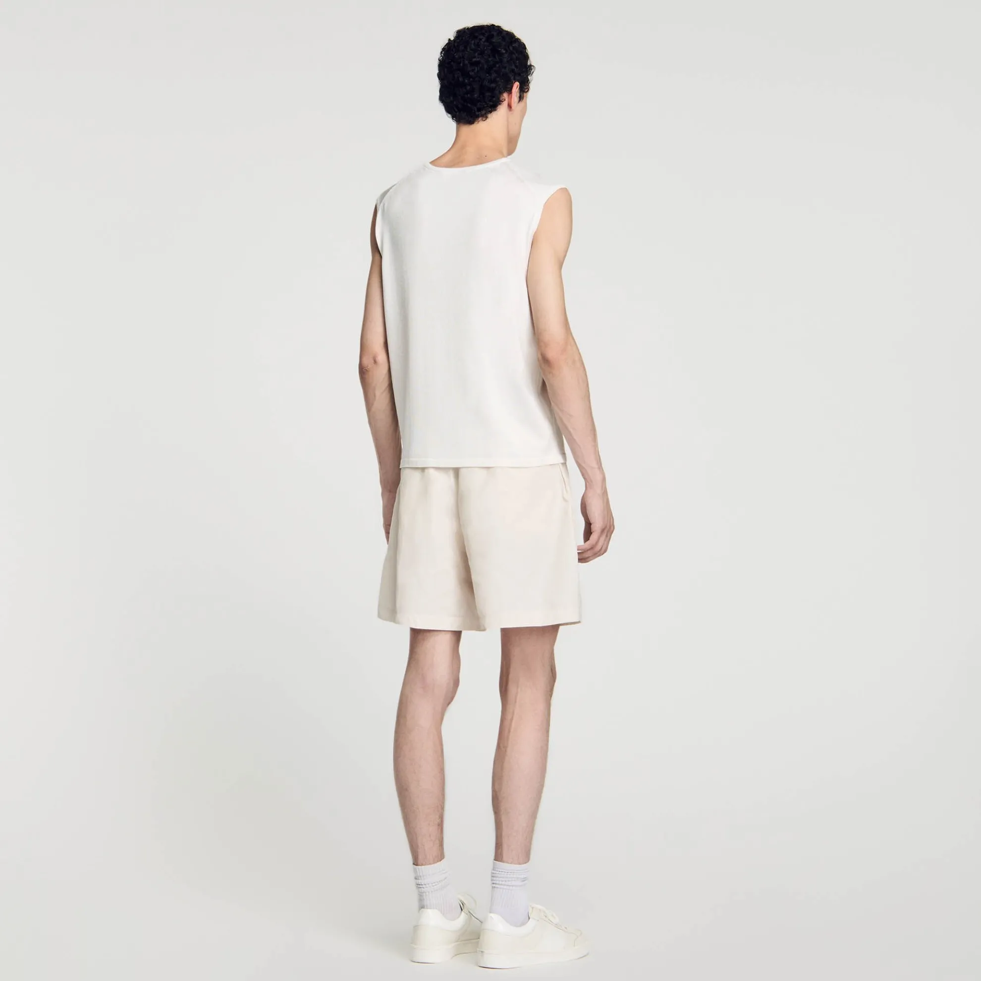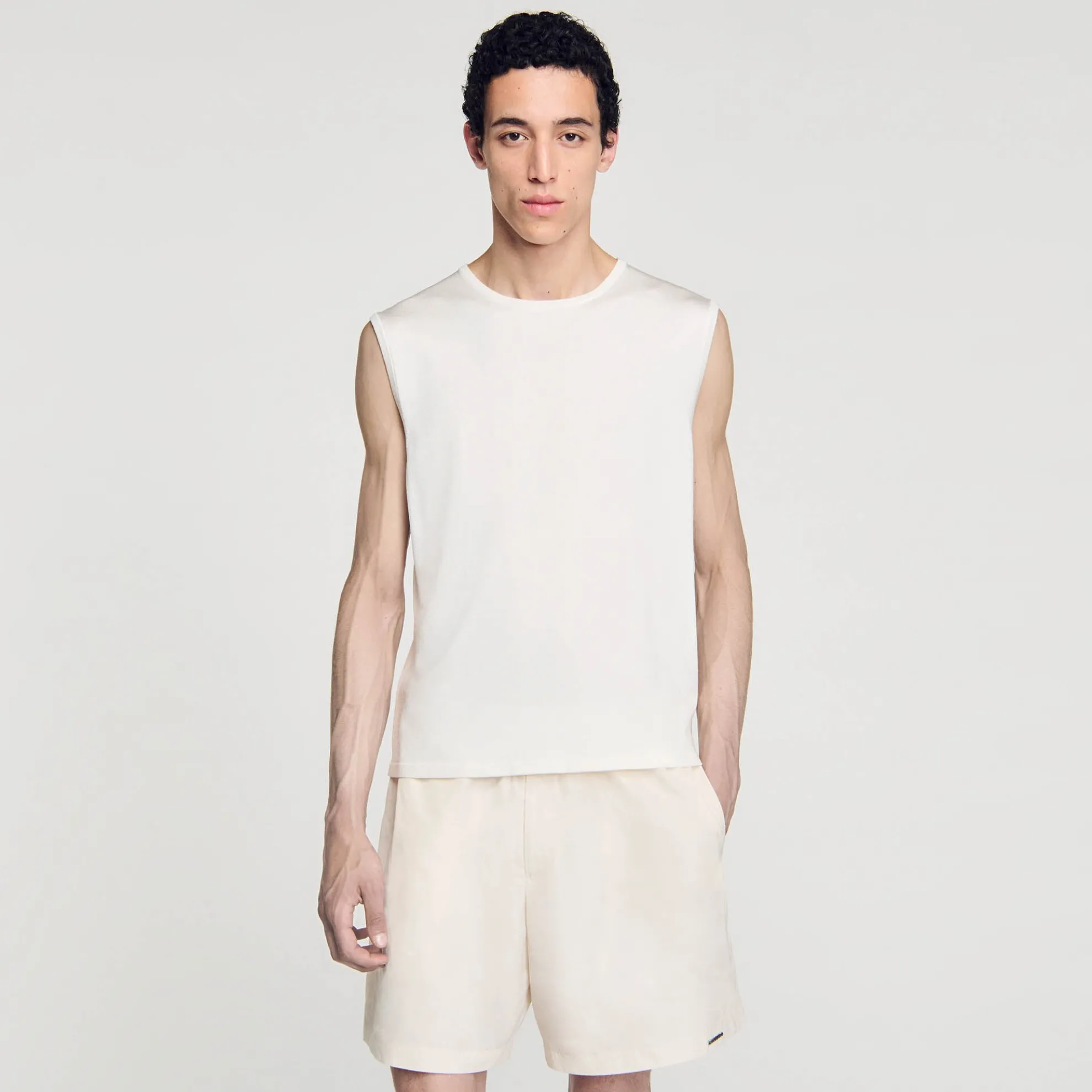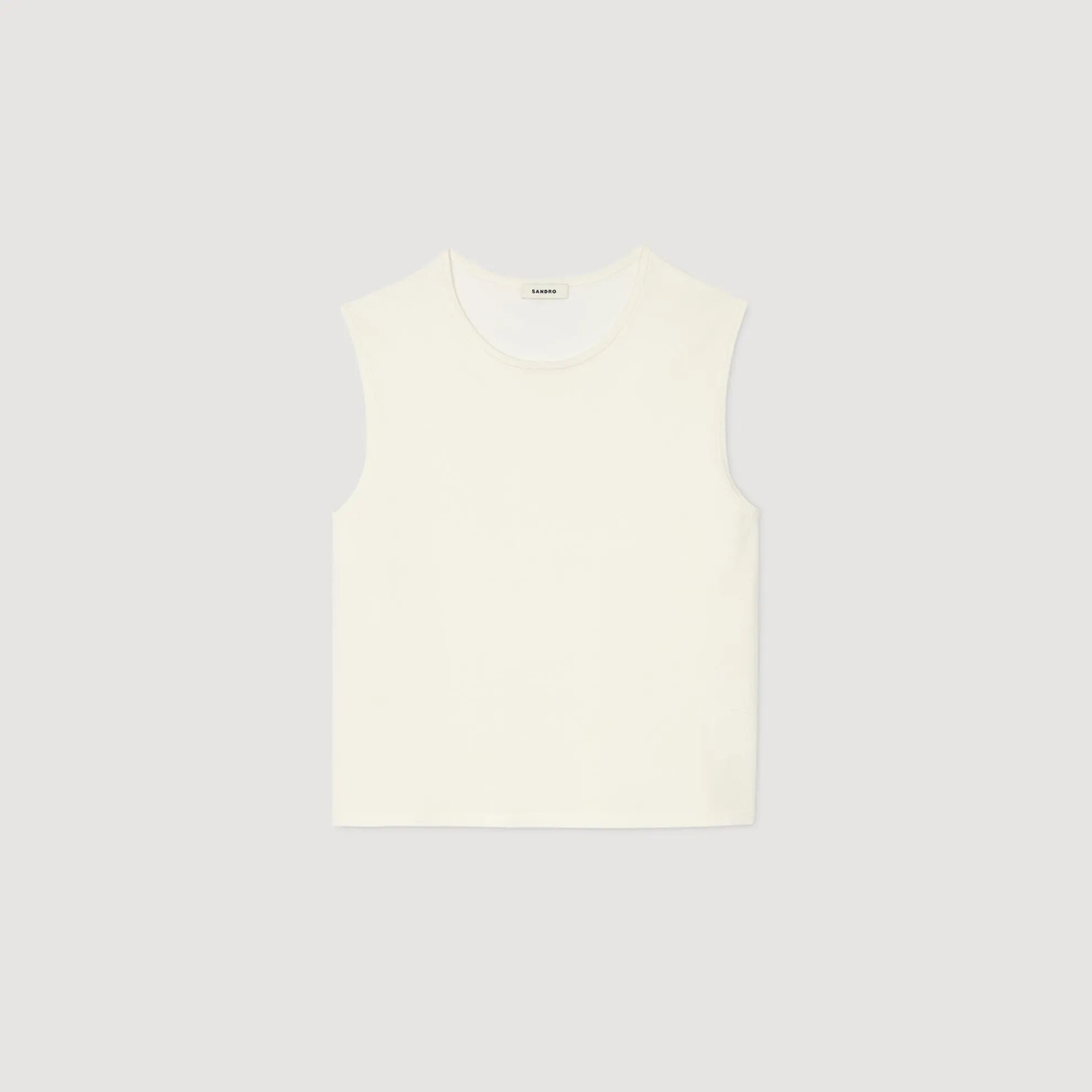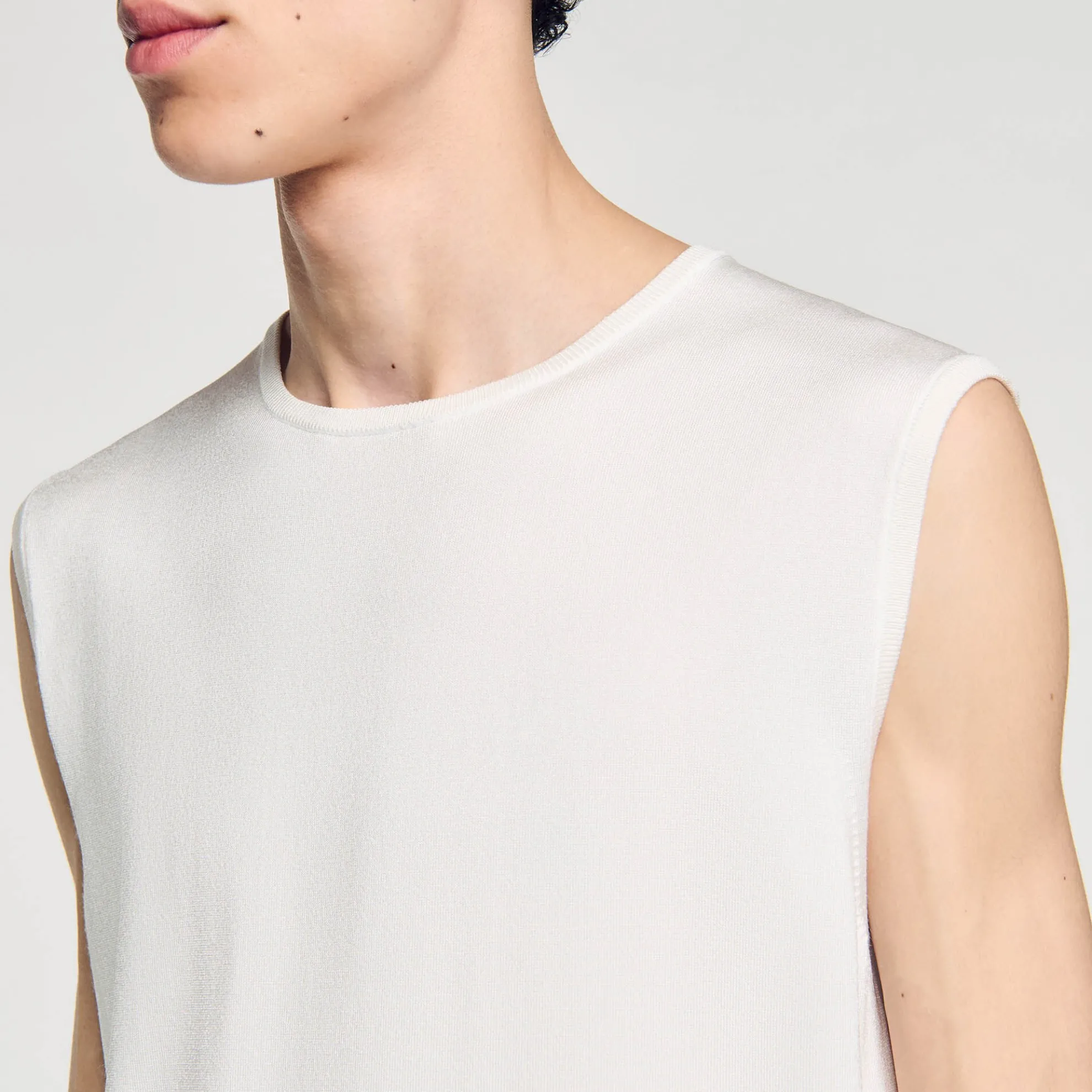Mouwloze fijngebreide tanktop, licht en soepelvallend met ronde hals.