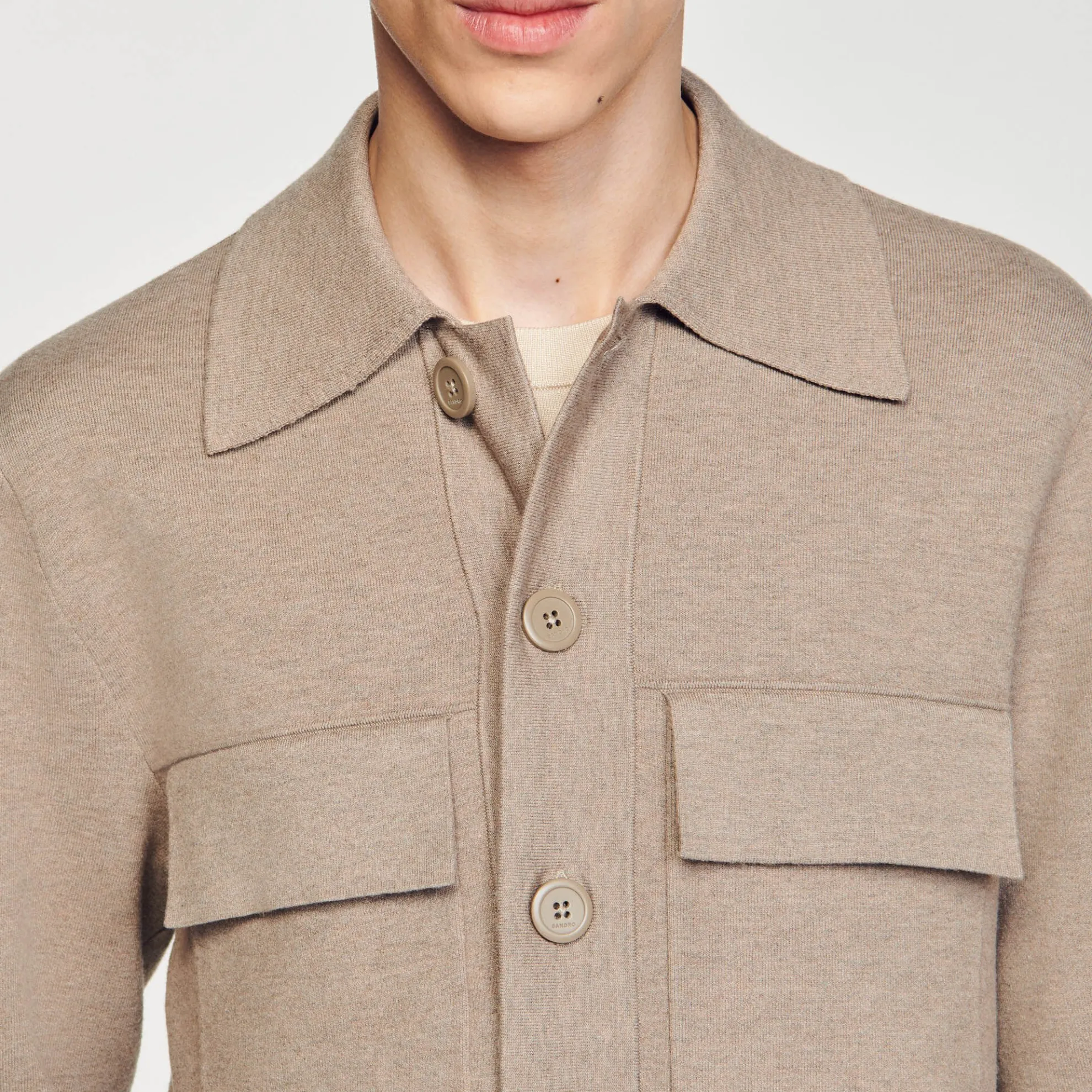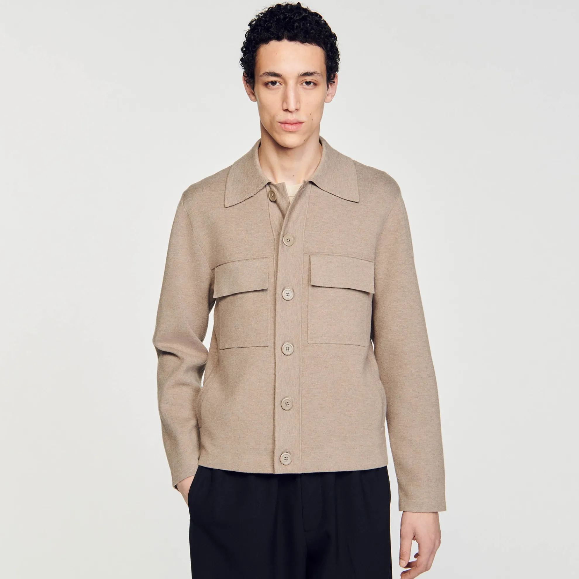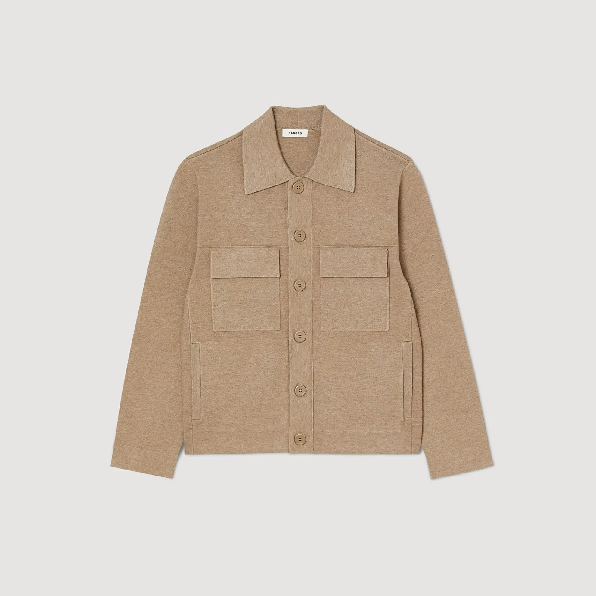 Jasje in milanomesh met een klassieke kraag, lange mouwen, een knoopsluiting, opgestikte borstzakjes en twee zakken aan de zijkant.
