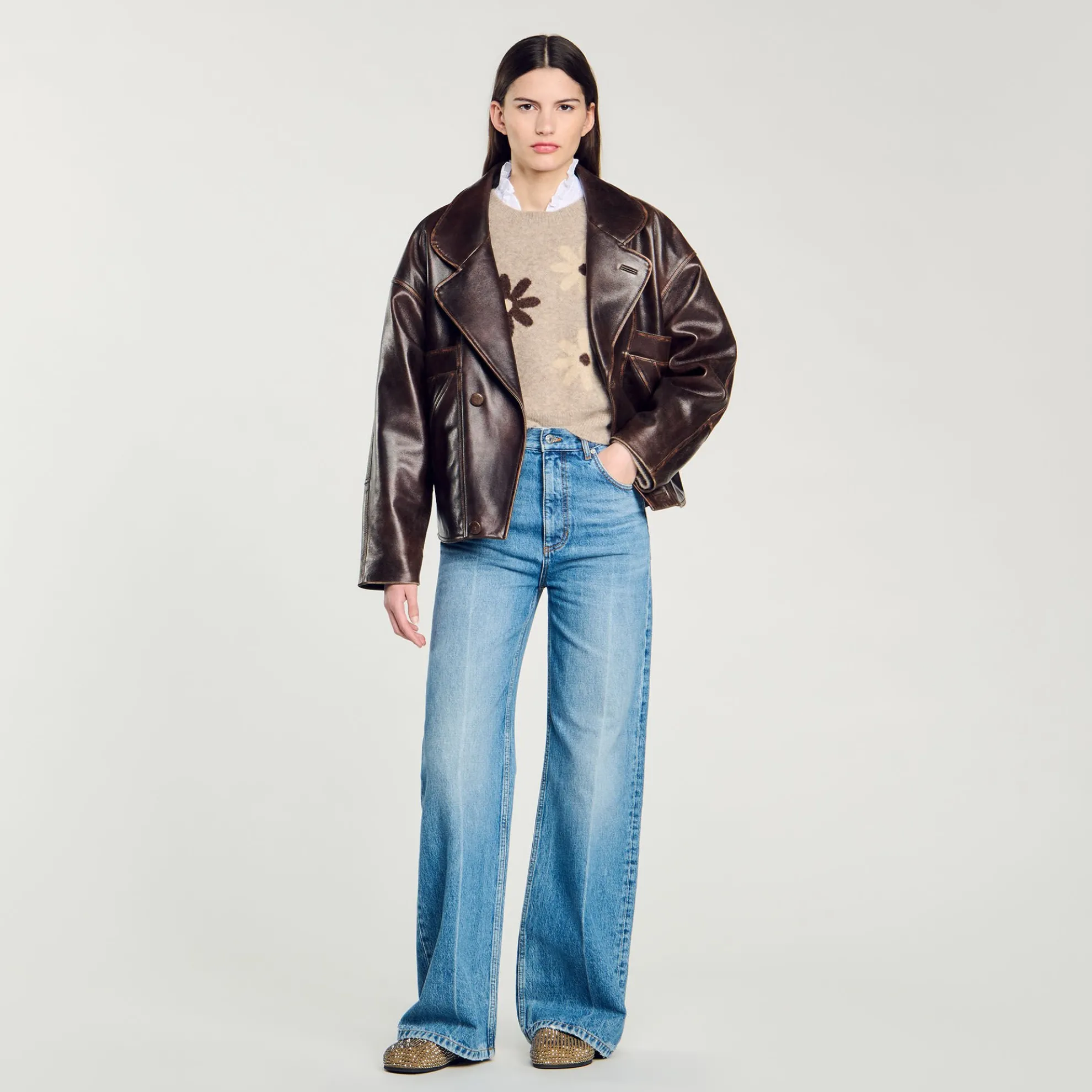 Tricto trui van wol en alpaca met ronde hals, lange mouwen en XXL gebloemd jacquard.