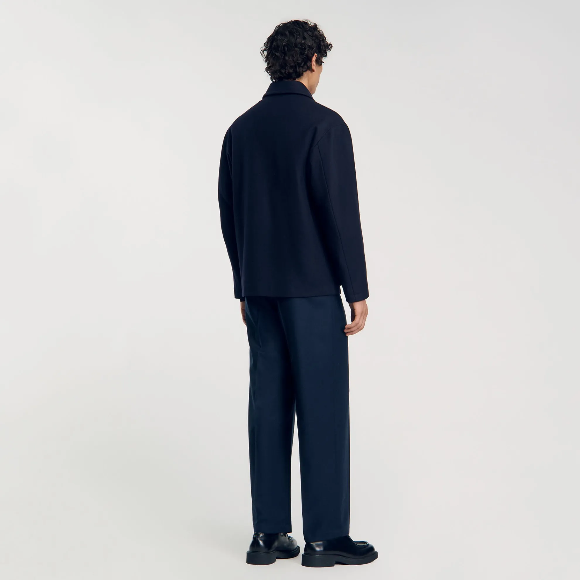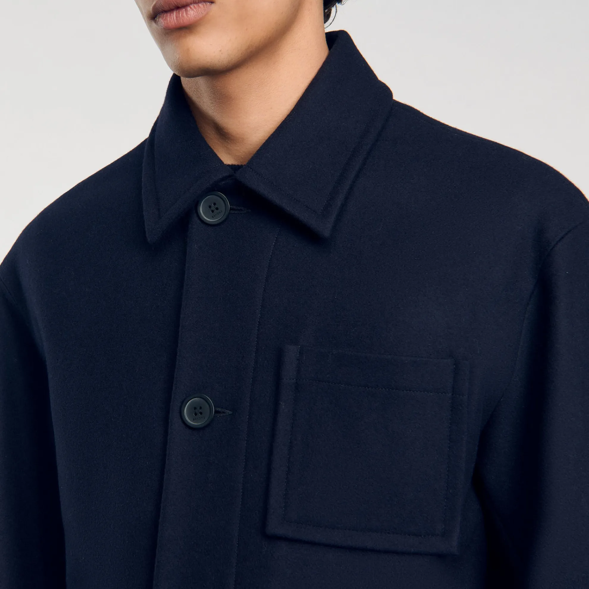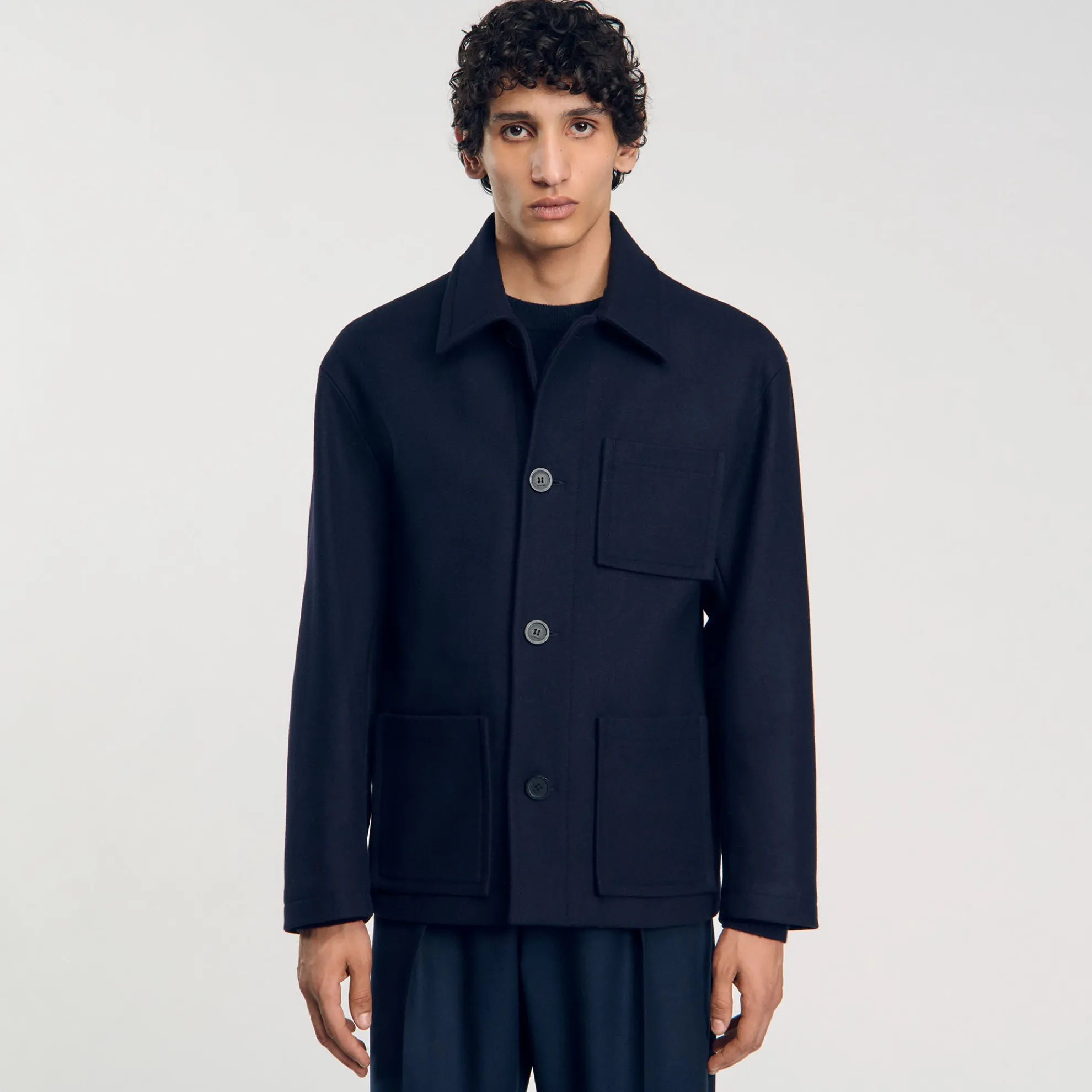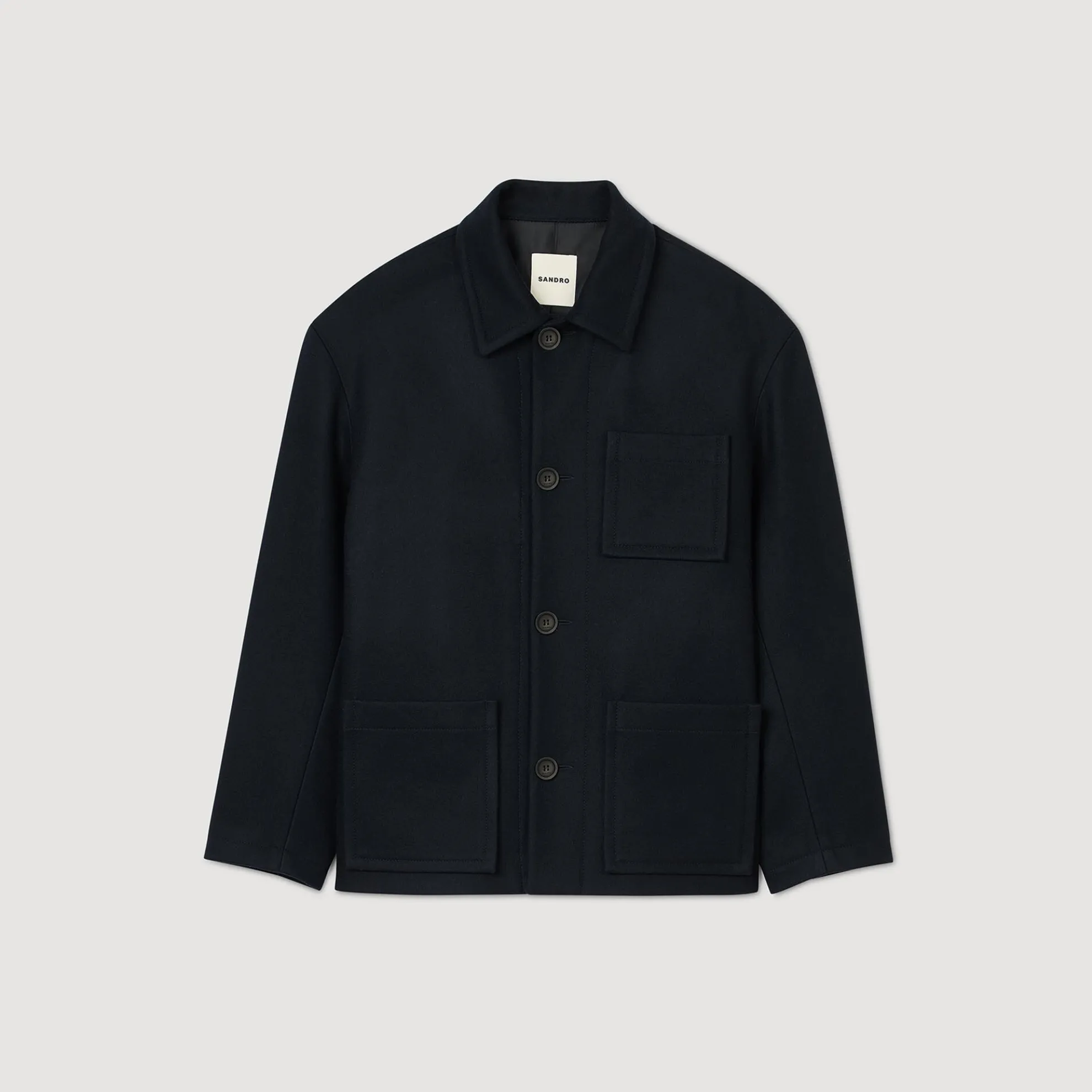 Worker jack van dicht geweven wol, recht gesneden klassiek model met overhemdkraag, lange mouwen en knoopsluiting.