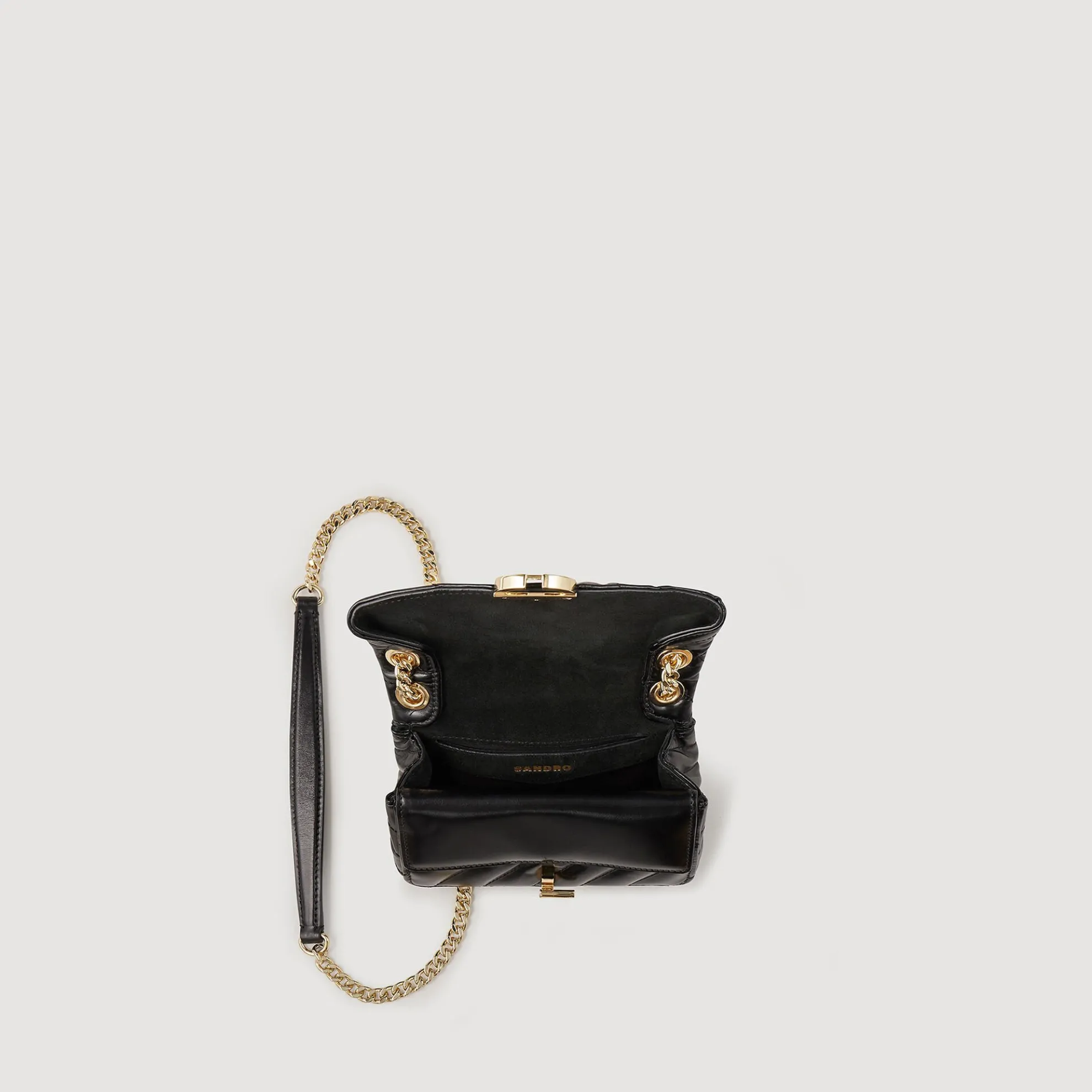 De emblematische tas YZA van doorgestikt glad leer in een kleine uitvoering. De tas is uitgerust met onze kenmerkende sluiting en praktische vakken. Hij heeft een schouderketting met leer waardoor de tas op verschillende manieren kan worden gedragen: met lange ketting als crossbody tas of met dubbele ketting als schoudertas.