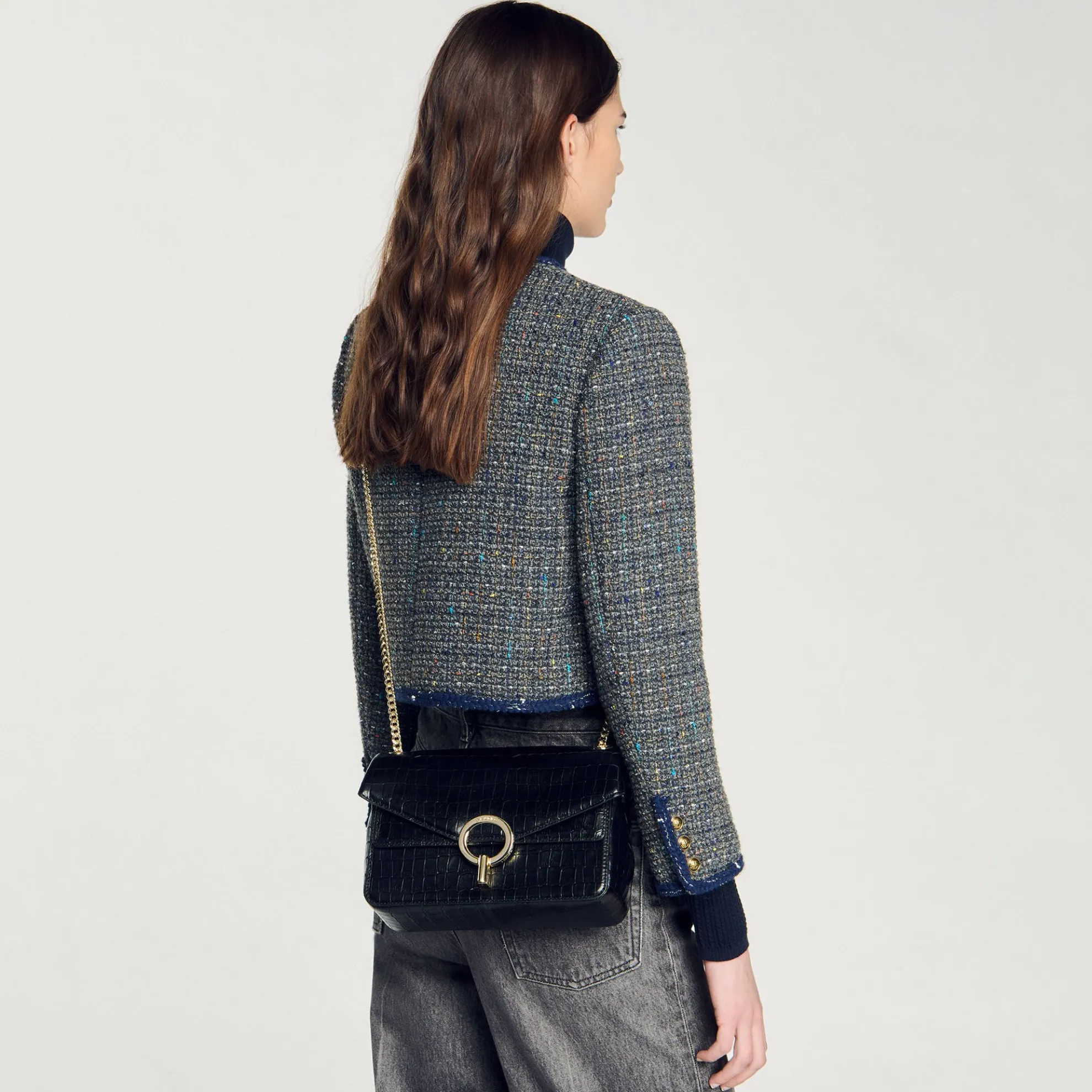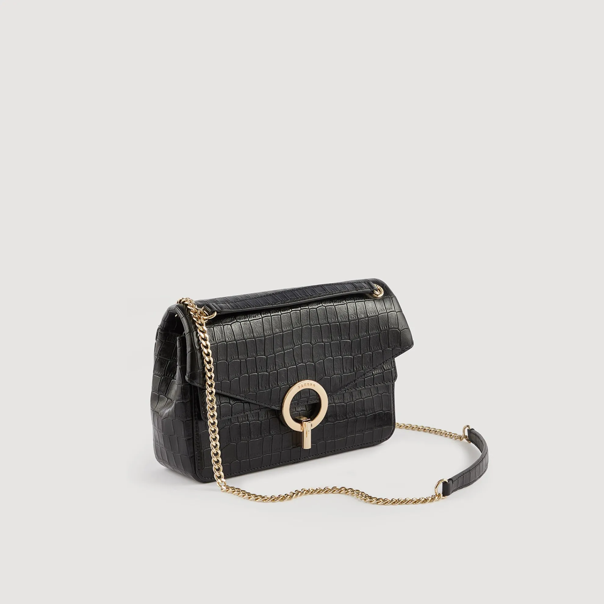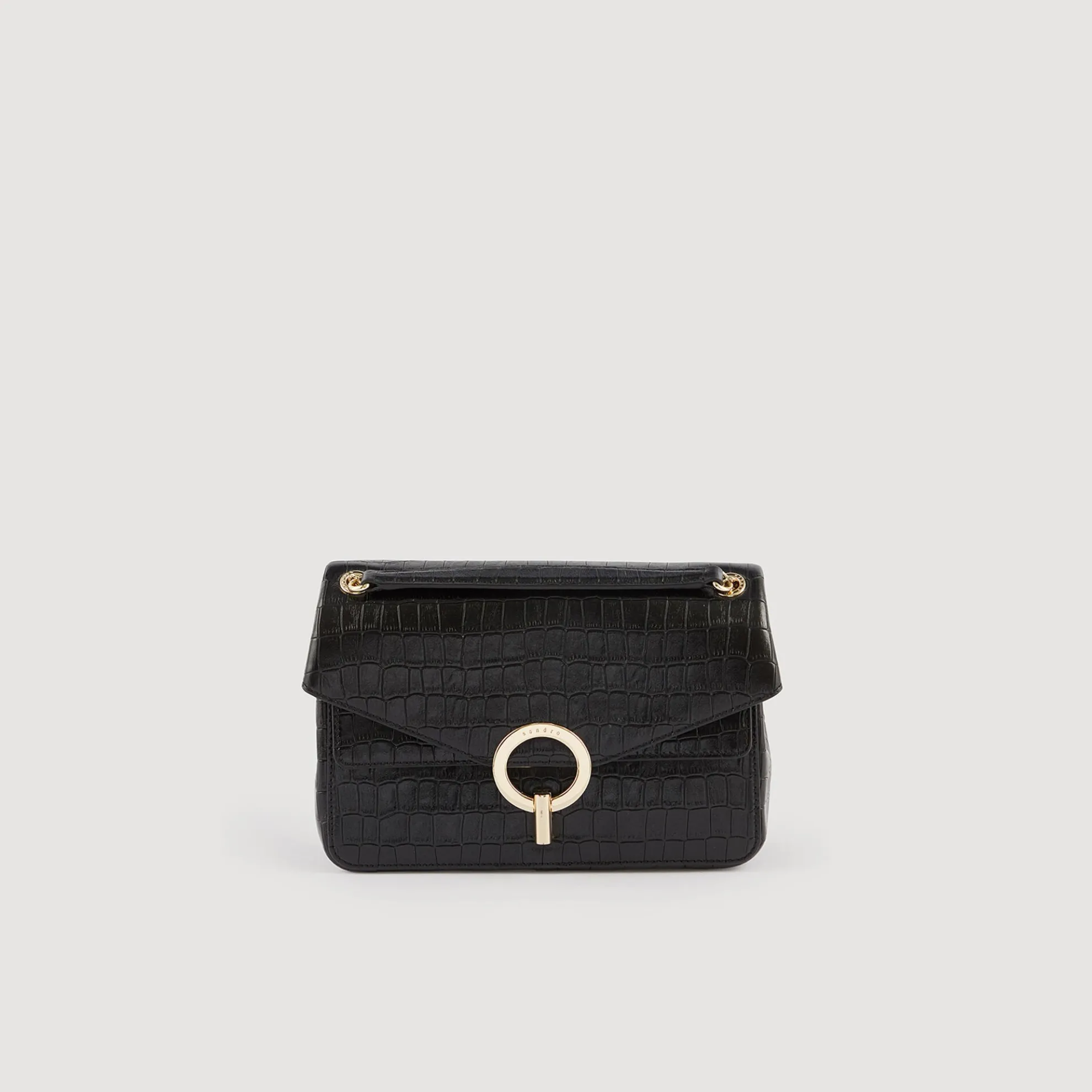 • Handtas met twee draagopties van reliëfleer in krokodillenlook
